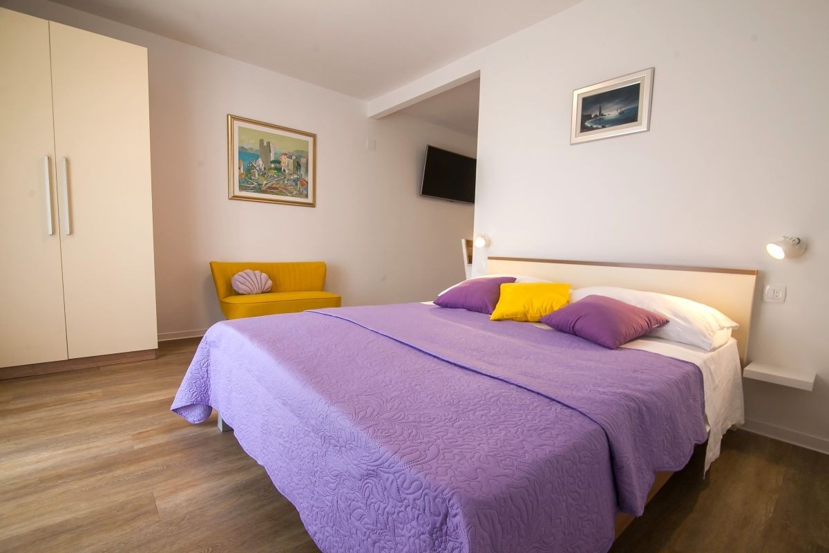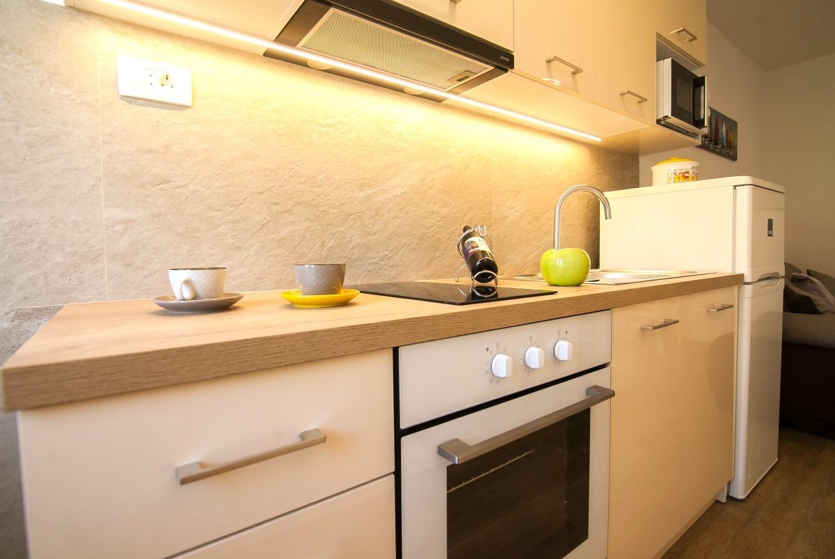 Studio flat can accommodate 2 guests. Beds are situated in 1 sleeping rooms, within 40m2. Guests can use a private terrace to enjoy the warm summer evenings. The studio offers the sea view. This accommodation unit welcomes pets at no additional costs. INCLUDED IN THE PRICE: tourist tax, final cleaning, air-conditioning, parking, internet, pets, iron, hairdryer. The availability of additional services for your chosen dates of stay, as well as their prices (if none are listed) must be checked ahead of time. Any additional services not shown in the price calculation are payable directly to the property owner and only if used by the visitor.