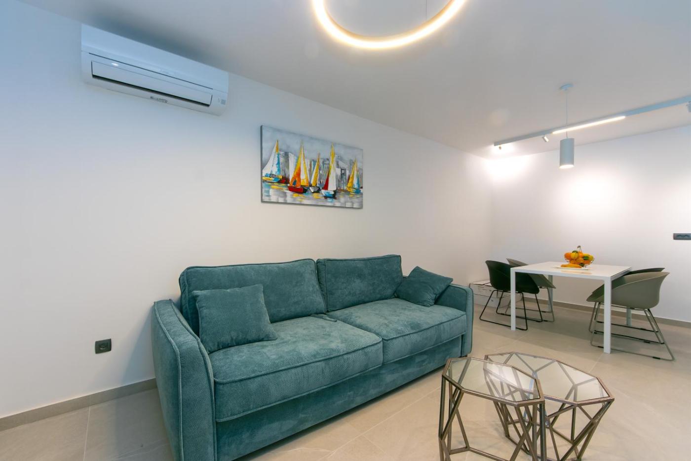 One-Bedroom Apartment with Terrace and Sea View. Featuring 1 bedroom, this apartment offers 1 bathroom with a shower, a seating area and terraceyou can relax. The well-equipped kitchen features a stovetop, a refrigerator, a dishwasher and kitchenware. The apartment offers air conditioning, a dining area, a sofa, a TV with satellite channels, as well as sea views. The unit has 1 bed. ;