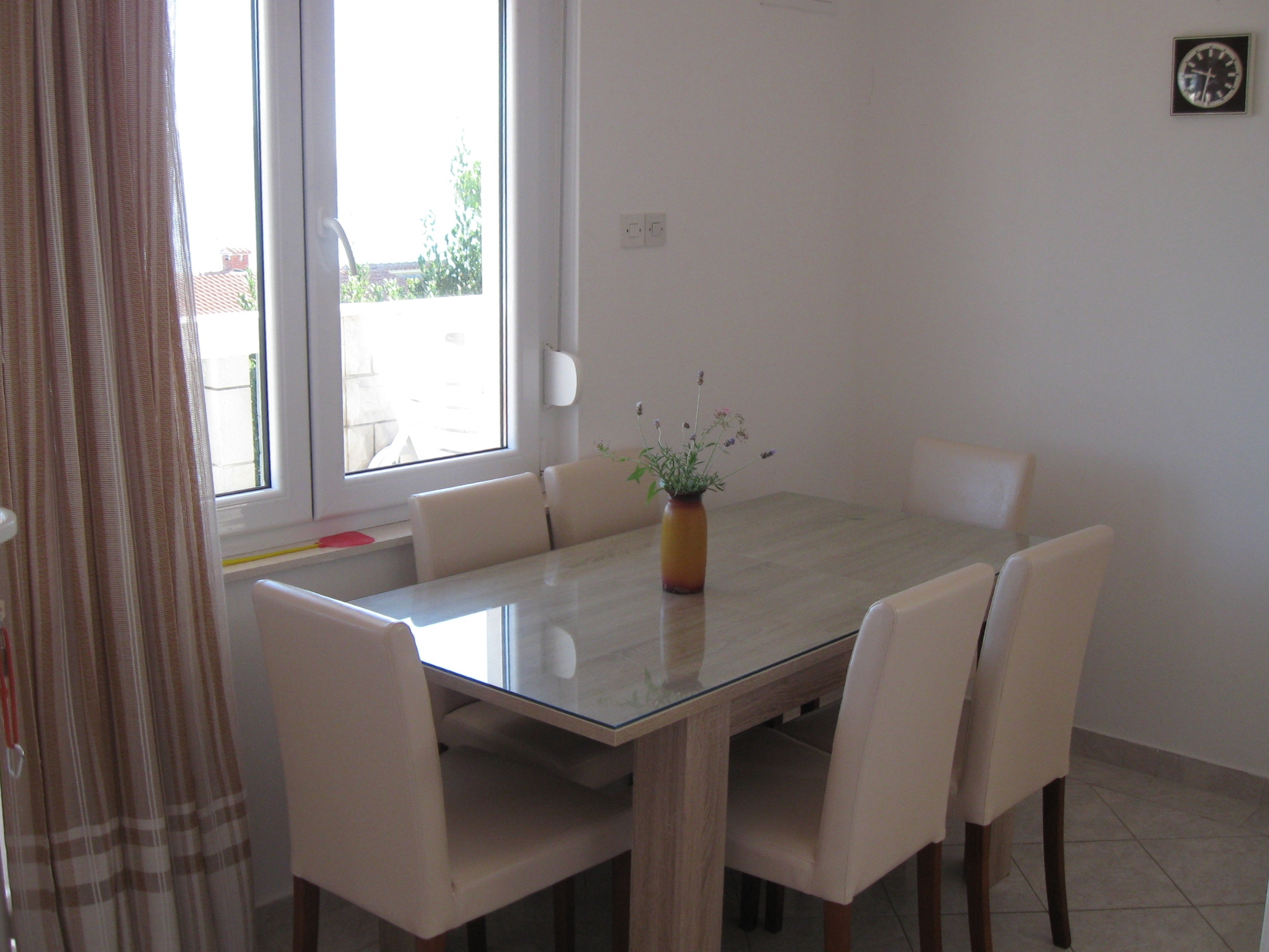 Apartment can accommodate 6 guests. Beds are situated in 2 sleeping rooms, but also in the living room, within 58m2. Guests can use a private terrace to enjoy the warm summer evenings. The apartment offers the sea view. Food can be prepared using barbecue which is shared with other guests too. This accommodation unit welcomes pets at an additional charge. INCLUDED IN THE PRICE: tourist tax, final cleaning, air-conditioning, parking, internet, hairdryer. OBLIGATORY ADDITIONAL COSTS: short stay fee (surcharge depending on a number of booked nights: 30% - 1, 20% - 2, 10% - 3). OPTIONAL ADDITIONAL COSTS: pets (€5.00 per night). The availability of additional services for your chosen dates of stay, as well as their prices (if none are listed) must be checked ahead of time. Any additional services not shown in the price calculation are payable directly to the property owner and only if used by the visitor.