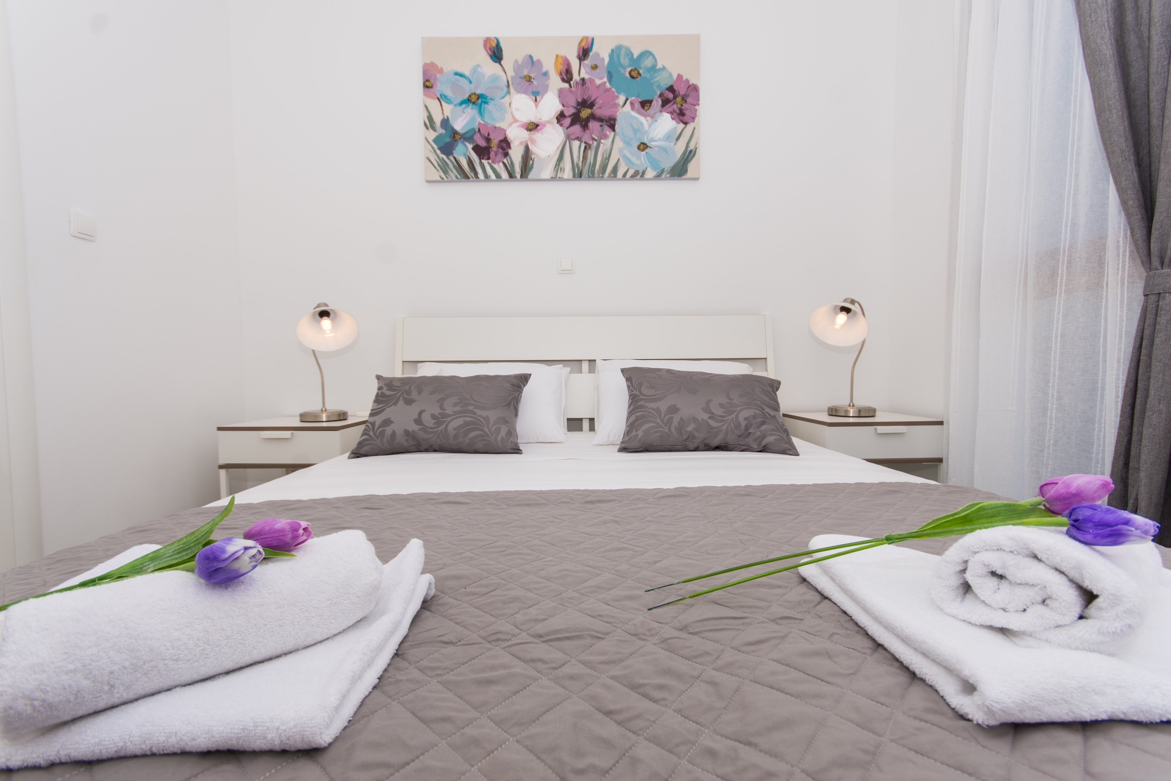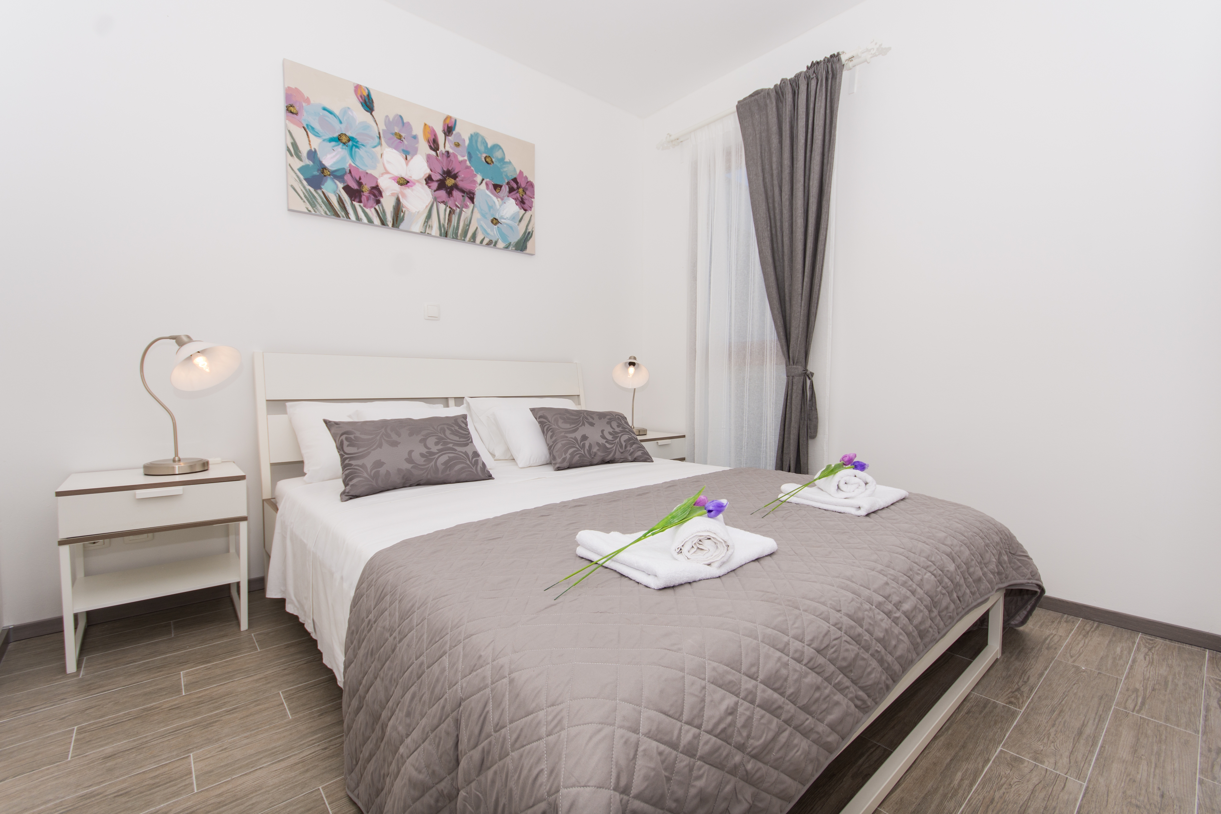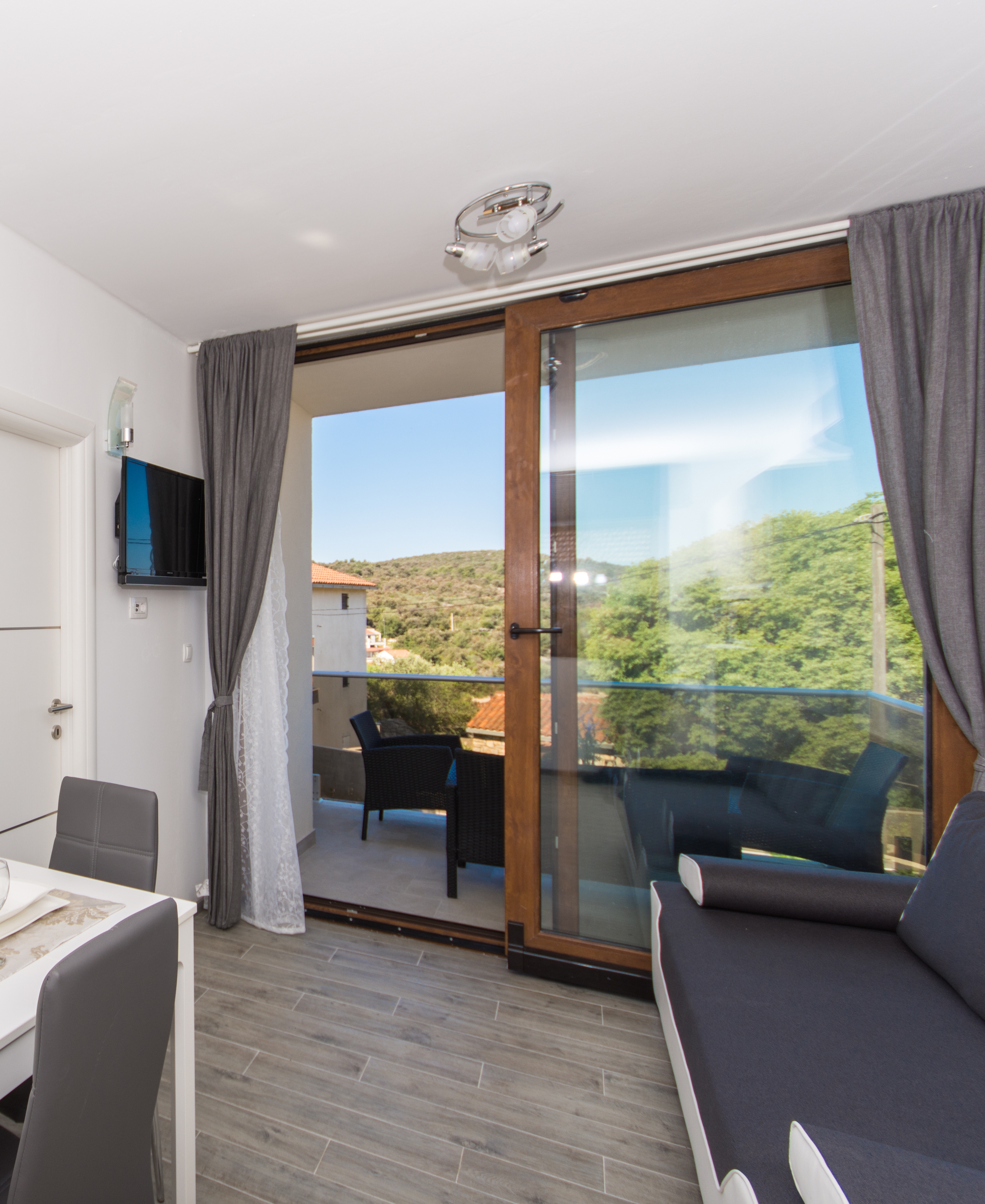 Apartment can accommodate 4 guests. Beds are situated in 1 sleeping rooms, but also in the living room, within 35m2. Guests can use a private terrace to enjoy the warm summer evenings. The apartment offers the sea view. Food can be prepared using barbecue which is shared with other guests too. Shared pool is on disposal during stay. INCLUDED IN THE PRICE: tourist tax, final cleaning, air-conditioning, pool, parking, internet, laundry, boat mooring, iron, ironing board, hairdryer. OPTIONAL ADDITIONAL COSTS: boat (€100.00 per night). The availability of additional services for your chosen dates of stay, as well as their prices (if none are listed) must be checked ahead of time. Any additional services not shown in the price calculation are payable directly to the property owner and only if used by the visitor.