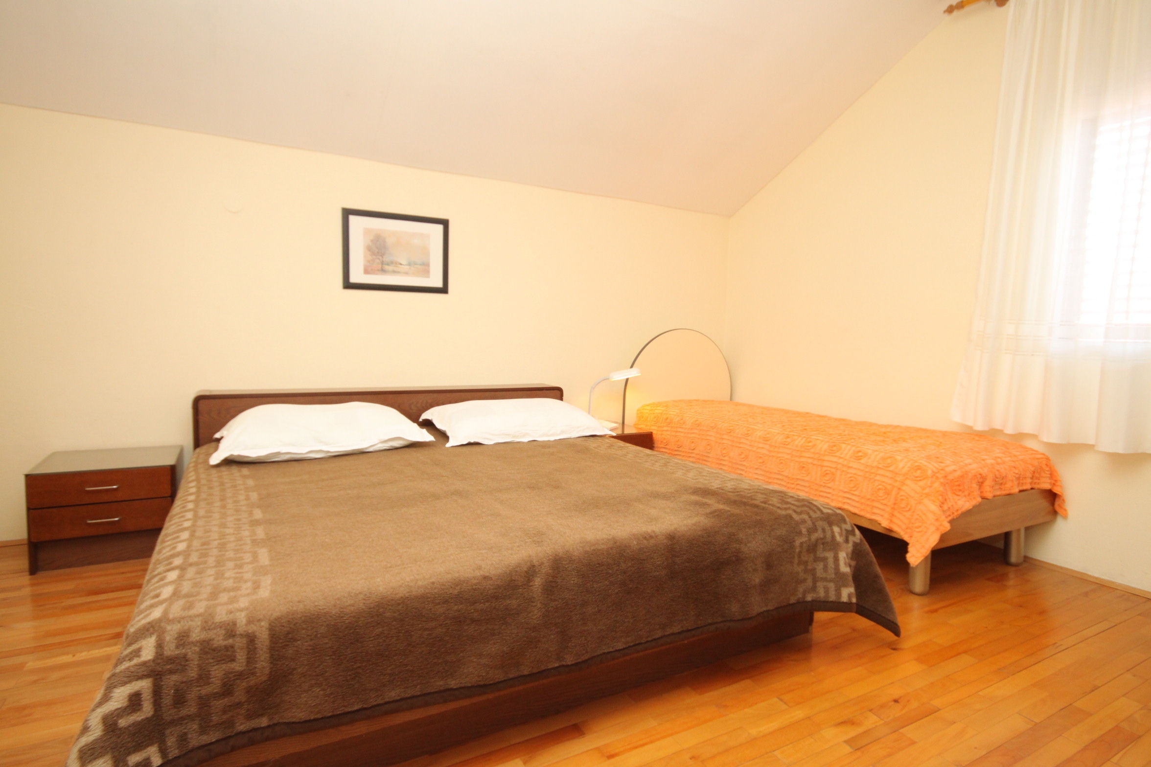 Apartment can accommodate 5 guests. Beds are situated in 2 sleeping rooms, within 44m2. Guests can use a private balcony to enjoy the warm summer evenings. The apartment offers the sea view. Food can be prepared using barbecue which is shared with other guests too. INCLUDED IN THE PRICE: tourist tax, final cleaning, air-conditioning, parking, internet, baby cot, iron, ironing board, hairdryer. OBLIGATORY ADDITIONAL COSTS: short stay fee (surcharge depending on a number of booked nights: 30% - 1, 20% - 2, 10% - 3). The availability of additional services for your chosen dates of stay, as well as their prices (if none are listed) must be checked ahead of time. Any additional services not shown in the price calculation are payable directly to the property owner and only if used by the visitor. Discounts to the base price: free day 14=13 (for reservations of 14 or more days you get one free day for the stay until 31122026).