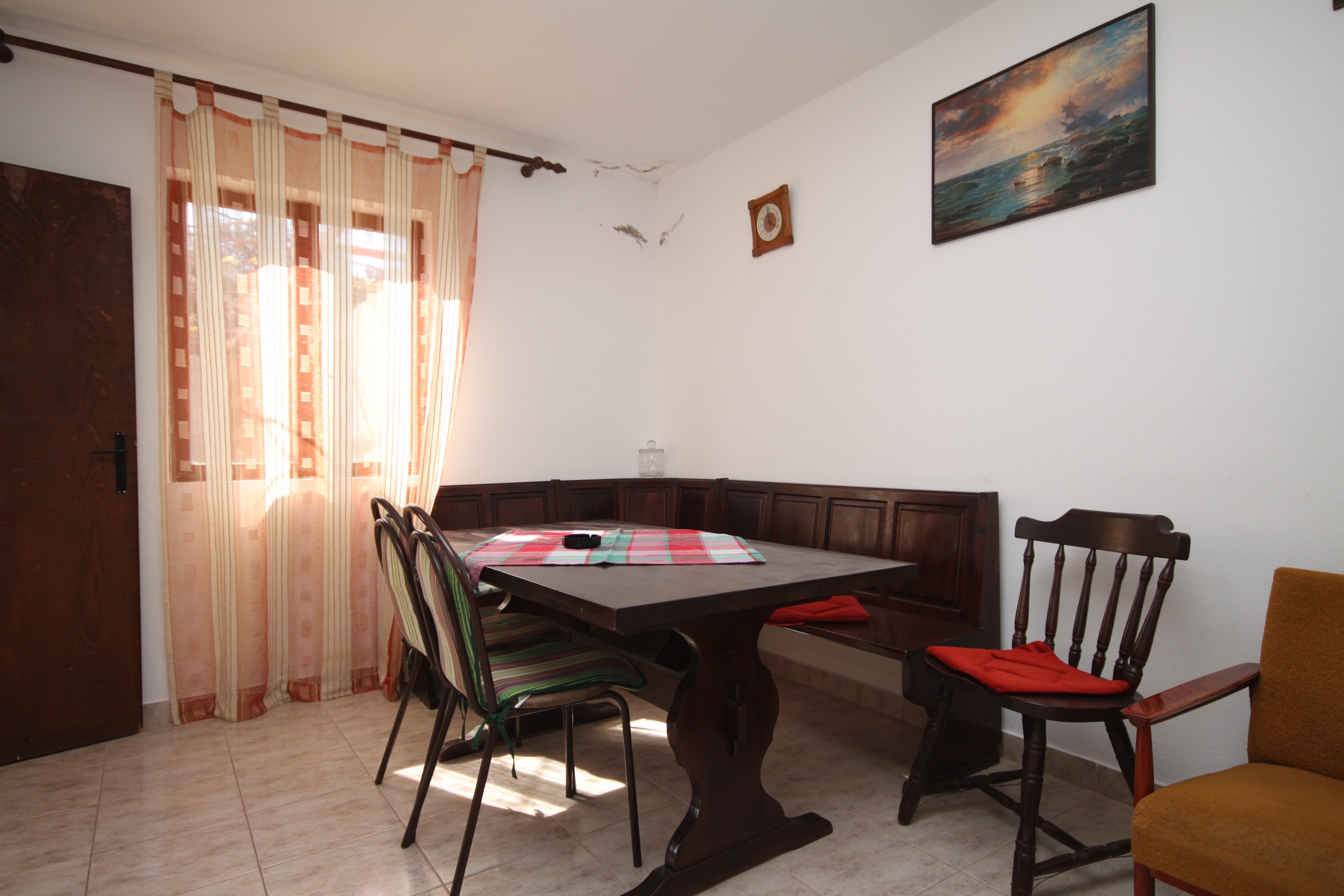 Apartment can accommodate 8 guests. Beds are situated in 4 sleeping rooms, within 69m2. Guests can use a private terrace to enjoy the warm summer evenings. The apartment offers the sea view. Food can be prepared using barbecue which is shared with other guests too. This accommodation unit welcomes pets at an additional charge. INCLUDED IN THE PRICE: tourist tax, final cleaning, parking, internet, boat mooring, baby cot, iron, ironing board, hairdryer. OBLIGATORY ADDITIONAL COSTS: short stay fee (surcharge depending on a number of booked nights: 30% - 1, 20% - 2, 10% - 3). OPTIONAL ADDITIONAL COSTS: laundry (€5.00 washing), boat (€50.00 per night), pets (€5.00 per night), additional bed (€10.00 per night). The availability of additional services for your chosen dates of stay, as well as their prices (if none are listed) must be checked ahead of time. Any additional services not shown in the price calculation are payable directly to the property owner and only if used by the visitor.
