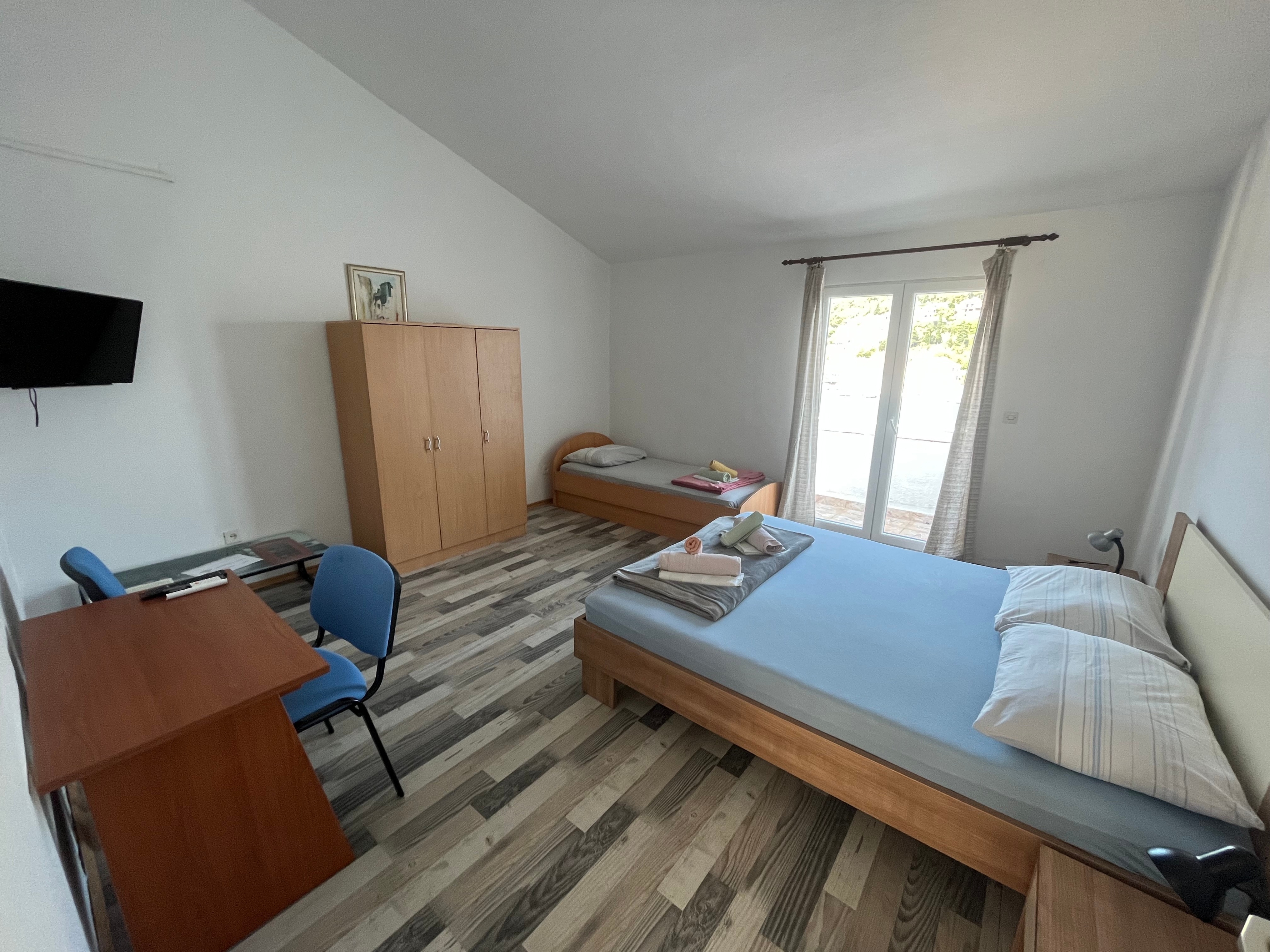 Apartment can accommodate 4 guests. Beds are situated in 1 sleeping rooms, but also in the living room, within 55m2. Guests can use a private terrace to enjoy the warm summer evenings. The apartment offers the sea view. This accommodation unit welcomes pets at no additional costs. INCLUDED IN THE PRICE: tourist tax, final cleaning, air-conditioning, parking, internet, pets. OBLIGATORY ADDITIONAL COSTS: short stay fee (surcharge depending on a number of booked nights: 30% - 1, 20% - 2, 10% - 3). OPTIONAL ADDITIONAL COSTS: additional bed (€15.00 per night). The availability of additional services for your chosen dates of stay, as well as their prices (if none are listed) must be checked ahead of time. Any additional services not shown in the price calculation are payable directly to the property owner and only if used by the visitor.