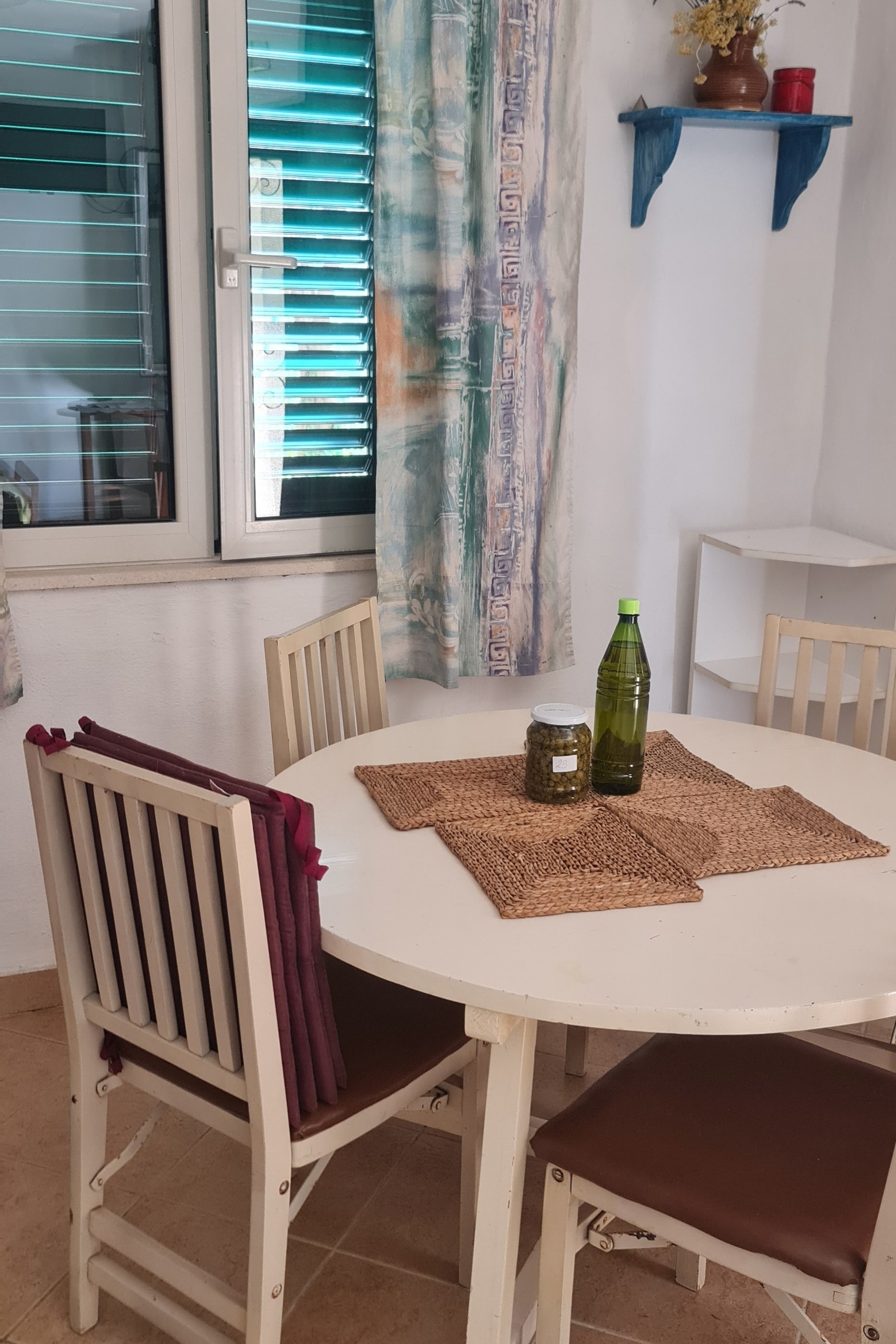 Apartment can accommodate 4 guests. Beds are situated in 1 sleeping rooms, but also in the living room, within 38m2. Guests can use a private terrace to enjoy the warm summer evenings. The apartment offers the sea view. Food can be prepared using barbecue which is shared with other guests too. INCLUDED IN THE PRICE: tourist tax, final cleaning, parking, internet, iron, ironing board, hairdryer, sunshade, sunchairs. OPTIONAL ADDITIONAL COSTS: boat mooring (€10.00 per night). The availability of additional services for your chosen dates of stay, as well as their prices (if none are listed) must be checked ahead of time. Any additional services not shown in the price calculation are payable directly to the property owner and only if used by the visitor. Discounts to the base price: free day 14=13 (for reservations of 14 or more days you get one free day for the stay until 31122026).