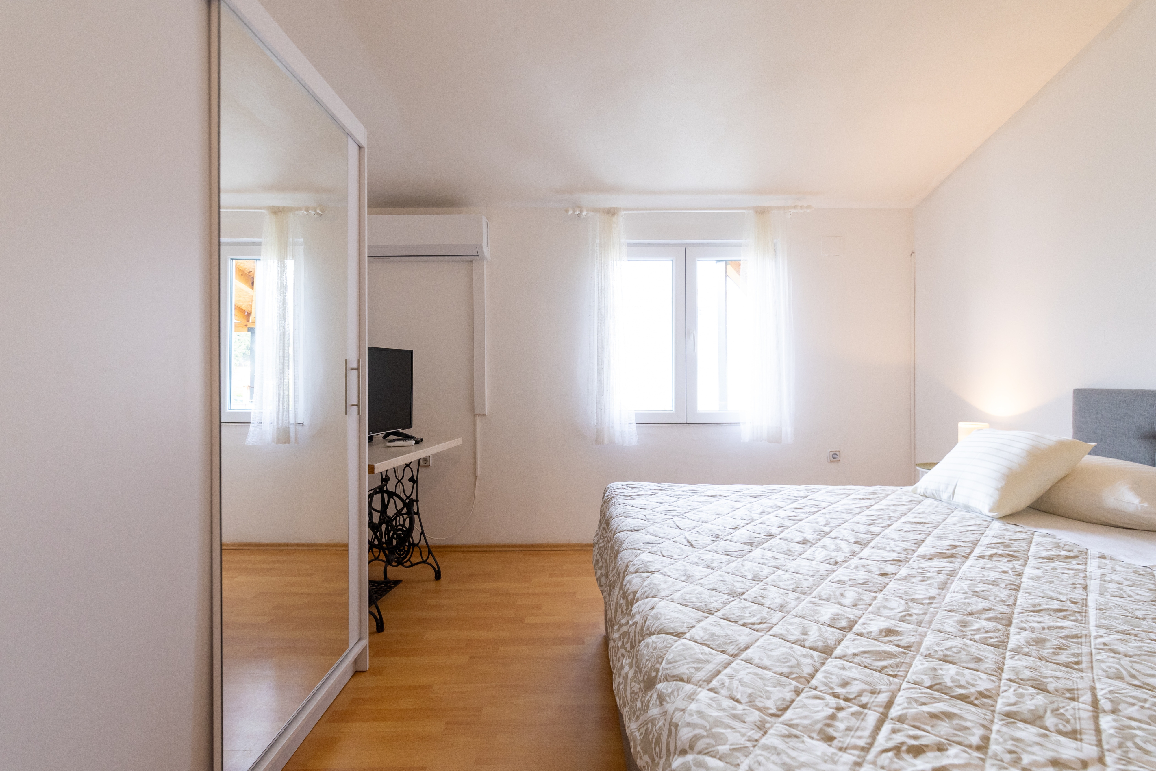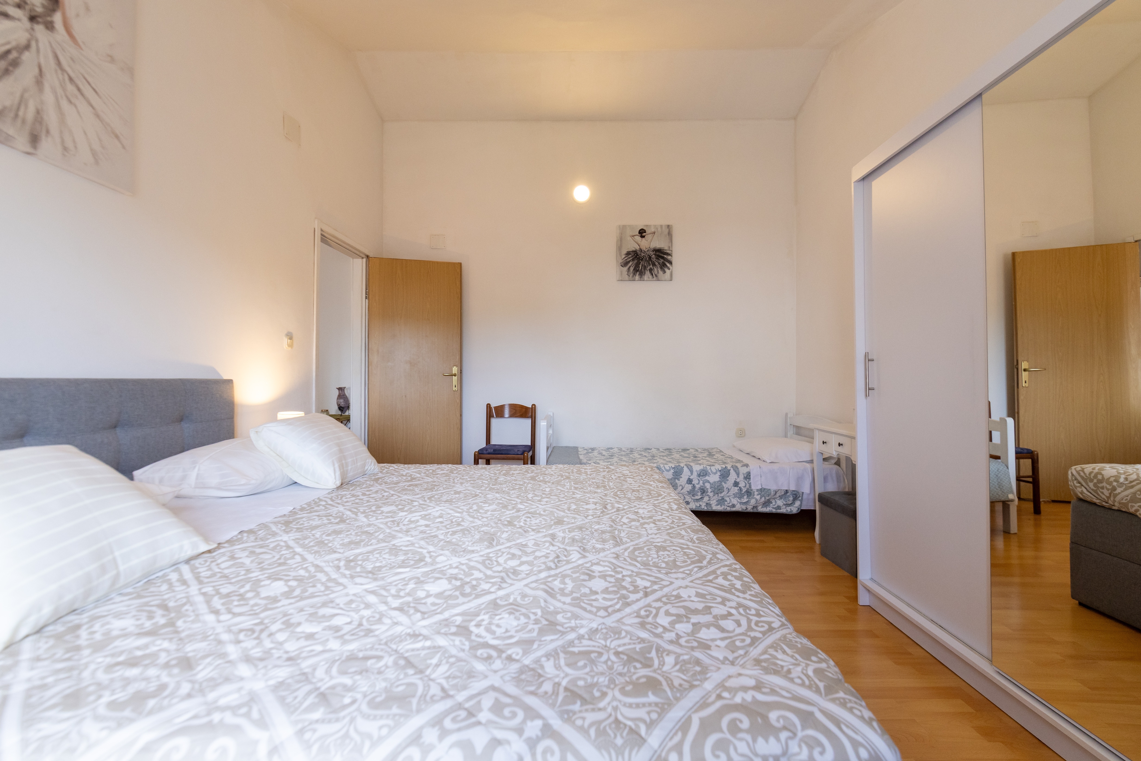 Apartment can accommodate 5 guests. Beds are situated in 1 sleeping rooms, but also in the living room, within 46m2. Guests can use a private terrace to enjoy the warm summer evenings. Food can be prepared using barbecue which is shared with other guests too. This accommodation unit welcomes pets at an additional charge. INCLUDED IN THE PRICE: tourist tax, final cleaning, air-conditioning, parking, internet, iron, ironing board, hairdryer. OPTIONAL ADDITIONAL COSTS: pets (€6.00 per night). The availability of additional services for your chosen dates of stay, as well as their prices (if none are listed) must be checked ahead of time. Any additional services not shown in the price calculation are payable directly to the property owner and only if used by the visitor.