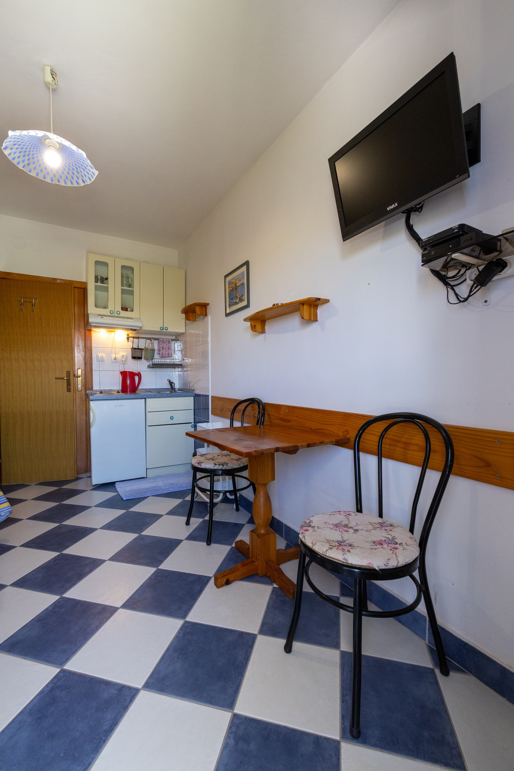 Studio flat can accommodate 2 guests. Beds are situated in 1 sleeping rooms, within 14m2. Guests can use a private balcony to enjoy the warm summer evenings. Food can be prepared using barbecue which is shared with other guests too. This accommodation unit welcomes pets at an additional charge. INCLUDED IN THE PRICE: tourist tax, final cleaning, air-conditioning, parking, internet, baby cot, iron, ironing board, hairdryer. OBLIGATORY ADDITIONAL COSTS: short stay fee (surcharge depending on a number of booked nights: 30% - 1, 20% - 2, 10% - 3). OPTIONAL ADDITIONAL COSTS: breakfast (€10.00, a 50% discount for children aged 4 to 12 years, Children up to age 4 free of charge), pets (€10.00 per night). The availability of additional services for your chosen dates of stay, as well as their prices (if none are listed) must be checked ahead of time. Any additional services not shown in the price calculation are payable directly to the property owner and only if used by the visitor. Discounts to the base price: free day 28=25 (for stays of 28 days or more, we give you 3 days free of charge for the stay until 31122026).