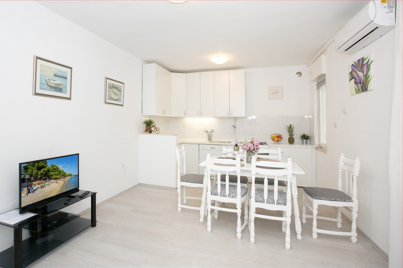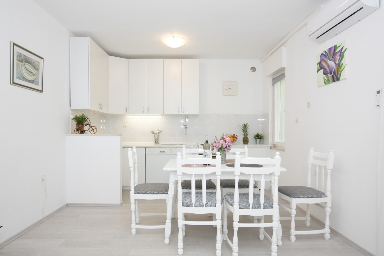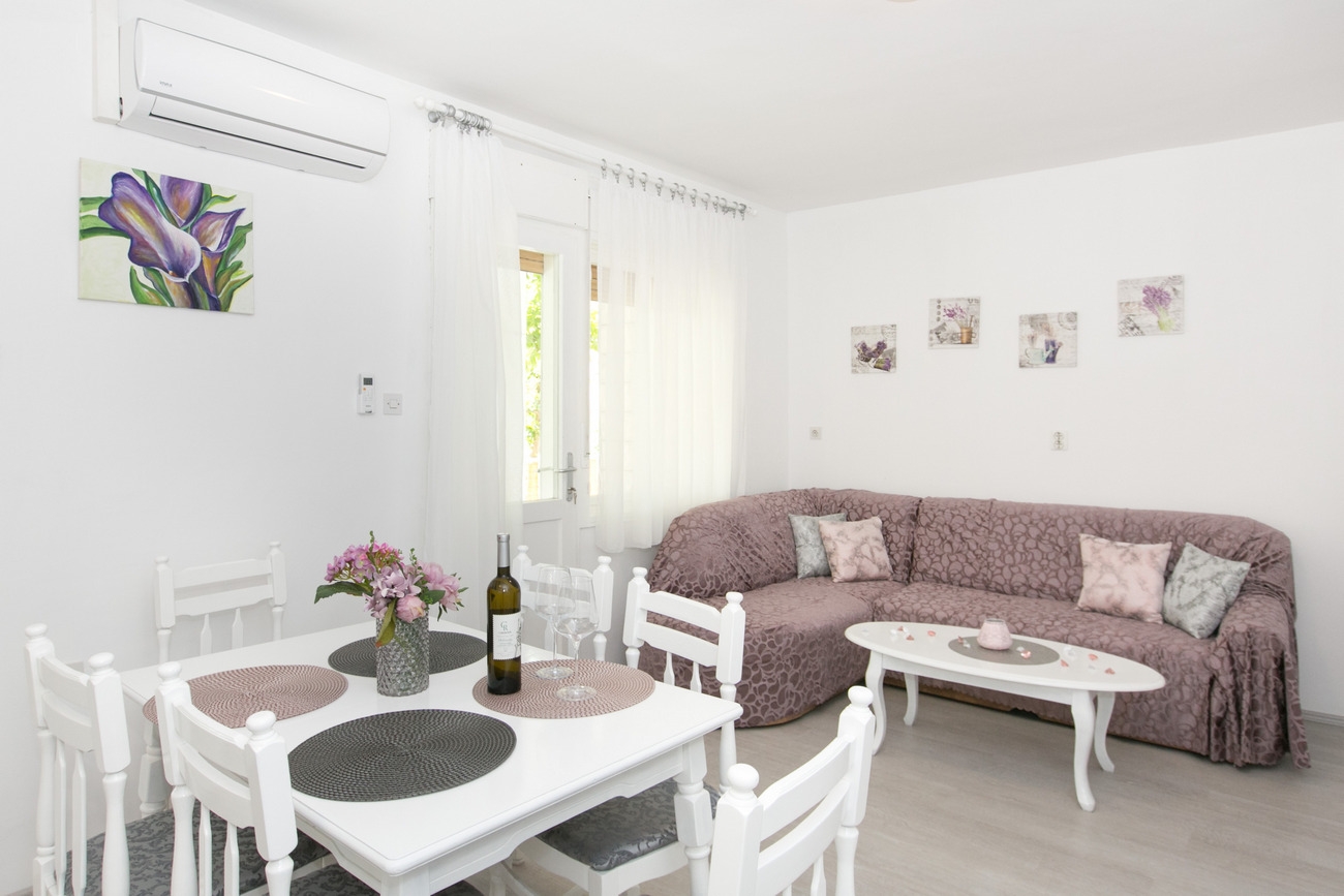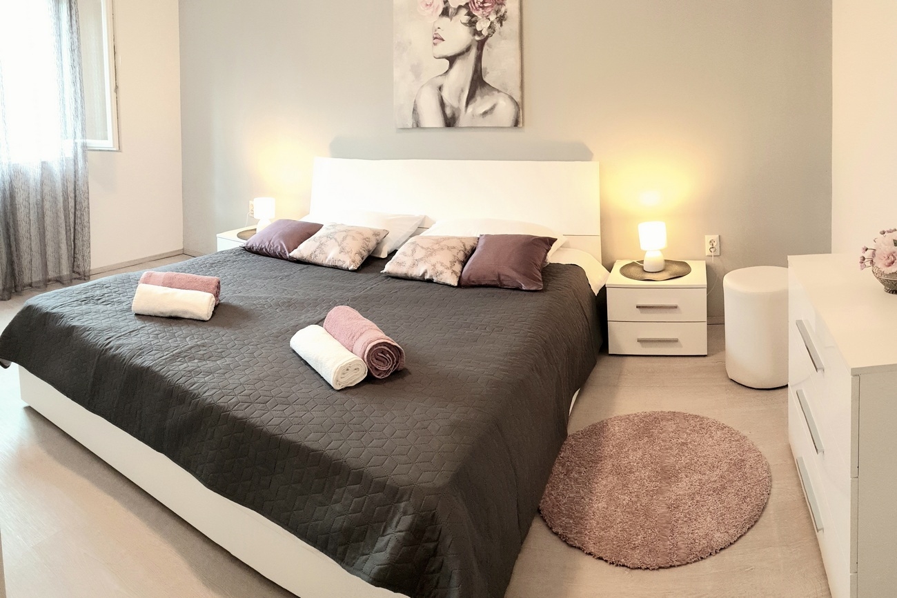 Apartment can accommodate 6 guests. Beds are situated in 2 sleeping rooms, but also in the living room, within 58m2. Guests can use a private terrace to enjoy the warm summer evenings. Food can be prepared using barbecue which is shared with other guests too. INCLUDED IN THE PRICE: tourist tax, final cleaning, air-conditioning, parking, internet, bicycle, baby cot, iron, ironing board, hairdryer, portable barbecue, sunshade. The availability of additional services for your chosen dates of stay, as well as their prices (if none are listed) must be checked ahead of time. Any additional services not shown in the price calculation are payable directly to the property owner and only if used by the visitor. Discounts to the base price: free day 21=19 (for reservations of 21 or more days you get 2 free days for the stay until 31122026).