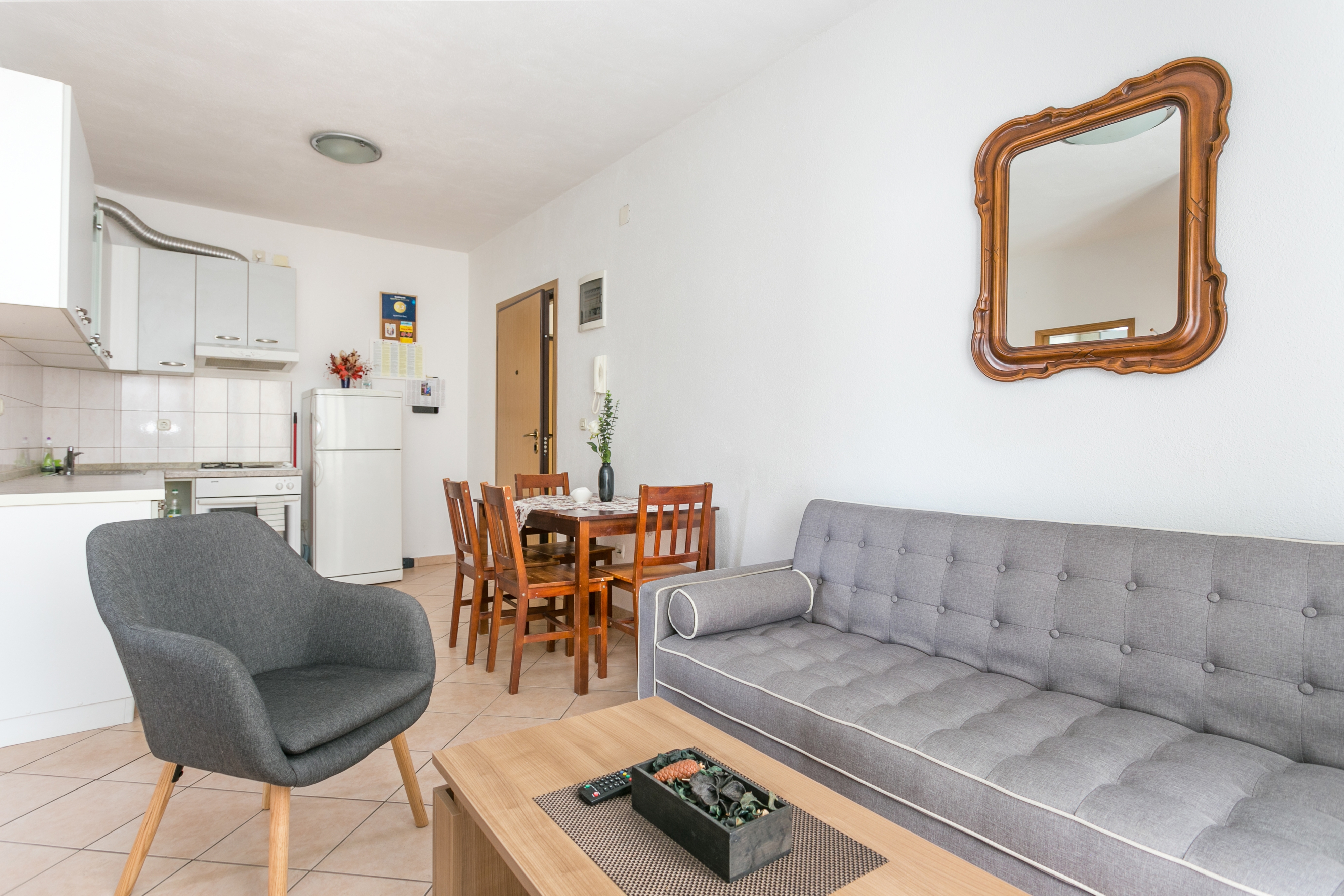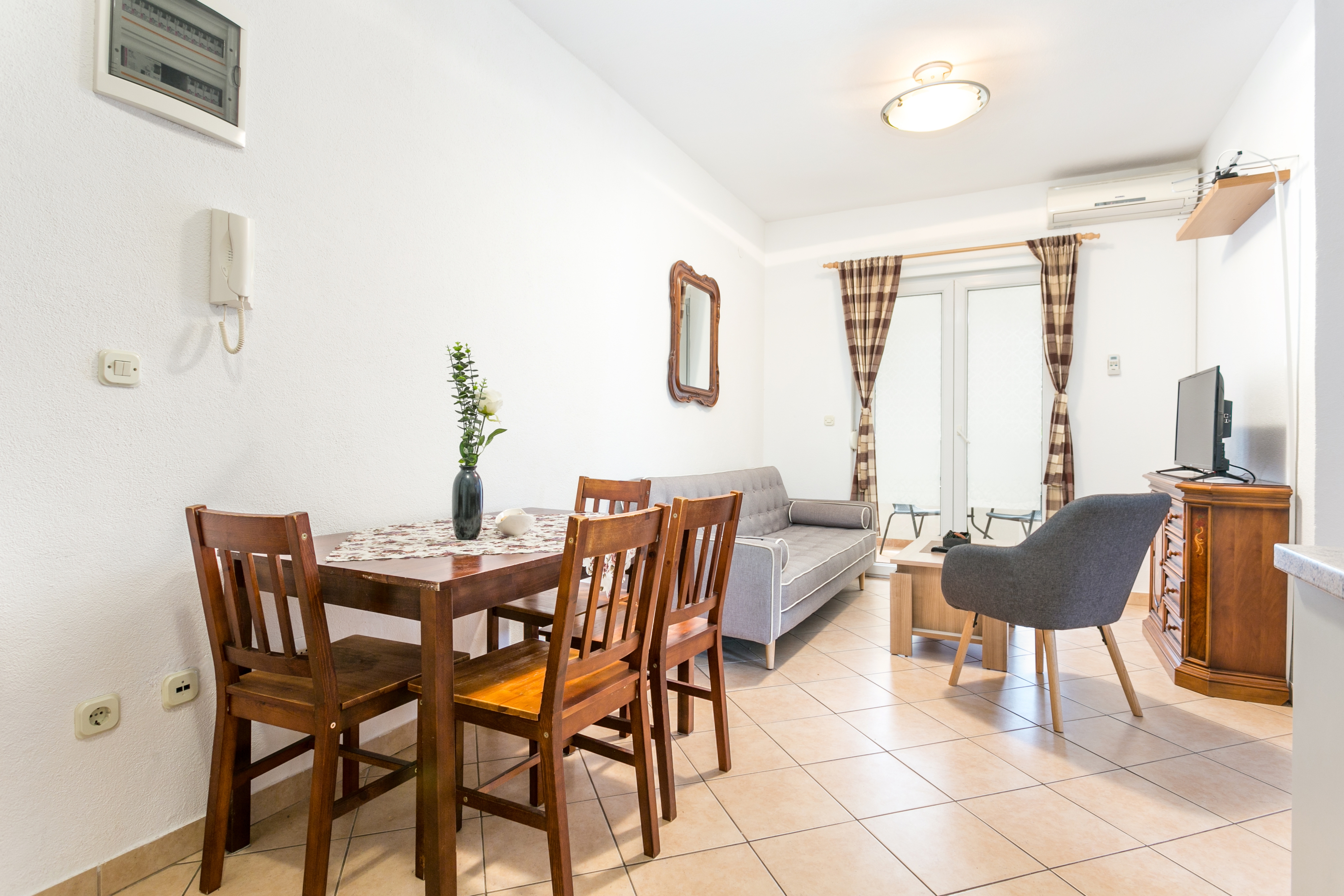 Apartment can accommodate 4 guests. Beds are situated in 2 sleeping rooms, within 41m2. Guests can use a private terrace to enjoy the warm summer evenings. INCLUDED IN THE PRICE: tourist tax, final cleaning, air-conditioning, parking, internet, hairdryer. OBLIGATORY ADDITIONAL COSTS: short stay fee (surcharge depending on a number of booked nights: 30% - 1, 20% - 2, 10% - 3). The availability of additional services for your chosen dates of stay, as well as their prices (if none are listed) must be checked ahead of time. Any additional services not shown in the price calculation are payable directly to the property owner and only if used by the visitor.