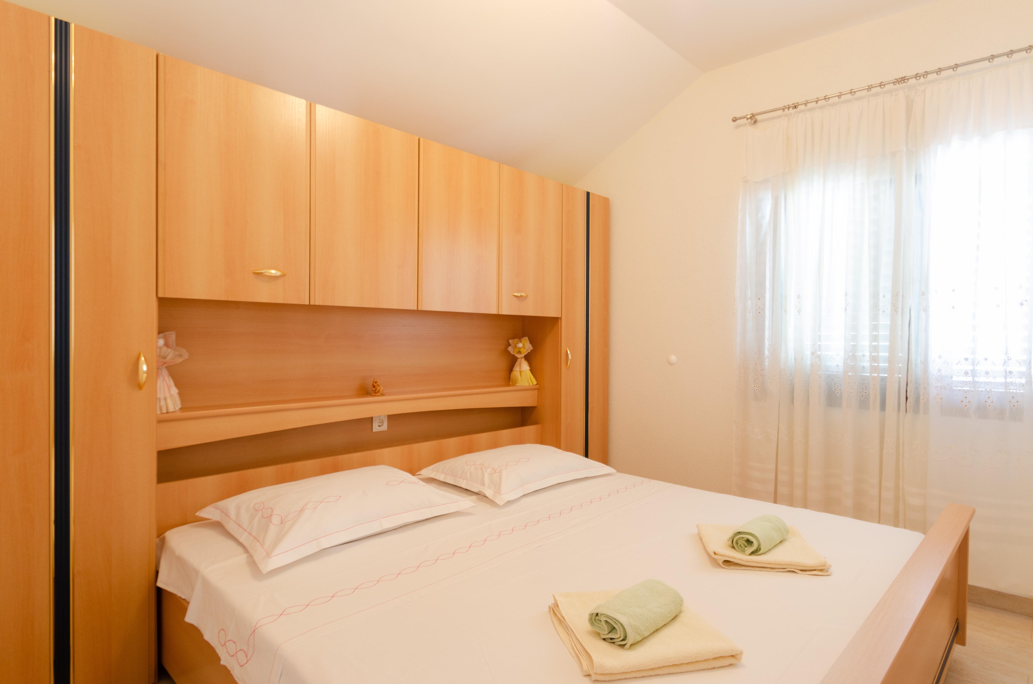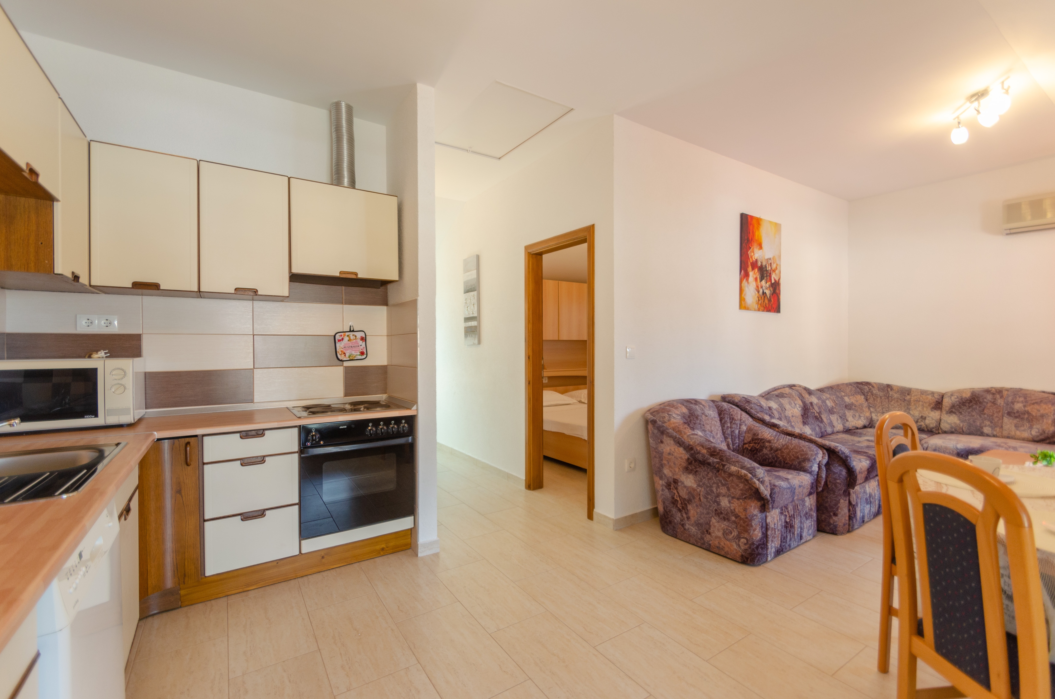 Apartment can accommodate 4 guests. Beds are situated in 1 sleeping rooms, but also in the living room, within 50m2. Guests can use a private terrace to enjoy the warm summer evenings. The apartment offers the sea view. Food can be prepared using barbecue which is shared with other guests too. INCLUDED IN THE PRICE: tourist tax, final cleaning, parking, internet, baby cot, iron, ironing board, hairdryer, portable barbecue. OBLIGATORY ADDITIONAL COSTS: short stay fee (surcharge depending on a number of booked nights: 30% - 1, 20% - 2, 10% - 3). OPTIONAL ADDITIONAL COSTS: air-conditioning (€5.00 per night), laundry (€5.00 washing), boat mooring (€5.00 per night). The availability of additional services for your chosen dates of stay, as well as their prices (if none are listed) must be checked ahead of time. Any additional services not shown in the price calculation are payable directly to the property owner and only if used by the visitor. Discounts to the base price: free day 14=13 (for reservations of 14 or more days you get one free day for the stay until 31122026).