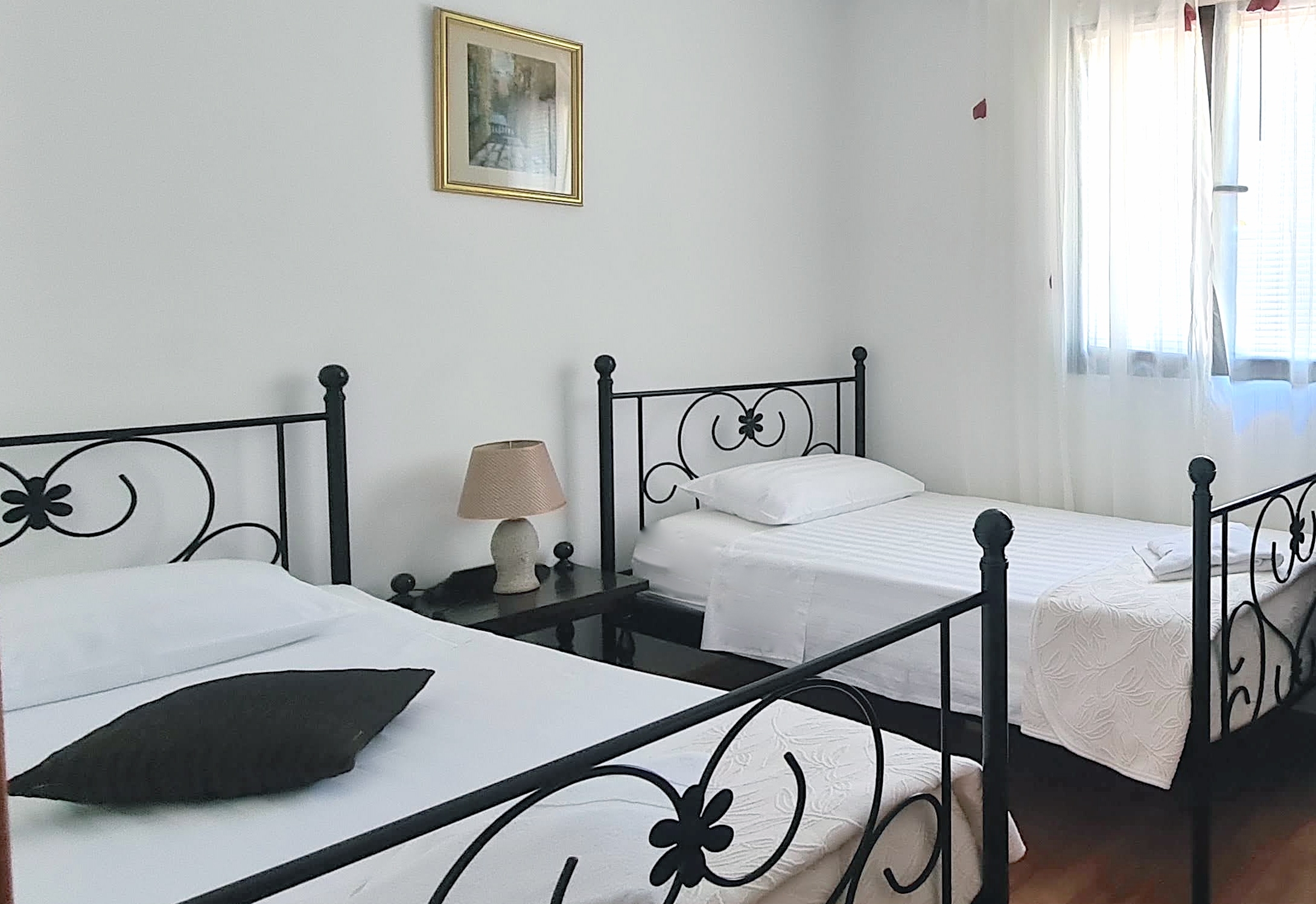 Apartment can accommodate 4 guests. Beds are situated in 2 sleeping rooms, within 70m2. Guests can use a private terrace to enjoy the warm summer evenings. The apartment offers the sea view. For full enjoyment and relaxation there is a private barbecue for this accommodation guests only. Shared pool is on disposal during stay. INCLUDED IN THE PRICE: tourist tax, final cleaning, air-conditioning, pool, parking, internet, laundry, boat mooring, baby cot, iron, ironing board, hairdryer, portable barbecue. OBLIGATORY ADDITIONAL COSTS: short stay fee (surcharge depending on a number of booked nights: 30% - 1, 20% - 2, 10% - 3). The availability of additional services for your chosen dates of stay, as well as their prices (if none are listed) must be checked ahead of time. Any additional services not shown in the price calculation are payable directly to the property owner and only if used by the visitor.