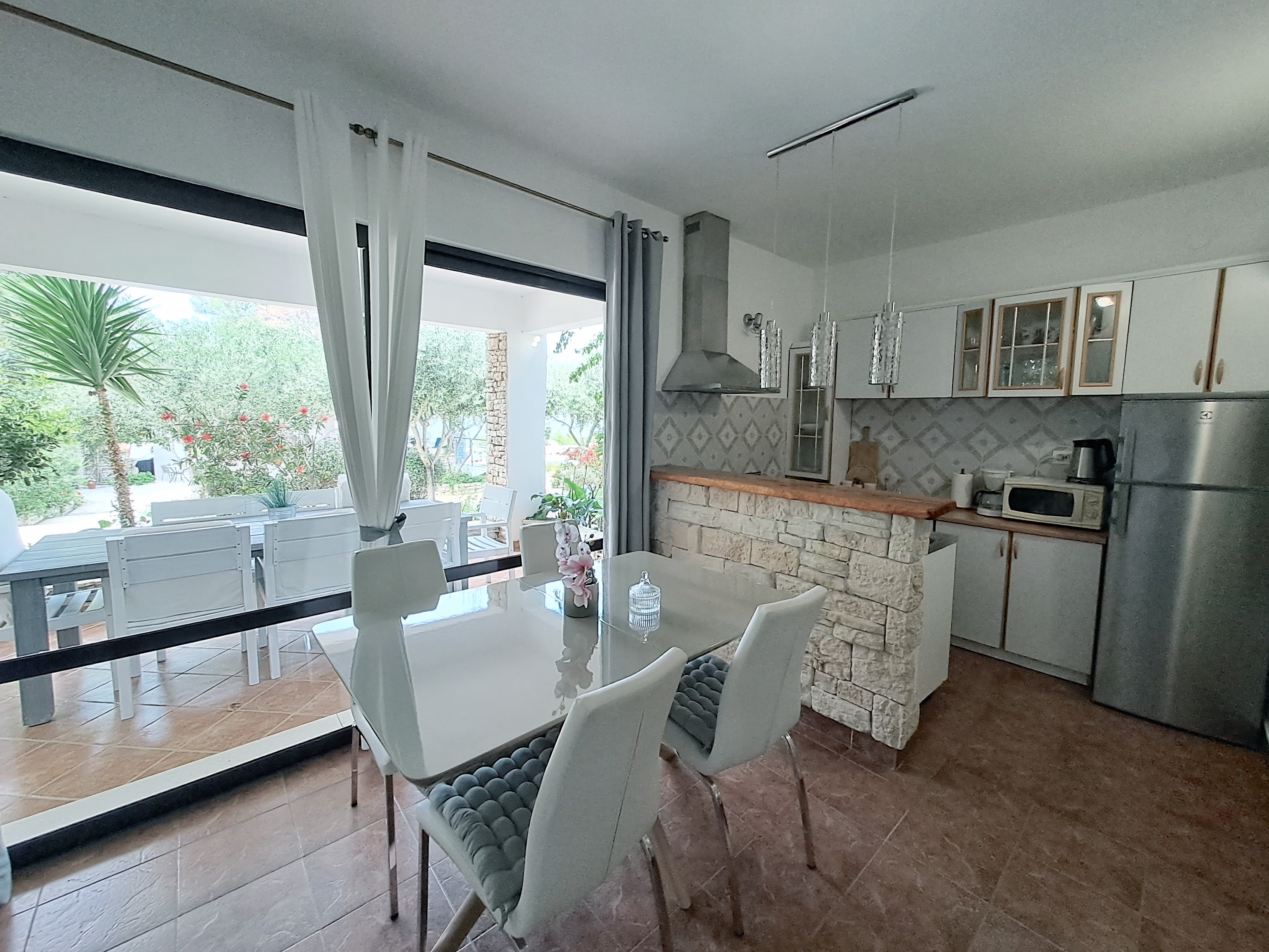 House 18258 in the town of Poplat, Korčula - South Dalmatia contains accommodation units of type Apartment (4) and is 50 m away from the sea. The nearest beach to this accommodation is a rocky beach beach. The house is categorized as "Luxury villas". As the house is dividedseveral accommodation units, other guests will most likely be present during your stay. The hosts will not be in the house for the duration of your holiday. The house owner is under no obligation to accept additional persons and pets that were not stated in the reservation request and it is necessary to report them in advance.AMENITIES Infield (Well-equipped), Courtyard (1000m2, Area suitable for children, Sitting area), Parking lot (Number of parking spaces: 6, Distance from the house: In the courtyard), Pool: shared, Dimensions: 10.5m x 5.5m x 1.7m, Type of water: Saltwater, WiFi Internet, Laundry service, Boat mooring (Distance from the house: 50 m, Type of boat berth: shore), Hairdryer, Iron, Ironing board, Portable barbecue, Baby cot LOCATION AND ACCESS Facility is situated near a local road Local road between the property and the beach The property is located by the beach Car access possible: Yes The facility is situated in relatively quiet surroundings The property is surrounded by greenery DISTANCES Sea: 50 m Beach: 100 m Center: 9 km Shop: 8.5 km Urgent medical care: 10 km Pharmacy: 9 km Exchange office: 9 km ATMBank machine: 9 km Tourist info: 9 km Ferry port: 9 km Gas station: 8 km Farmers market: 7 km