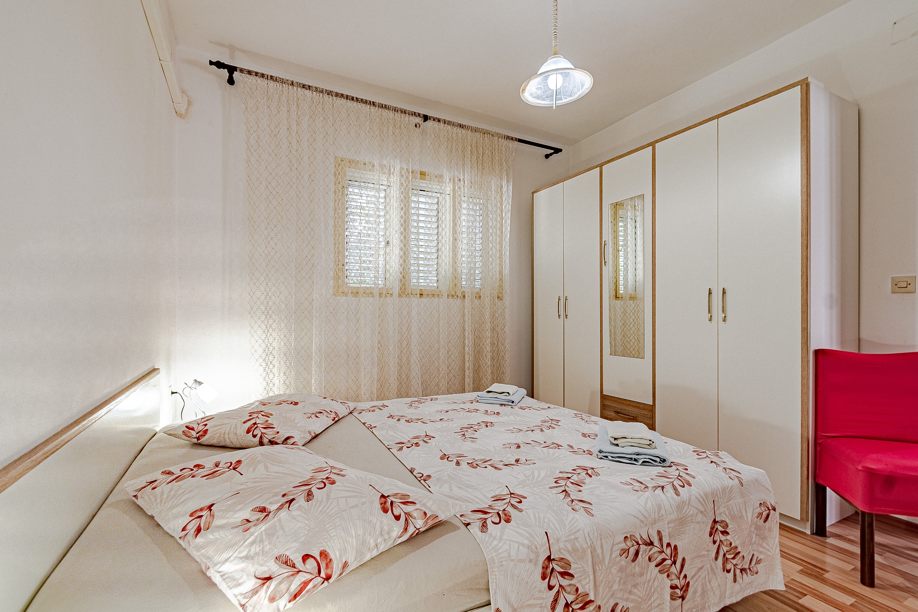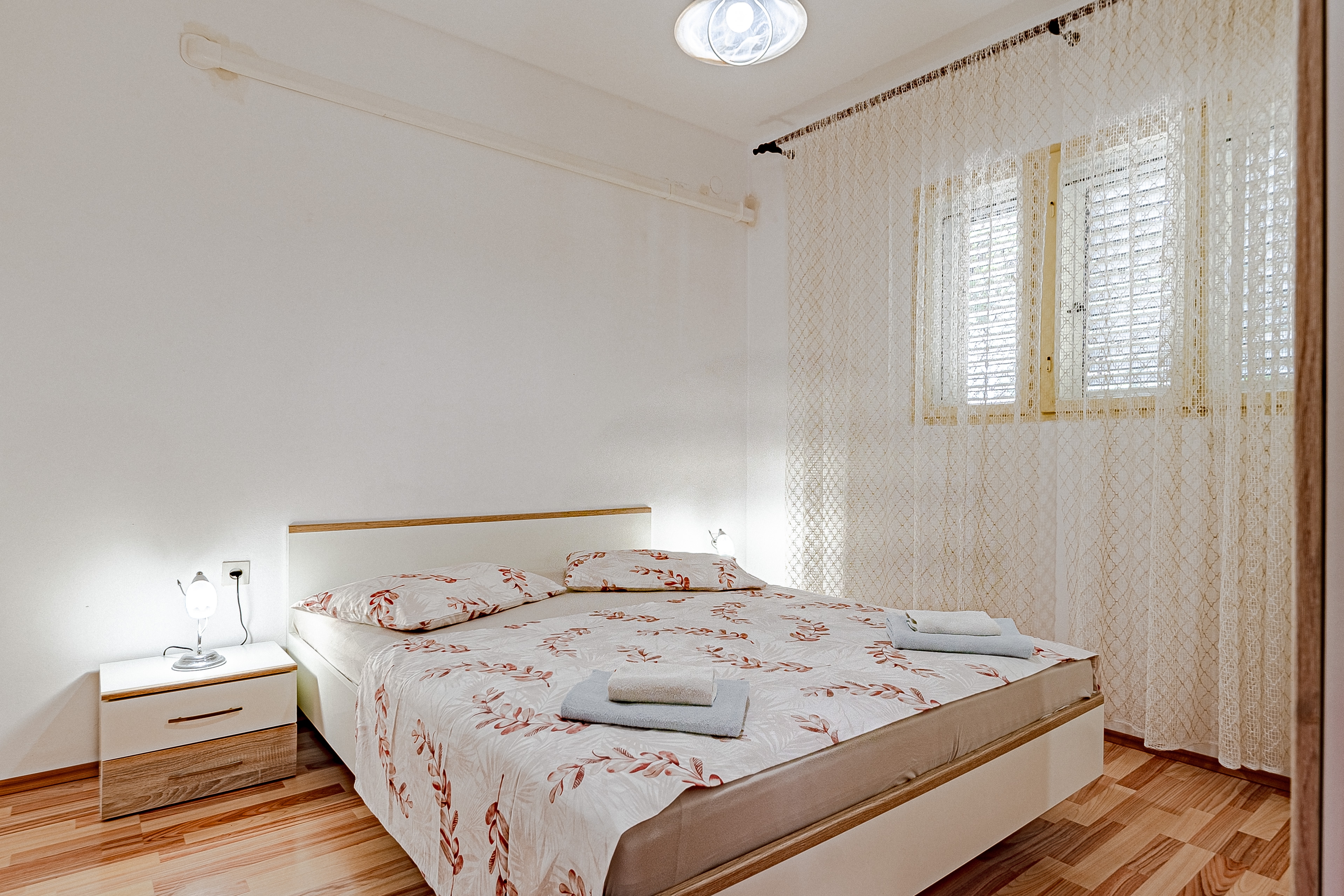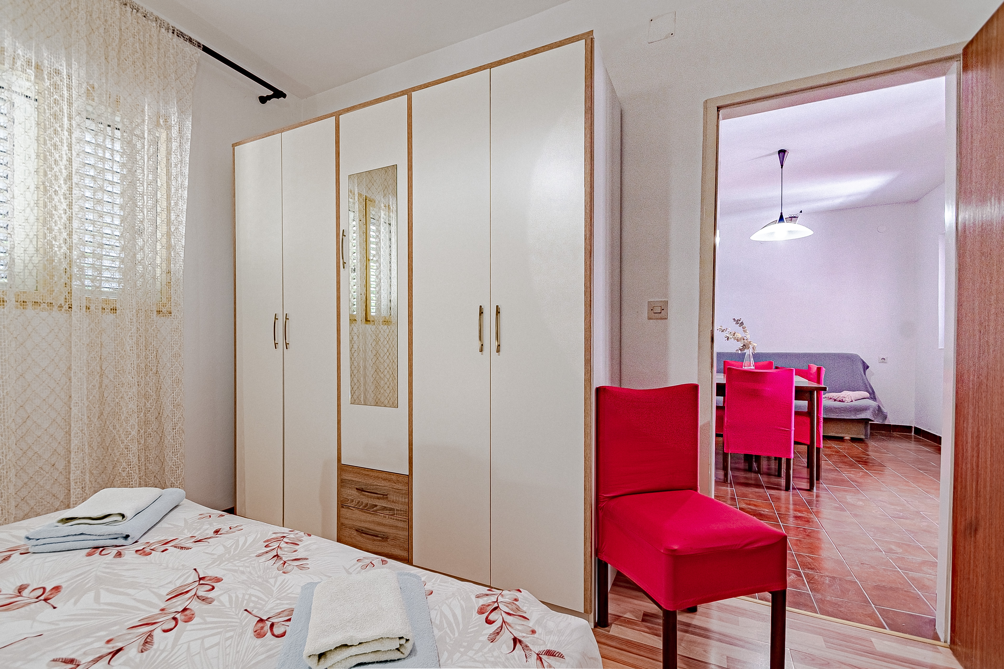 Apartment can accommodate 4 guests. Beds are situated in 2 sleeping rooms, within 44m2. Guests can use a private terrace to enjoy the warm summer evenings. The apartment offers the sea view. Food can be prepared using barbecue which is shared with other guests too. INCLUDED IN THE PRICE: tourist tax, final cleaning, air-conditioning, parking, internet, baby cot, iron, ironing board, hairdryer, sunshade. OBLIGATORY ADDITIONAL COSTS: short stay fee (surcharge depending on a number of booked nights: 30% - 1, 20% - 2, 10% - 3). The availability of additional services for your chosen dates of stay, as well as their prices (if none are listed) must be checked ahead of time. Any additional services not shown in the price calculation are payable directly to the property owner and only if used by the visitor. Discounts to the base price: free day 21=19 (for reservations of 21 or more days you get 2 free days for the stay until 31122026).