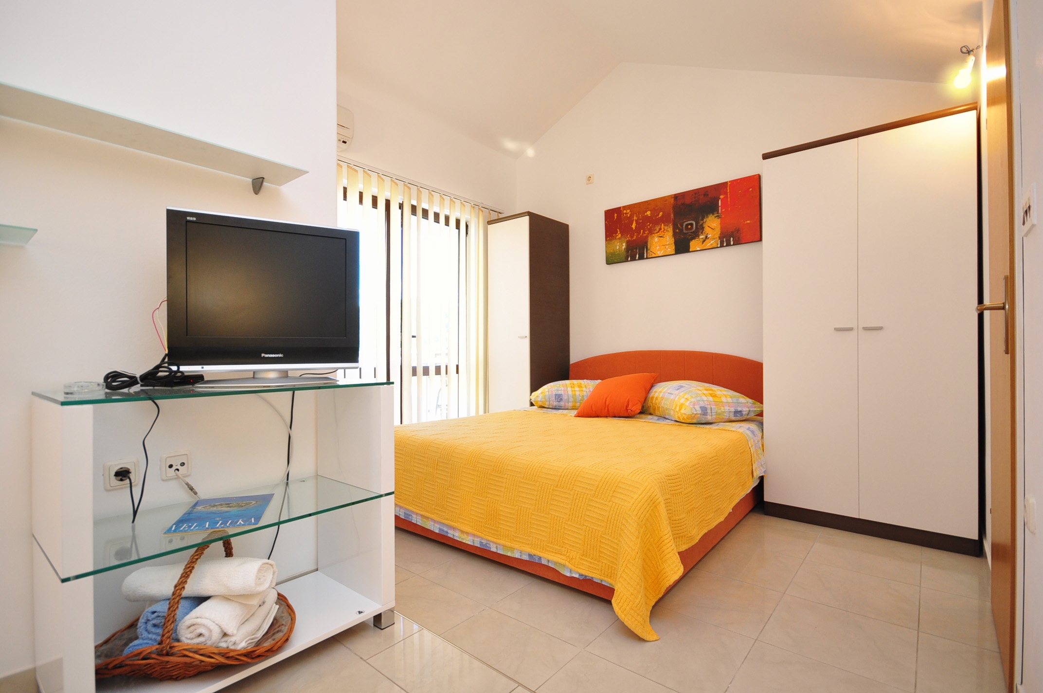 Studio flat can accommodate 2 guests. Beds are situated in 1 sleeping rooms, within 19m2. Guests can use a private balcony to enjoy the warm summer evenings. The studio offers the sea view. Food can be prepared using barbecue which is shared with other guests too. INCLUDED IN THE PRICE: tourist tax, final cleaning, air-conditioning, parking, internet, iron, ironing board, hairdryer. OBLIGATORY ADDITIONAL COSTS: short stay fee (surcharge depending on a number of booked nights: 30% - 1, 20% - 2, 10% - 3). The availability of additional services for your chosen dates of stay, as well as their prices (if none are listed) must be checked ahead of time. Any additional services not shown in the price calculation are payable directly to the property owner and only if used by the visitor. Discounts to the base price: free day 14=13 (for reservations of 14 or more days you get one free day for the stay until 31122026).