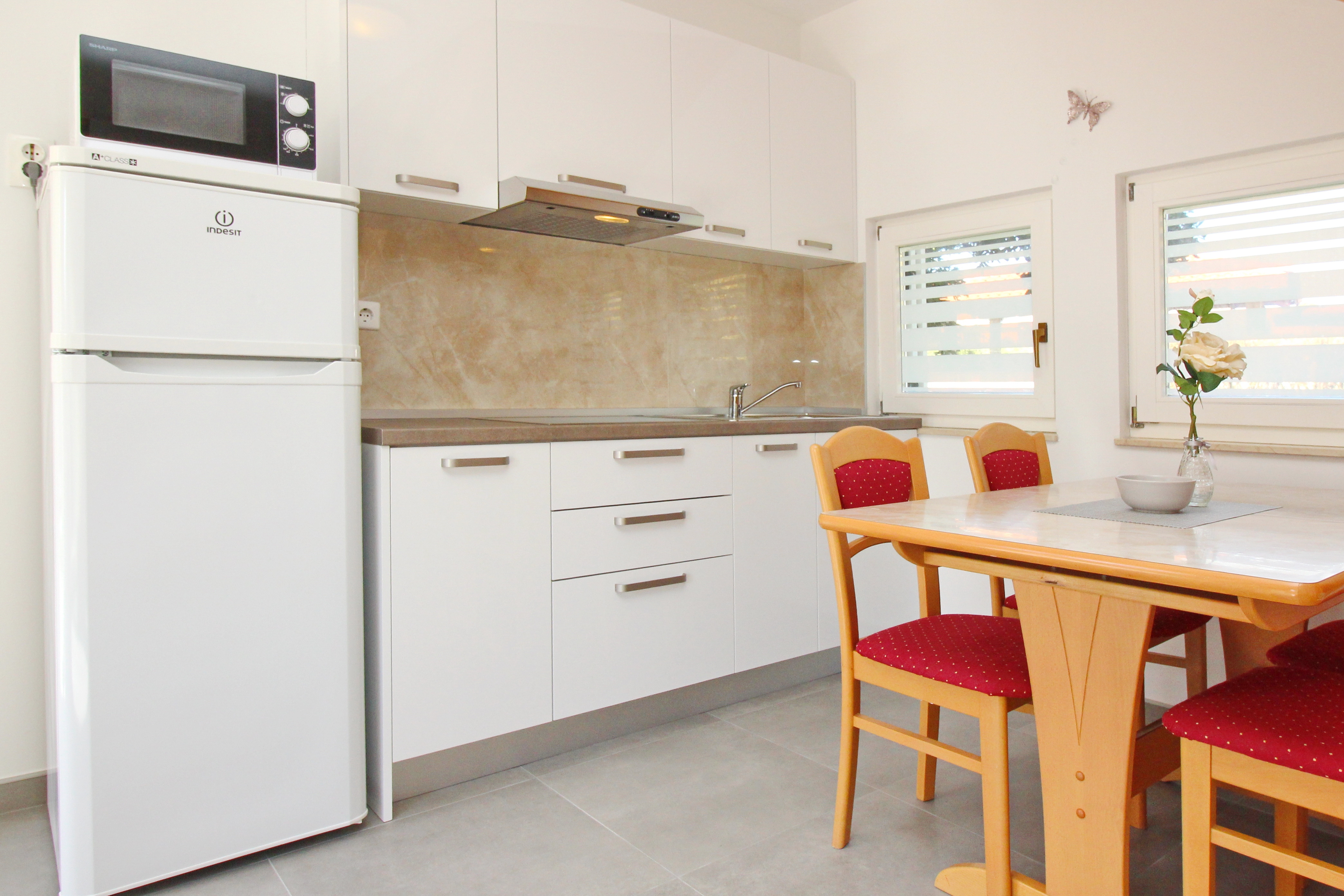 Apartment can accommodate 4 guests. Beds are situated in 1 sleeping rooms, but also in the living room, within 53m2. Guests can use a private terrace to enjoy the warm summer evenings. Food can be prepared using barbecue which is shared with other guests too. This accommodation unit welcomes pets at an additional charge. INCLUDED IN THE PRICE: final cleaning, air-conditioning, internet, laundry. OBLIGATORY ADDITIONAL COSTS: tourist tax (adults €0.93 - €2.20 nightperson, discount for children aged 12 - 17), short stay fee (surcharge depending on a number of booked nights: 30% - 1, 20% - 2, 10% - 3). OPTIONAL ADDITIONAL COSTS: pets (€15.00 per night). The availability of additional services for your chosen dates of stay, as well as their prices (if none are listed) must be checked ahead of time. Any additional services not shown in the price calculation are payable directly to the property owner and only if used by the visitor.