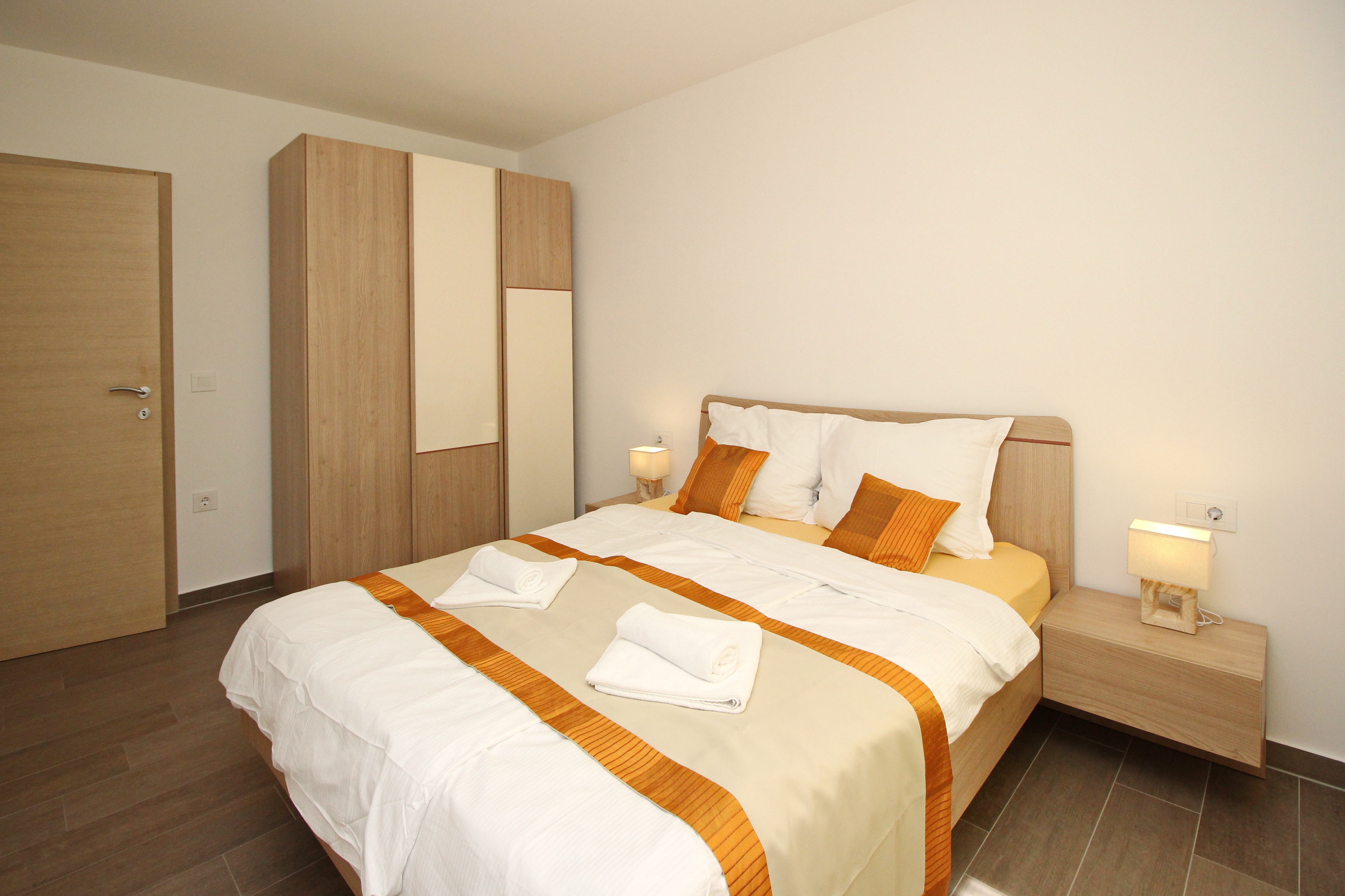 Apartment can accommodate 6 guests. Beds are situated in 2 sleeping rooms, but also in the living room, within 63m2. Guests can use a private terrace to enjoy the warm summer evenings. This accommodation unit welcomes pets at an additional charge. INCLUDED IN THE PRICE: tourist tax, final cleaning, air-conditioning, parking, internet. OBLIGATORY ADDITIONAL COSTS: short stay fee (surcharge depending on a number of booked nights: 30% - 1, 20% - 2, 10% - 3). OPTIONAL ADDITIONAL COSTS: pets (€10.00 per night). The availability of additional services for your chosen dates of stay, as well as their prices (if none are listed) must be checked ahead of time. Any additional services not shown in the price calculation are payable directly to the property owner and only if used by the visitor.