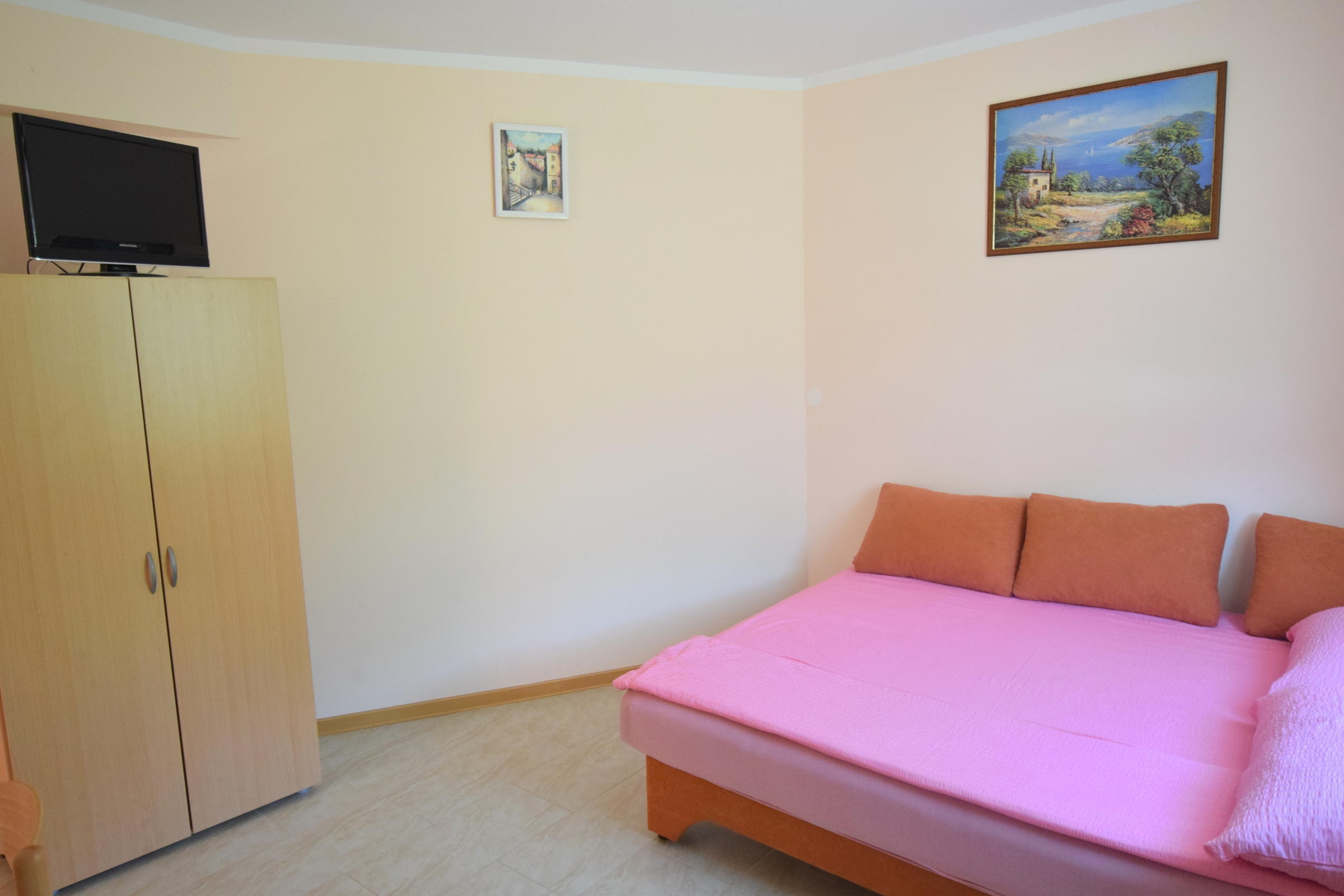 Studio flat can accommodate 2 guests. Beds are situated in living room, within 17m2. Food can be prepared using barbecue which is shared with other guests too. There is no balcony or terrace in the reserved accommodation unit. INCLUDED IN THE PRICE: tourist tax, final cleaning, air-conditioning, parking, internet. OBLIGATORY ADDITIONAL COSTS: short stay fee (surcharge depending on a number of booked nights: 30% - 1, 20% - 2, 10% - 3). The availability of additional services for your chosen dates of stay, as well as their prices (if none are listed) must be checked ahead of time. Any additional services not shown in the price calculation are payable directly to the property owner and only if used by the visitor.