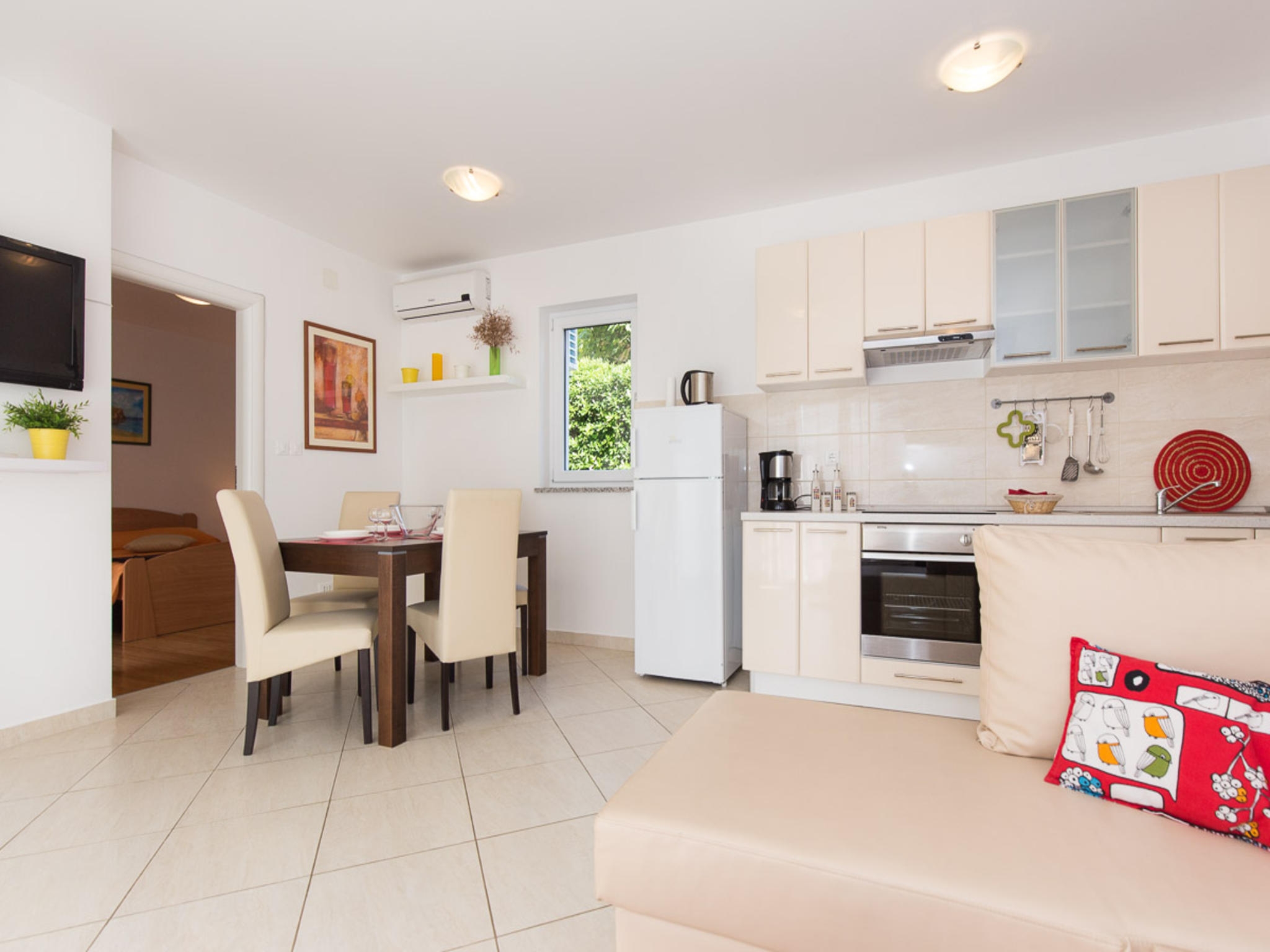 Apartment can accommodate 4 guests. Beds are situated in 2 sleeping rooms, within 65m2. Guests can use a private terrace to enjoy the warm summer evenings. This accommodation unit welcomes pets at an additional charge. INCLUDED IN THE PRICE: tourist tax, final cleaning, air-conditioning, parking, internet. OBLIGATORY ADDITIONAL COSTS: short stay fee (surcharge depending on a number of booked nights: 30% - 1, 20% - 2, 10% - 3). OPTIONAL ADDITIONAL COSTS: pets (€10.00 per night). The availability of additional services for your chosen dates of stay, as well as their prices (if none are listed) must be checked ahead of time. Any additional services not shown in the price calculation are payable directly to the property owner and only if used by the visitor.