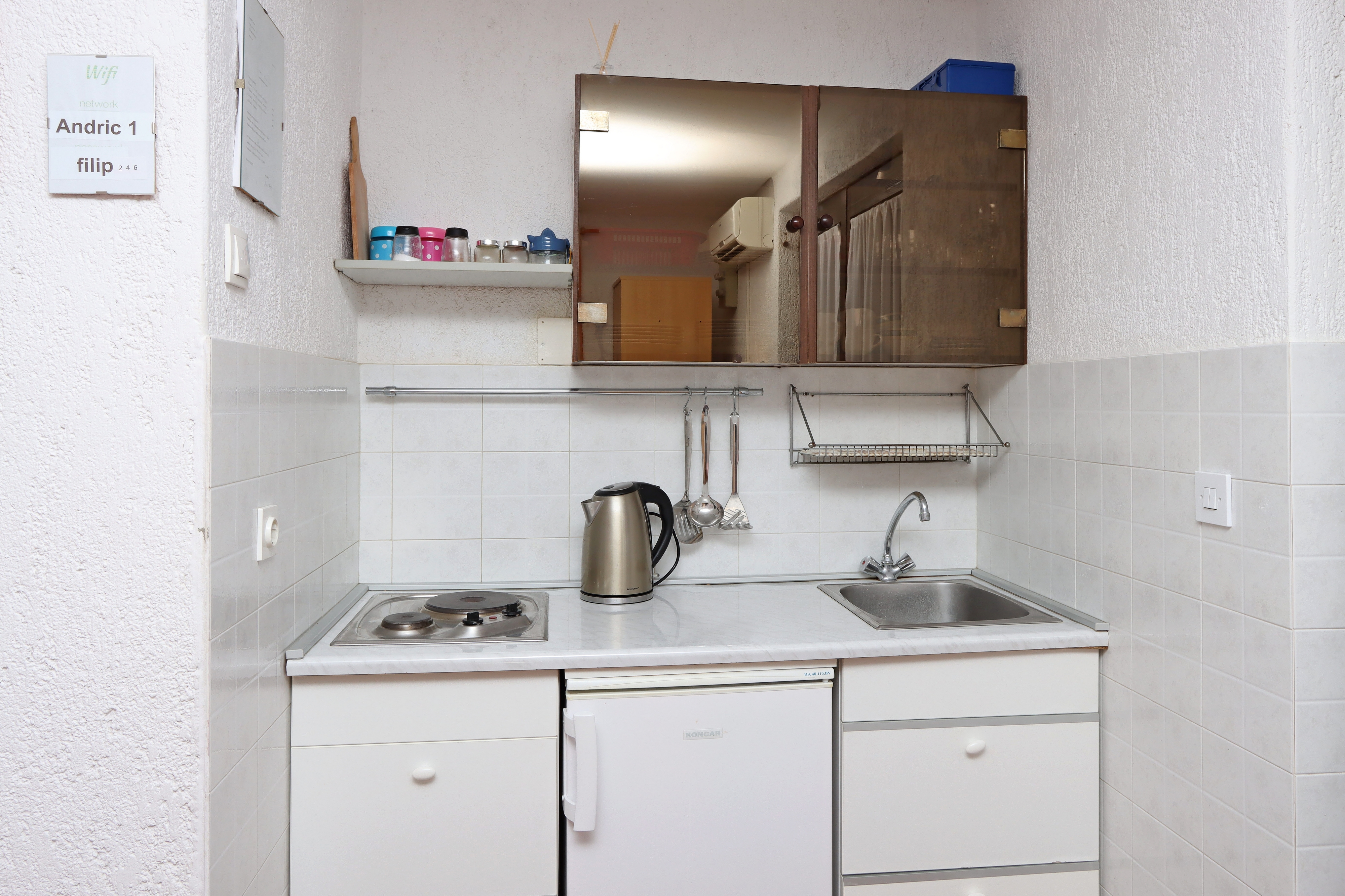 House 415 in the town of Kornić, Krk - Kvarner has accommodation units of type Apartment (2), Studio flat (2) and is 850 m away from the sea. The nearest beach to this accommodation is a pebble beach. Other guests may be found in this houses other apartments during your stay. The hosts will be in the house during your holiday. The house owner is under no obligation to accept additional persons and pets that were not stated in the reservation request and it is necessary to report them in advance.AMENITIES Courtyard (250m2, Sitting area), Parking lot (Number of parking spaces: 4, Distance from the house: In the courtyard), Barbecue: shared, WiFi Internet, Hairdryer, Baby cot LOCATION AND ACCESS Facility is situated near a local road Main road between the property and the beach Car access possible: Yes The facility is situated in relatively quiet surroundings The facility is partly surrounded by vegetation DISTANCES Sea: 850 m Beach: 850 m Center: 3.5 km Shop: 500 m Urgent medical care: 4 km Pharmacy: 3.5 km Exchange office: 650 m ATMBank machine: 2.5 km Tourist info: 3.5 km Gas station: 4 km Farmers market: 4 km