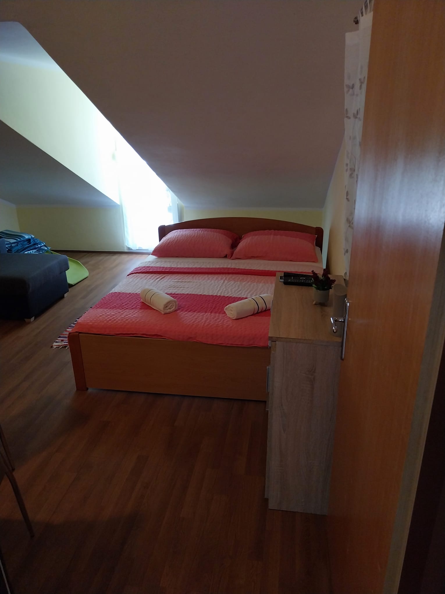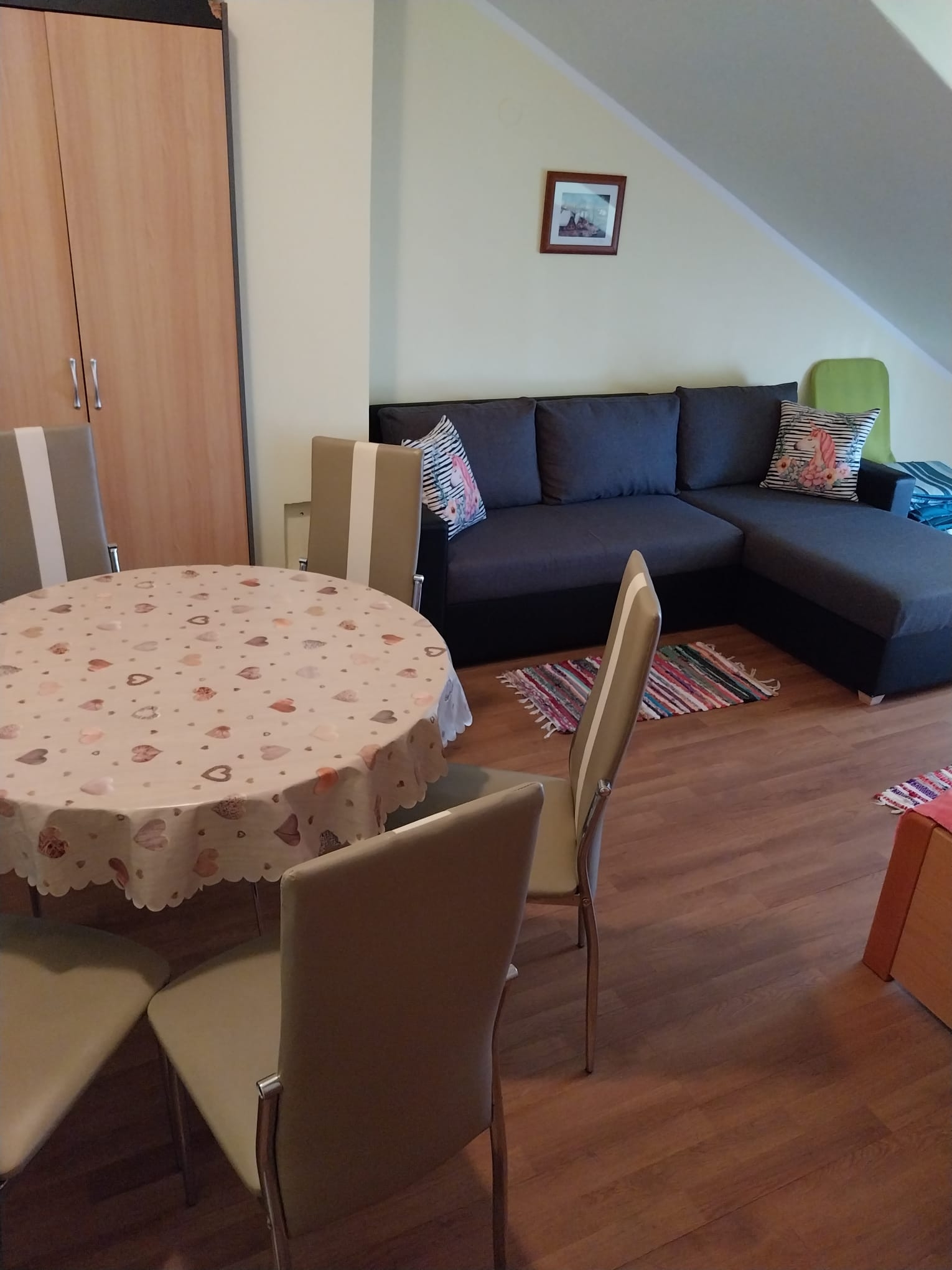 Apartment can accommodate 6 guests. Beds are situated in 1 sleeping rooms, but also in the living room, within 40m2. Guests can use a private terrace to enjoy the warm summer evenings. INCLUDED IN THE PRICE: tourist tax, final cleaning, air-conditioning, parking, internet, iron, ironing board, hairdryer. OBLIGATORY ADDITIONAL COSTS: short stay fee (surcharge depending on a number of booked nights: 30% - 1, 20% - 2, 10% - 3). OPTIONAL ADDITIONAL COSTS: laundry (€7.00 washing). The availability of additional services for your chosen dates of stay, as well as their prices (if none are listed) must be checked ahead of time. Any additional services not shown in the price calculation are payable directly to the property owner and only if used by the visitor. Discounts to the base price: free day 14=13 (for reservations of 14 or more days you get one free day for the stay until 31122026).