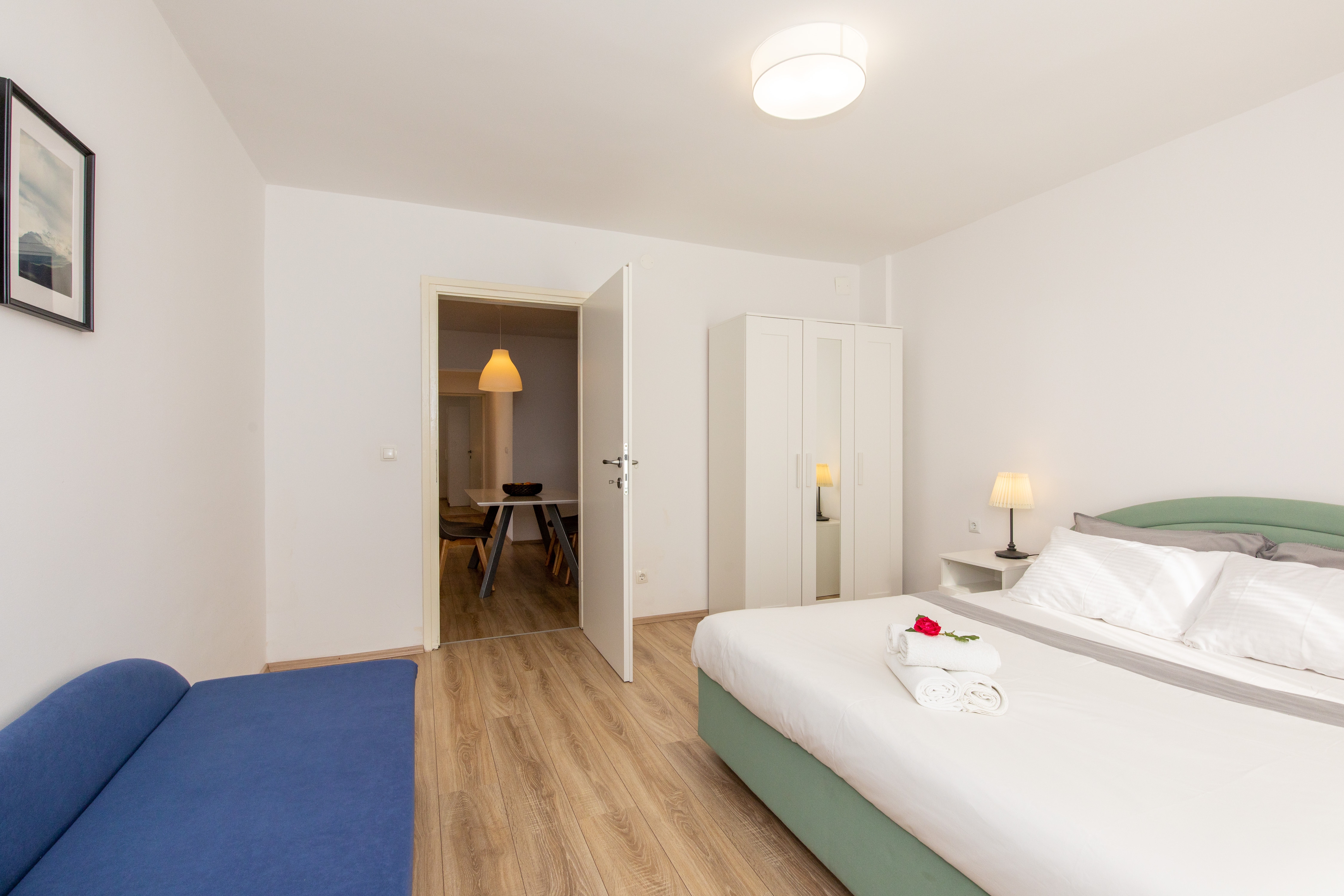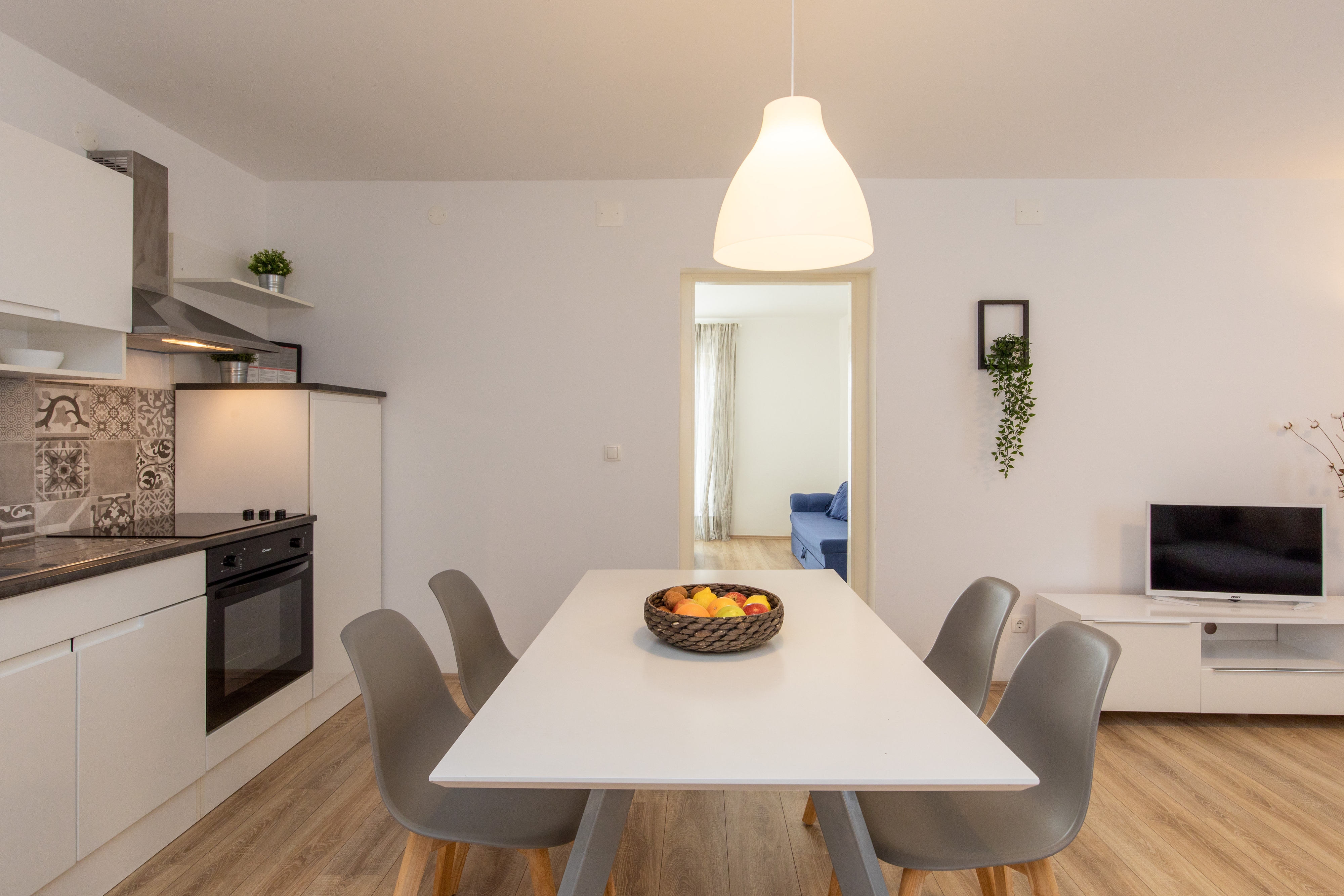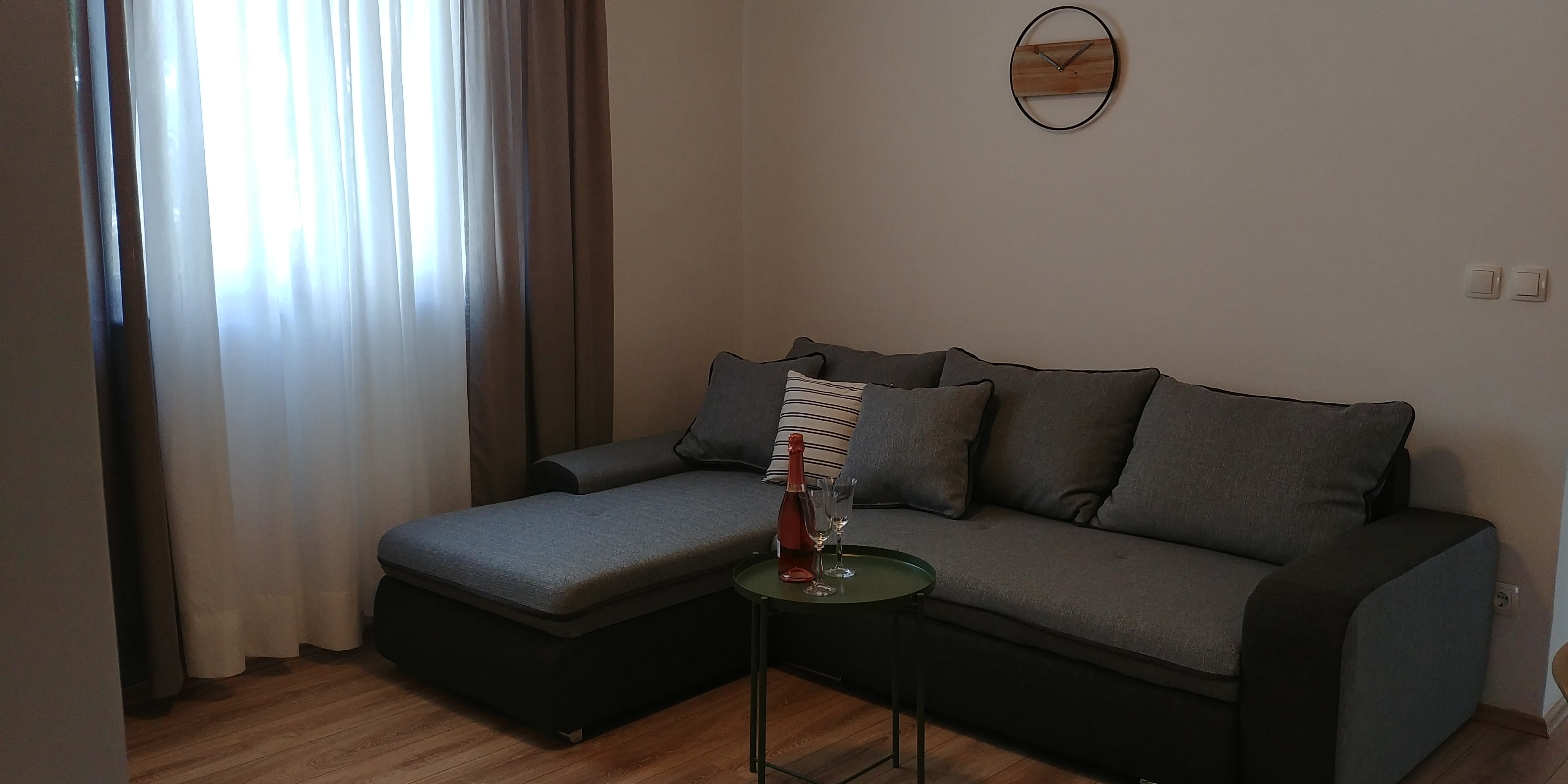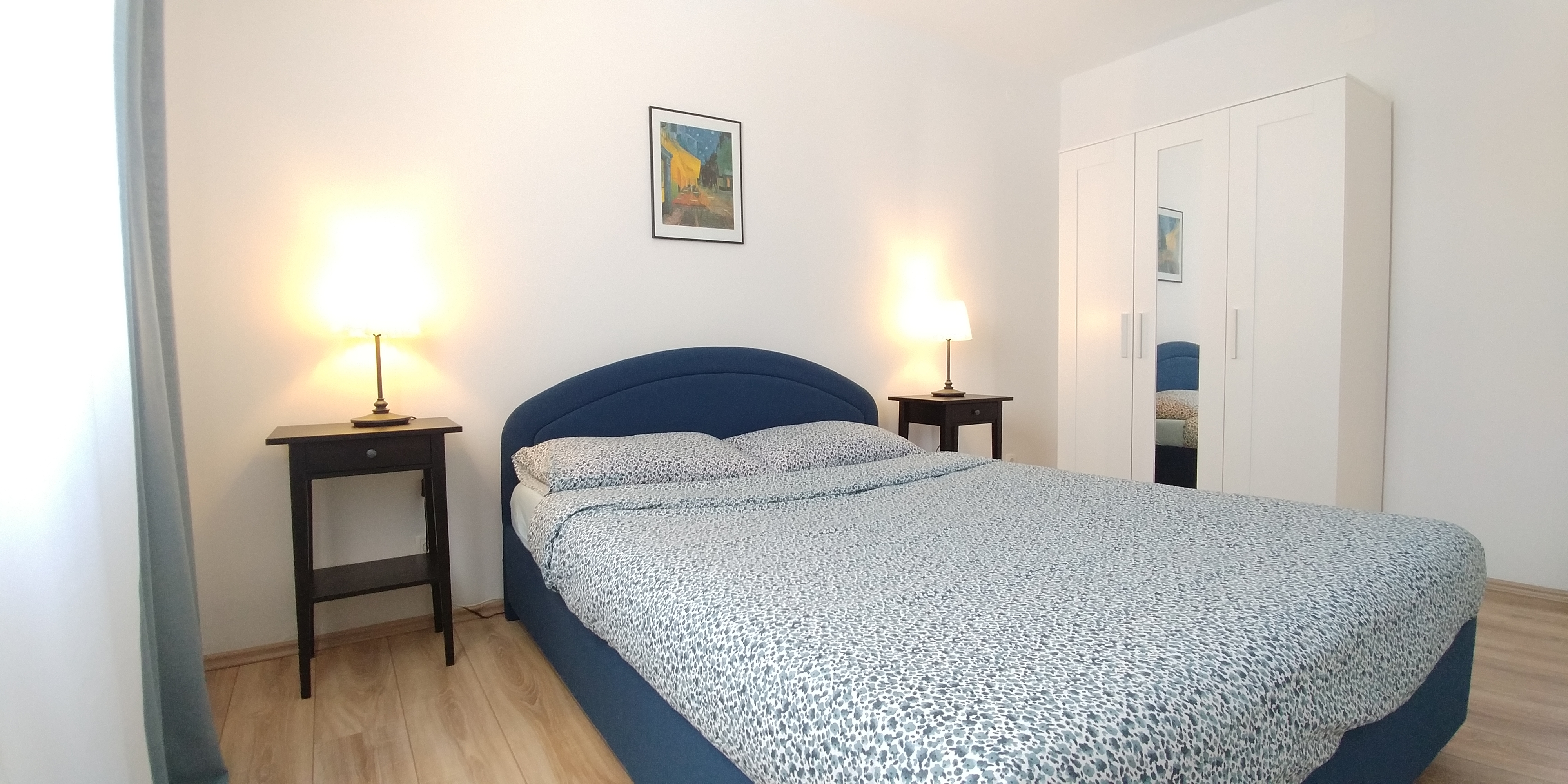 Apartment can accommodate 4 guests. Beds are situated in 2 sleeping rooms, within 52m2. Guests can use a private terrace to enjoy the warm summer evenings. Food can be prepared using barbecue which is shared with other guests too. INCLUDED IN THE PRICE: tourist tax, final cleaning, air-conditioning, parking, internet. OBLIGATORY ADDITIONAL COSTS: short stay fee (surcharge depending on a number of booked nights: 30% - 1, 20% - 2, 10% - 3). The availability of additional services for your chosen dates of stay, as well as their prices (if none are listed) must be checked ahead of time. Any additional services not shown in the price calculation are payable directly to the property owner and only if used by the visitor.