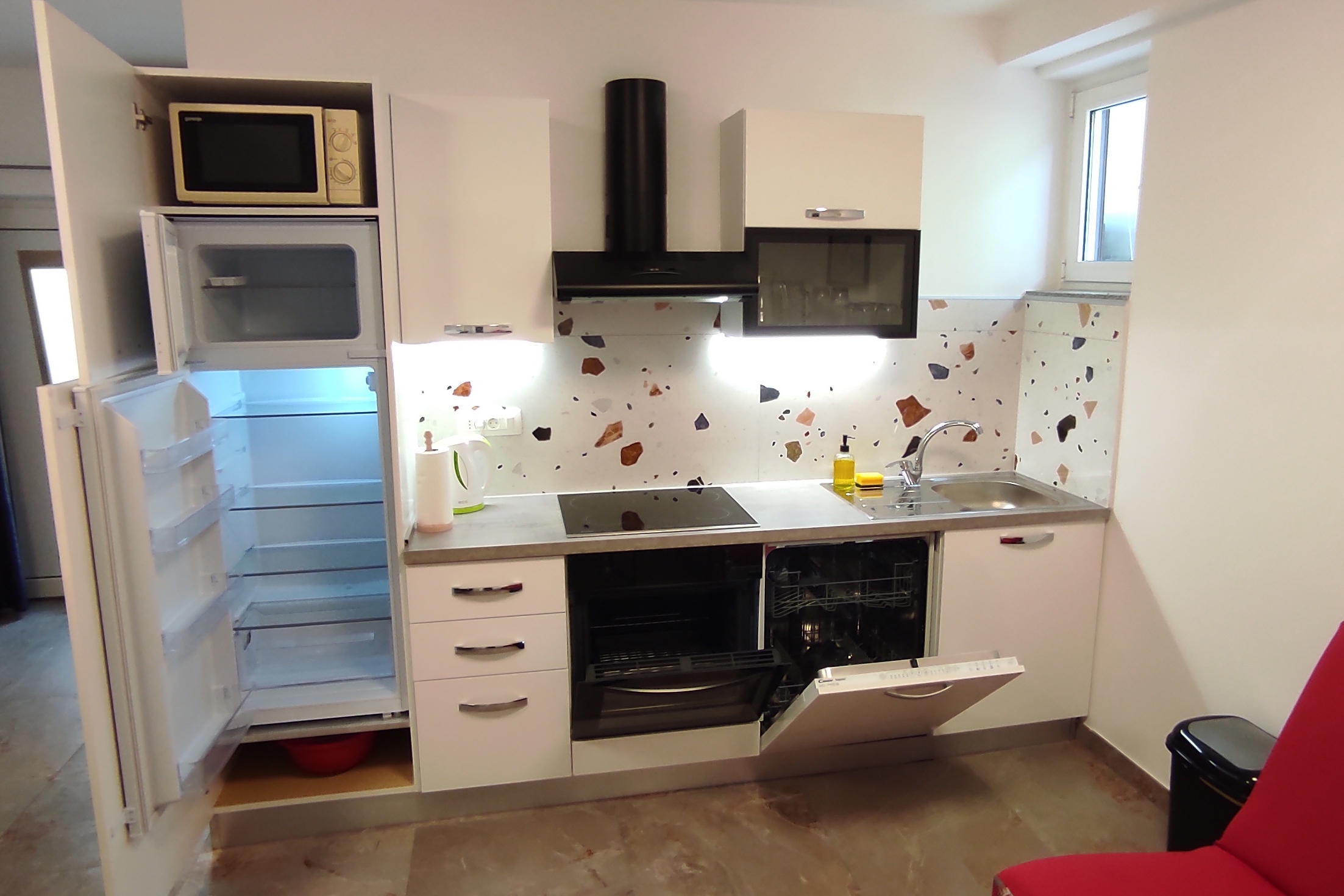 Apartment can accommodate 6 guests. Beds are situated in 2 sleeping rooms, but also in the living room, within 40m2. Guests can use a private terrace to enjoy the warm summer evenings. Food can be prepared using barbecue which is shared with other guests too. This accommodation unit welcomes pets at an additional charge. INCLUDED IN THE PRICE: tourist tax, final cleaning, air-conditioning, parking, internet, laundry. OBLIGATORY ADDITIONAL COSTS: short stay fee (surcharge depending on a number of booked nights: 30% - 1, 20% - 2, 10% - 3). OPTIONAL ADDITIONAL COSTS: pets (€5.00 per night). The availability of additional services for your chosen dates of stay, as well as their prices (if none are listed) must be checked ahead of time. Any additional services not shown in the price calculation are payable directly to the property owner and only if used by the visitor. Discounts to the base price: free day 14=13 (for reservations of 14 or more days you get one free day for the stay until 31122026).