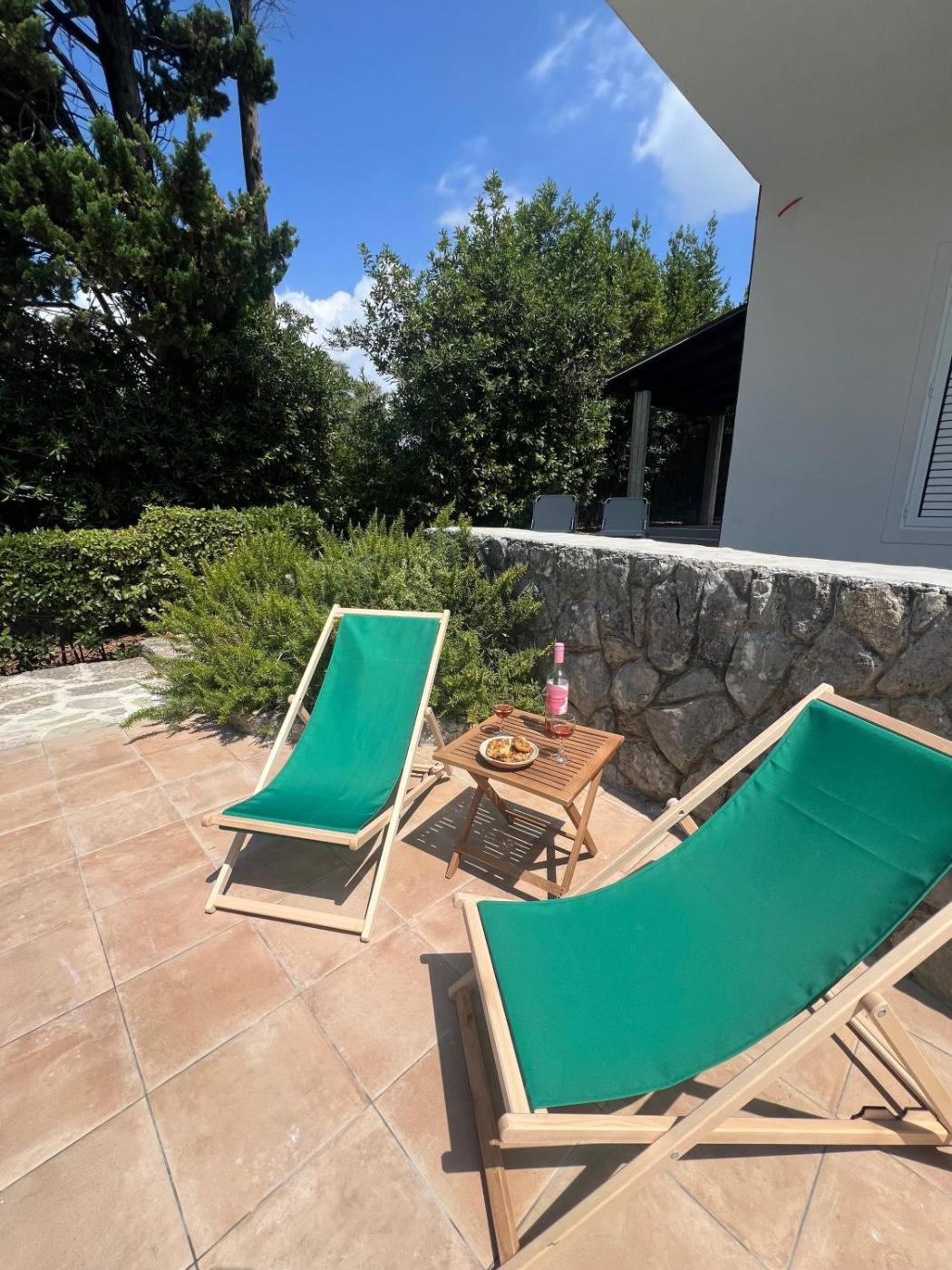 The apartment has an outdoor fireplace and a picnic area.