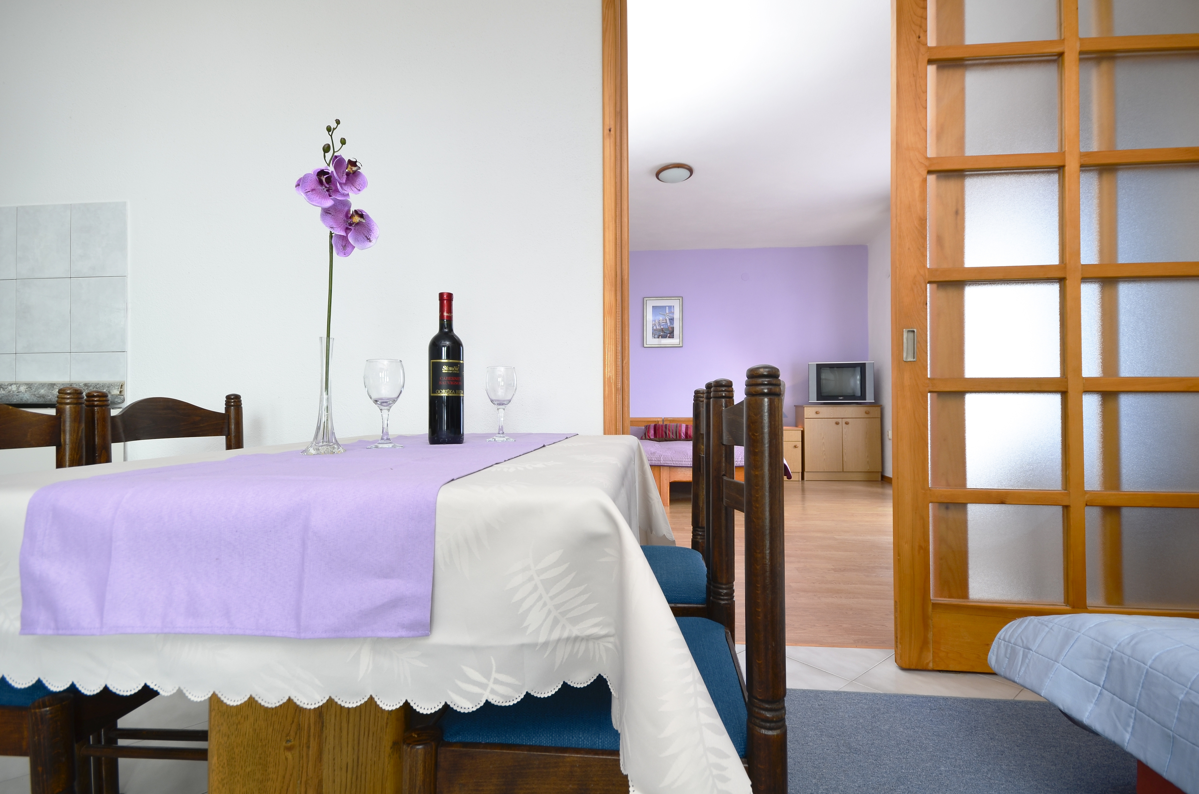 Apartment can accommodate 4 guests. Beds are situated in 1 sleeping rooms, but also in the dining room, within 37m2. Guests can use a private terrace to enjoy the warm summer evenings. The apartment offers the sea view. Food can be prepared using barbecue which is shared with other guests too. Shared pool is on disposal during stay. INCLUDED IN THE PRICE: tourist tax, final cleaning, air-conditioning, pool, parking, internet, baby cot, iron, ironing board, hairdryer. OPTIONAL ADDITIONAL COSTS: laundry (€3.00 washing). The availability of additional services for your chosen dates of stay, as well as their prices (if none are listed) must be checked ahead of time. Any additional services not shown in the price calculation are payable directly to the property owner and only if used by the visitor.