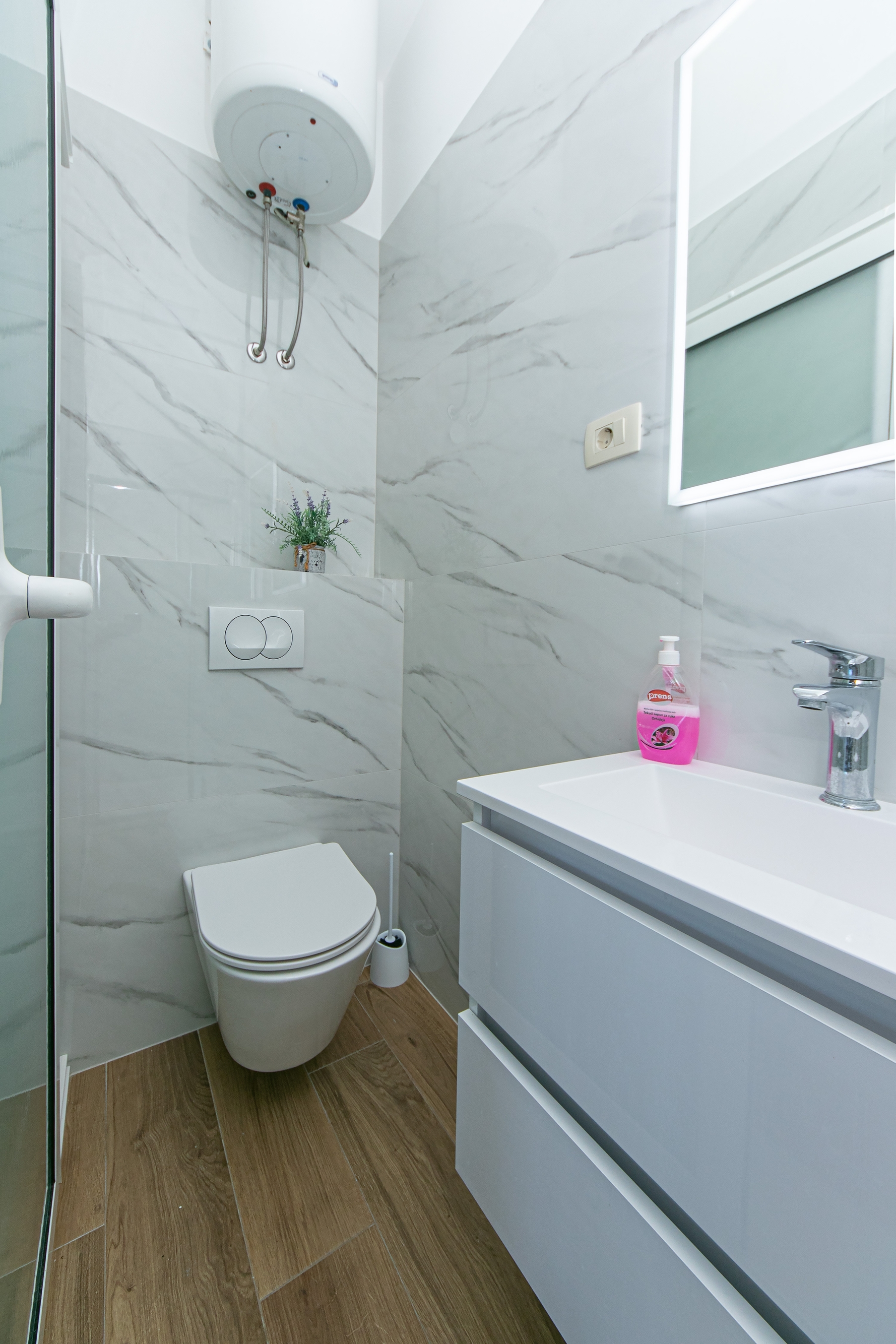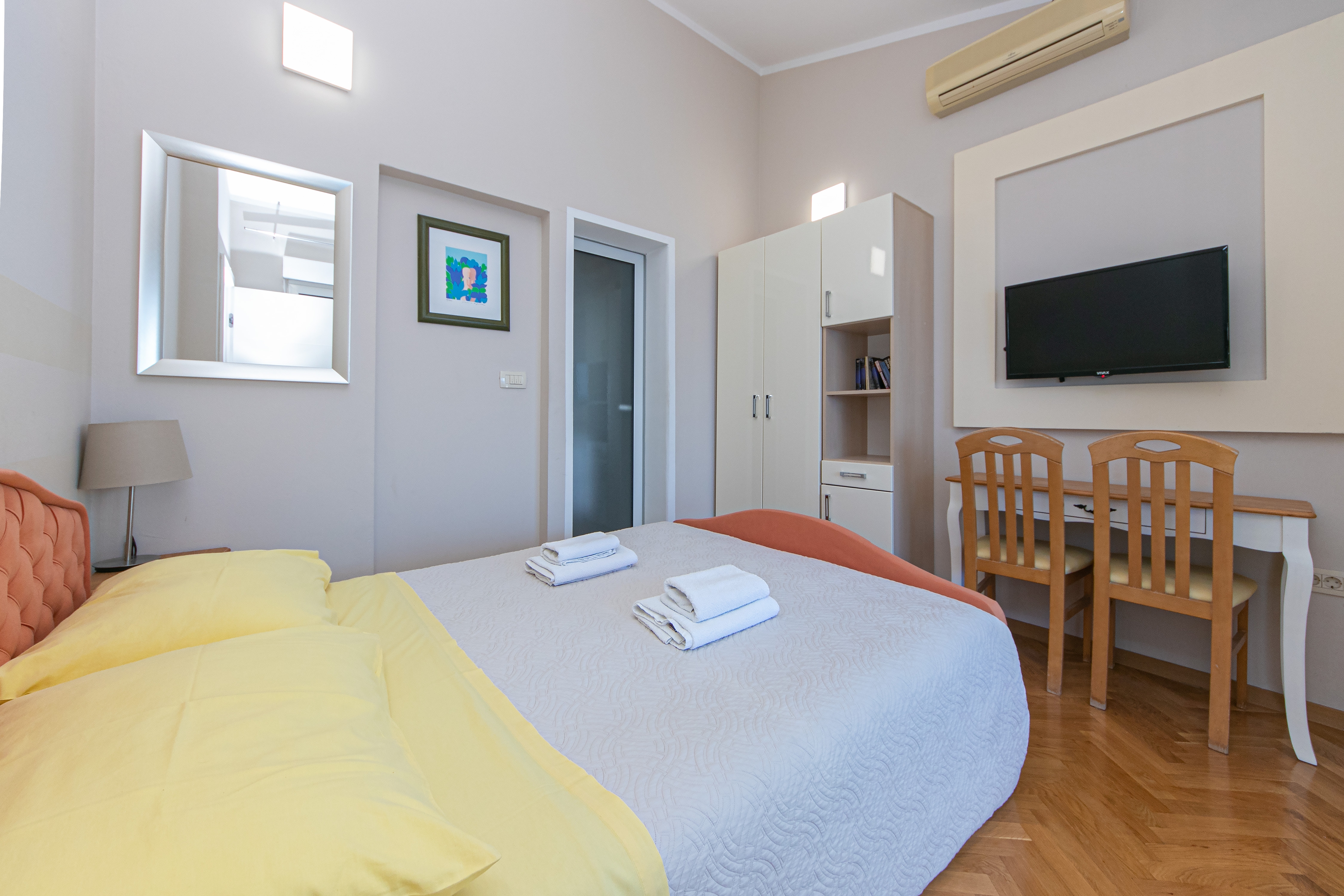 Apartment can accommodate 2 guests. Beds are situated in 1 sleeping rooms, within 17m2. Guests can use a private terrace to enjoy the warm summer evenings. The apartment offers the sea view. INCLUDED IN THE PRICE: tourist tax, final cleaning, air-conditioning, parking, internet. OBLIGATORY ADDITIONAL COSTS: short stay fee (surcharge depending on a number of booked nights: 30% - 1, 20% - 2, 10% - 3). The availability of additional services for your chosen dates of stay, as well as their prices (if none are listed) must be checked ahead of time. Any additional services not shown in the price calculation are payable directly to the property owner and only if used by the visitor.