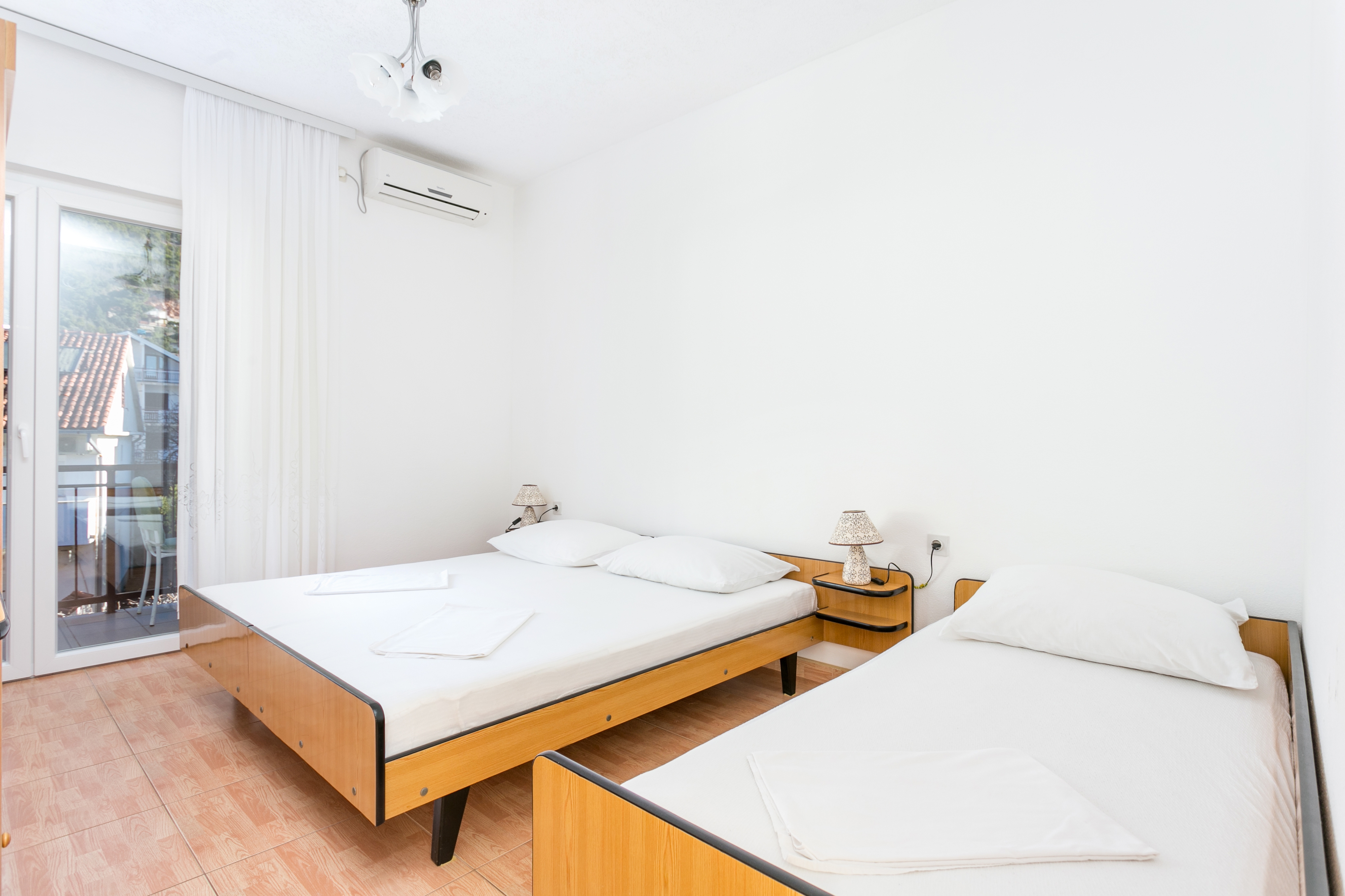 Apartment can accommodate 3 guests. Beds are situated in 1 sleeping rooms, within 24m2. Guests can use a private balcony to enjoy the warm summer evenings. Food can be prepared using barbecue which is shared with other guests too. Reserved accommodation unit has a shared terrace. INCLUDED IN THE PRICE: tourist tax, final cleaning, parking, internet, iron, ironing board, hairdryer. OBLIGATORY ADDITIONAL COSTS: short stay fee (surcharge depending on a number of booked nights: 30% - 1, 20% - 2, 10% - 3). OPTIONAL ADDITIONAL COSTS: air-conditioning (€5.00 per night), laundry (€8.00 washing). The availability of additional services for your chosen dates of stay, as well as their prices (if none are listed) must be checked ahead of time. Any additional services not shown in the price calculation are payable directly to the property owner and only if used by the visitor.