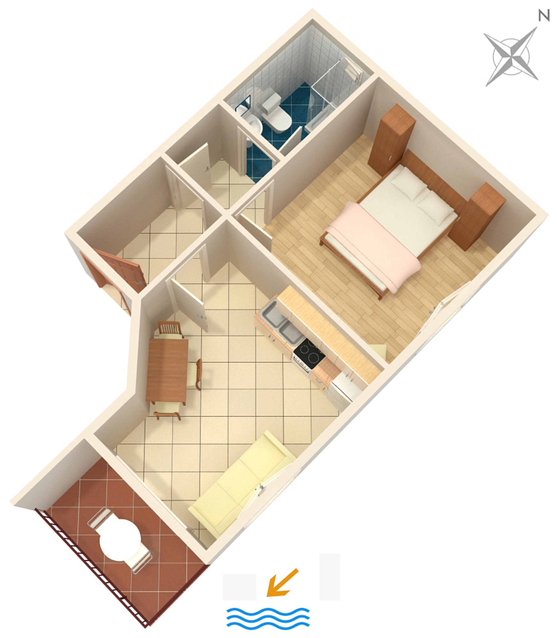 Apartment can accommodate 3 guests. Beds are situated in 1 sleeping rooms, but also in the dining room, within 24m2. Guests can use a private balcony to enjoy the warm summer evenings. The apartment offers the sea view. Food can be prepared using barbecue which is shared with other guests too. INCLUDED IN THE PRICE: tourist tax, final cleaning, air-conditioning, parking, internet, laundry, baby cot, iron, hairdryer. The availability of additional services for your chosen dates of stay, as well as their prices (if none are listed) must be checked ahead of time. Any additional services not shown in the price calculation are payable directly to the property owner and only if used by the visitor.