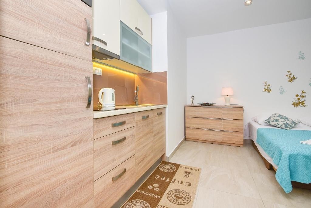 Apartment can accommodate 4 guests. Beds are situated in 1 sleeping rooms, but also in the living room, within 37m2. Guests can use a private terrace to enjoy the warm summer evenings. The apartment offers the sea view. This accommodation unit welcomes pets at no additional costs. INCLUDED IN THE PRICE: tourist tax, final cleaning, air-conditioning, parking, internet, laundry, pets, baby cot, iron, ironing board, hairdryer. OBLIGATORY ADDITIONAL COSTS: short stay fee (surcharge depending on a number of booked nights: 30% - 1, 20% - 2, 10% - 3). The availability of additional services for your chosen dates of stay, as well as their prices (if none are listed) must be checked ahead of time. Any additional services not shown in the price calculation are payable directly to the property owner and only if used by the visitor.