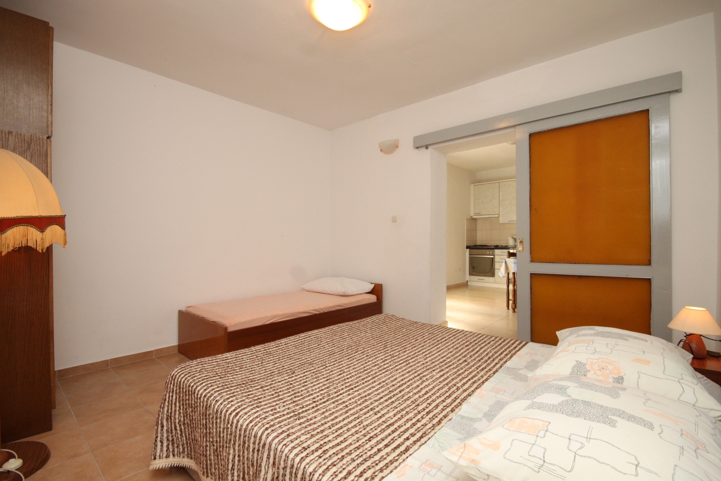Apartment can accommodate 4 guests. Beds are situated in 1 sleeping rooms, but also in the living room, within 37m2. Guests can use a private terrace to enjoy the warm summer evenings. The apartment offers the sea view. Food can be prepared using barbecue which is shared with other guests too. INCLUDED IN THE PRICE: tourist tax, final cleaning, air-conditioning, parking, internet, iron. OBLIGATORY ADDITIONAL COSTS: short stay fee (surcharge depending on a number of booked nights: 30% - 1, 20% - 2, 10% - 3). The availability of additional services for your chosen dates of stay, as well as their prices (if none are listed) must be checked ahead of time. Any additional services not shown in the price calculation are payable directly to the property owner and only if used by the visitor.