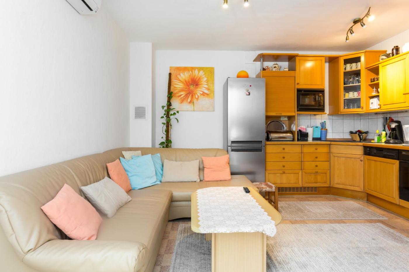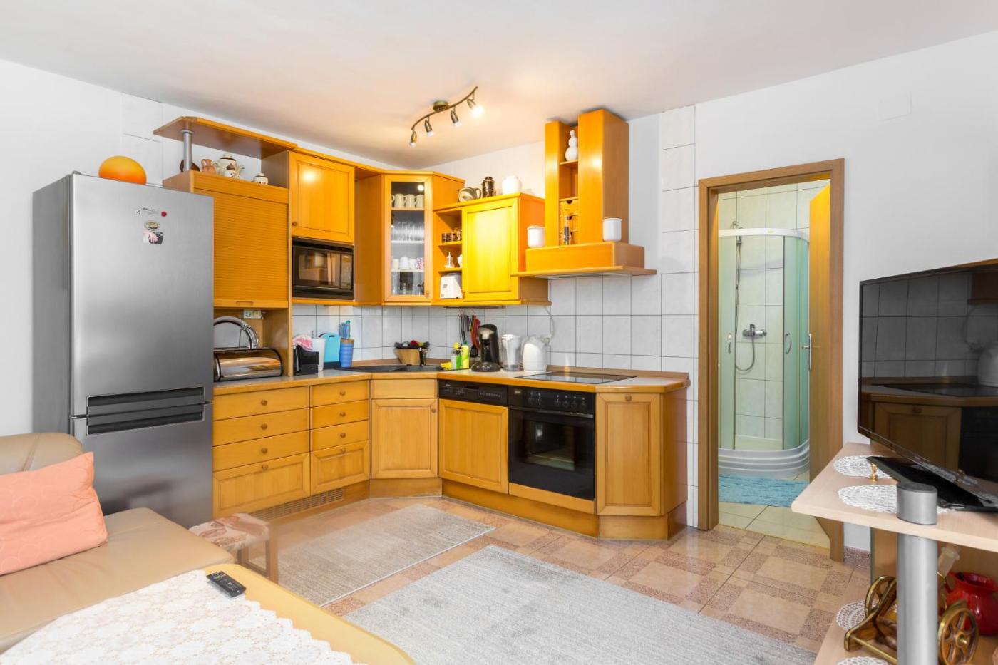 One-Bedroom Apartment. Featuring a private entrance, this air-conditioned apartment consists of 1 living room, 1 separate bedroom and 1 bathroom with a shower and a bidet. Guests will find a stovetop, a refrigerator, a dishwasher and kitchenware in the fully equipped kitchen. The apartment also offers a barbecue. Boasting a terrace with ancourtyard view, this apartment also provides a washing machine and a flat-screen TV with satellite channels. The unit offers 2 beds.