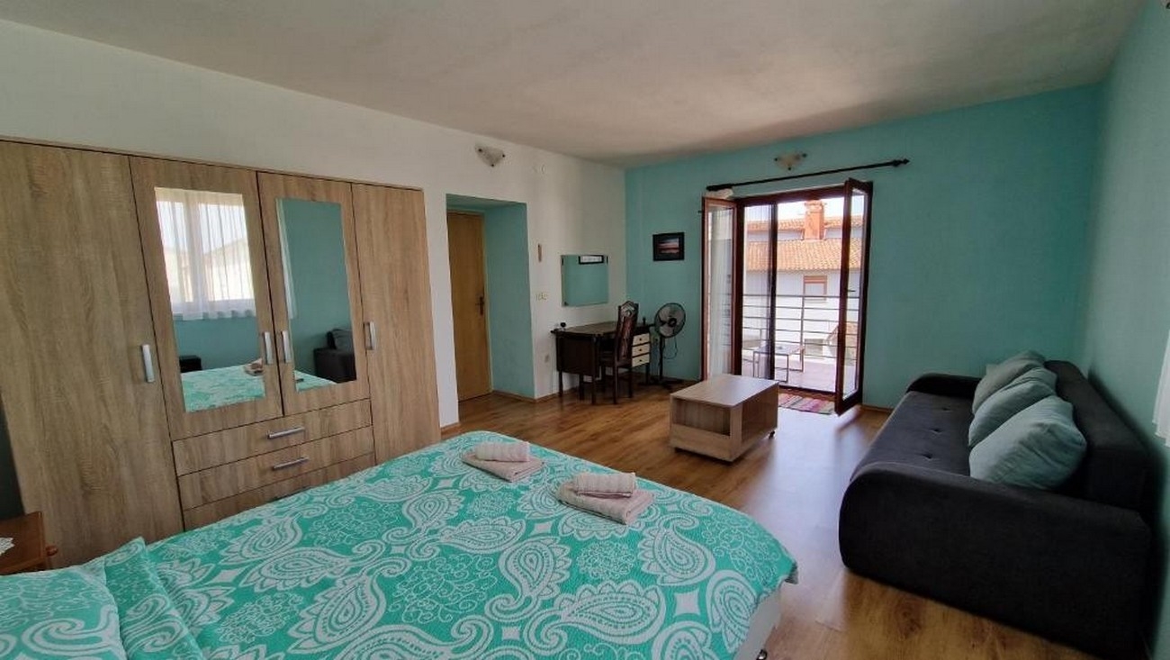 House 24398 in the town of Medulin, Medulin - Istria has accommodation units of type Apartment (2), Studio flat (1) and is 500 m away from the sea. The nearest beach to this accommodation is a pebble beach. Other guests will most likely be staying in the houses other apartments. Your hosts will be staying in the house for the duration of your stay. The house owner is under no obligation to accept additional persons and pets that were not stated in the reservation request and it is necessary to report them in advance.AMENITIES Courtyard (15m2, Sitting area), Parking lot (Number of parking spaces: 5, Distance from the house: In the courtyard), Barbecue: shared, WiFi Internet, Hairdryer LOCATION AND ACCESS Facility is situated near a local road Local road between the property and the beach Car access possible: Yes, Macadam road: 300 m The facility is situated in relatively quiet surroundings DISTANCES Sea: 500 m Beach: 500 m Center: 1.1 km Shop: 600 m Pharmacy: 1.1 km Exchange office: 600 m ATMBank machine: 500 m Tourist info: 550 m Airport: 4.5 km Gas station: 1.1 km