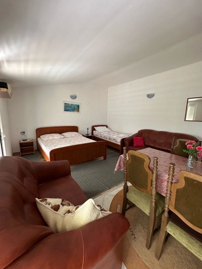 Studio flat can accommodate 3 guests. Beds are situated in 1 sleeping rooms, within 30m2. Guests can use a private terrace to enjoy the warm summer evenings. The studio offers the sea view. Food can be prepared using barbecue which is shared with other guests too. INCLUDED IN THE PRICE: tourist tax, final cleaning, air-conditioning, parking, internet, baby cot, iron, ironing board, hairdryer. OPTIONAL ADDITIONAL COSTS: laundry (€6.00 washing). The availability of additional services for your chosen dates of stay, as well as their prices (if none are listed) must be checked ahead of time. Any additional services not shown in the price calculation are payable directly to the property owner and only if used by the visitor.