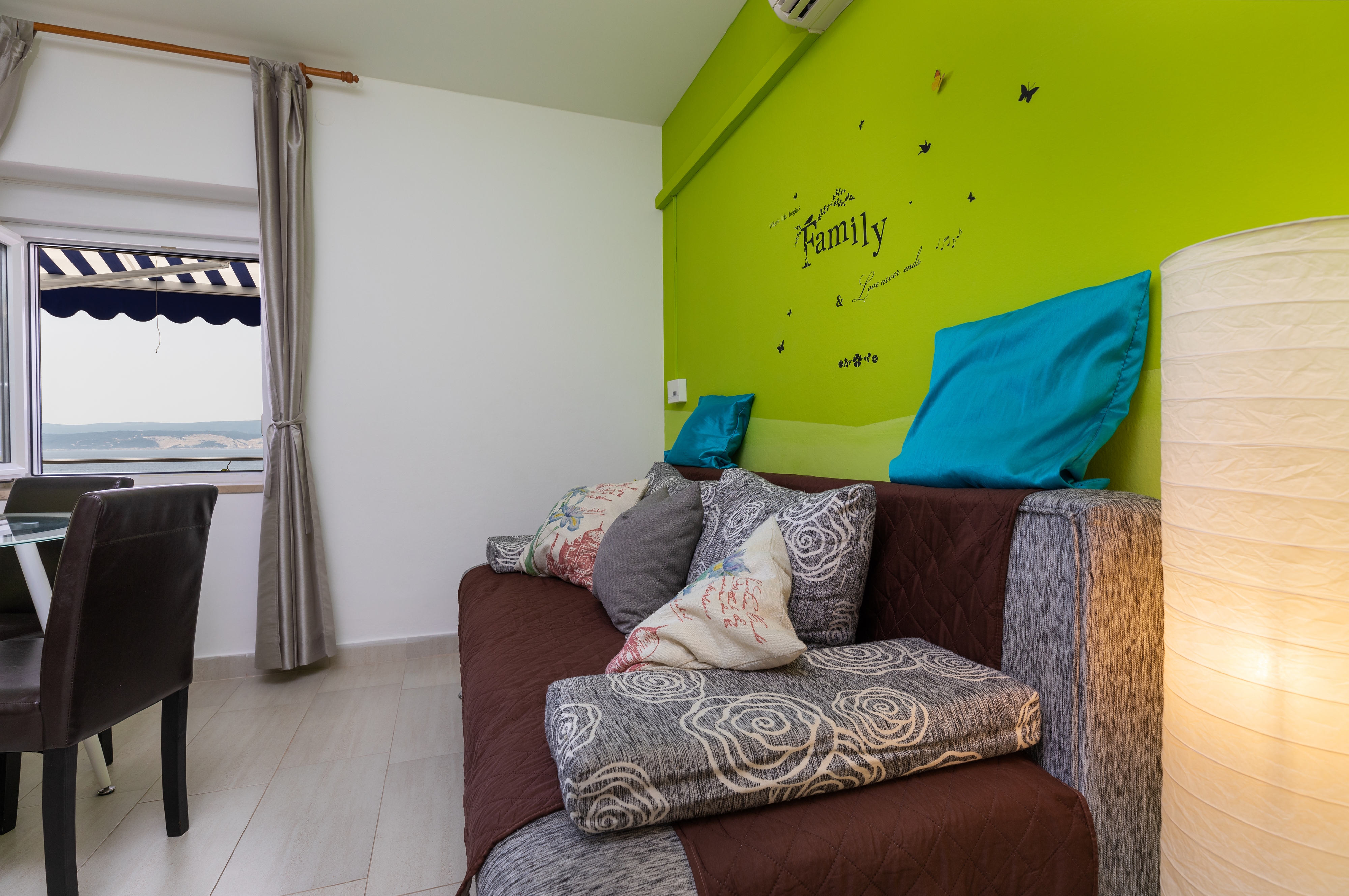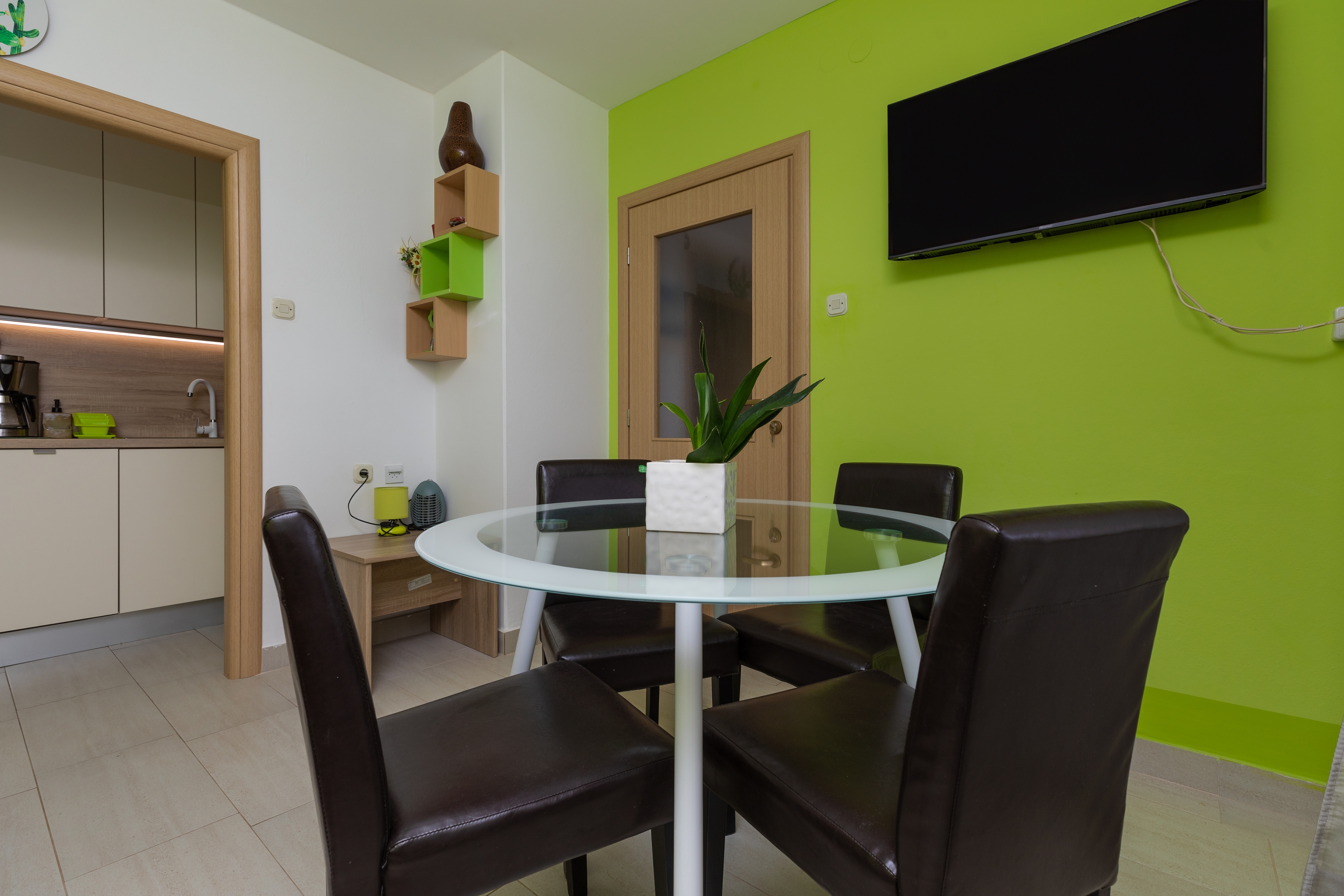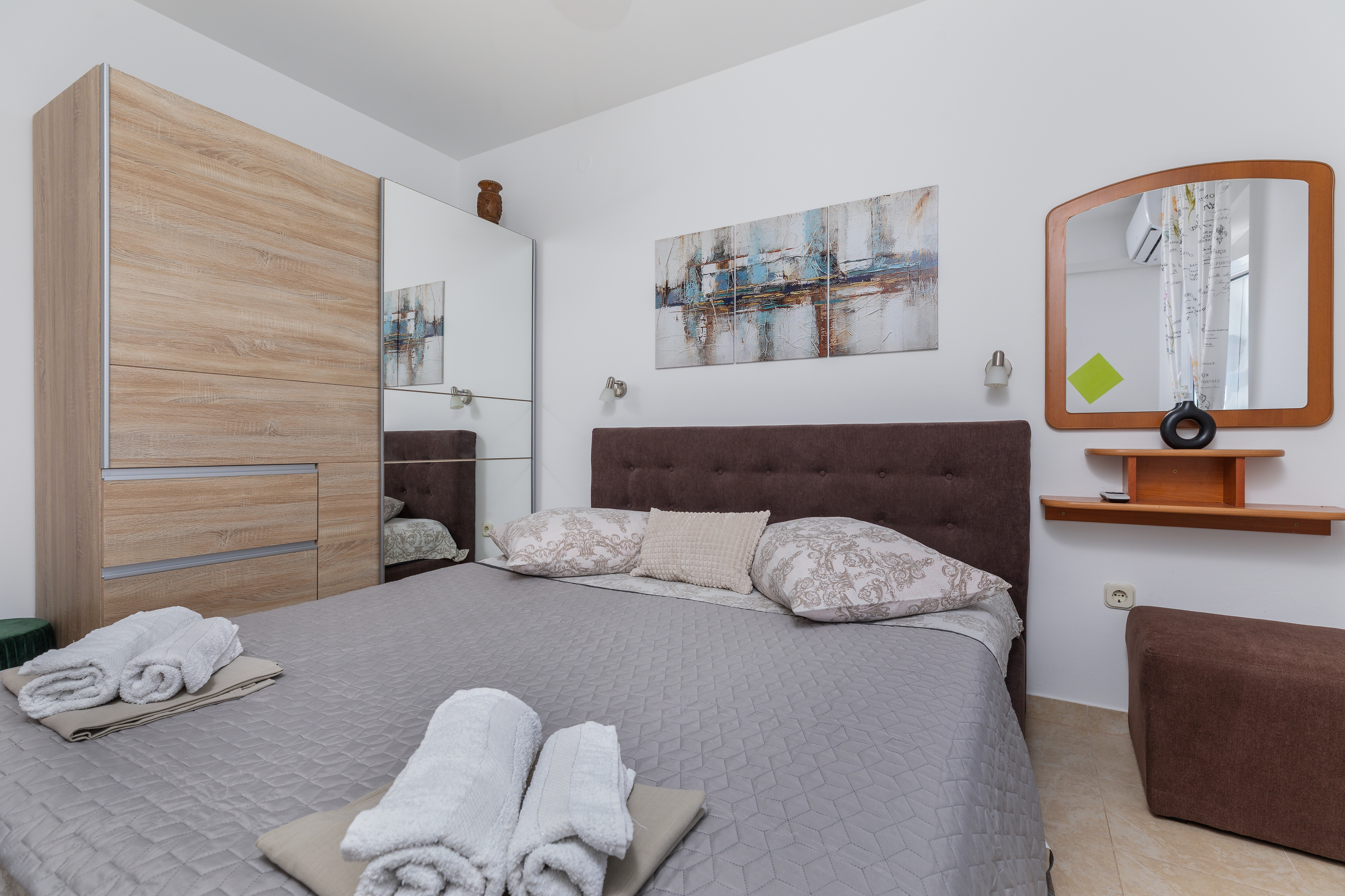 Apartment can accommodate 4 guests. Beds are situated in 2 sleeping rooms, within 35m2. Guests can use a private terrace to enjoy the warm summer evenings. The apartment offers the sea view. Food can be prepared using barbecue which is shared with other guests too. Shared pool is on disposal during stay. INCLUDED IN THE PRICE: tourist tax, final cleaning, air-conditioning, pool, parking, internet, iron, hairdryer. OBLIGATORY ADDITIONAL COSTS: short stay fee (surcharge depending on a number of booked nights: 30% - 1, 20% - 2, 10% - 3). OPTIONAL ADDITIONAL COSTS: additional bed (€10.00 per night). The availability of additional services for your chosen dates of stay, as well as their prices (if none are listed) must be checked ahead of time. Any additional services not shown in the price calculation are payable directly to the property owner and only if used by the visitor.