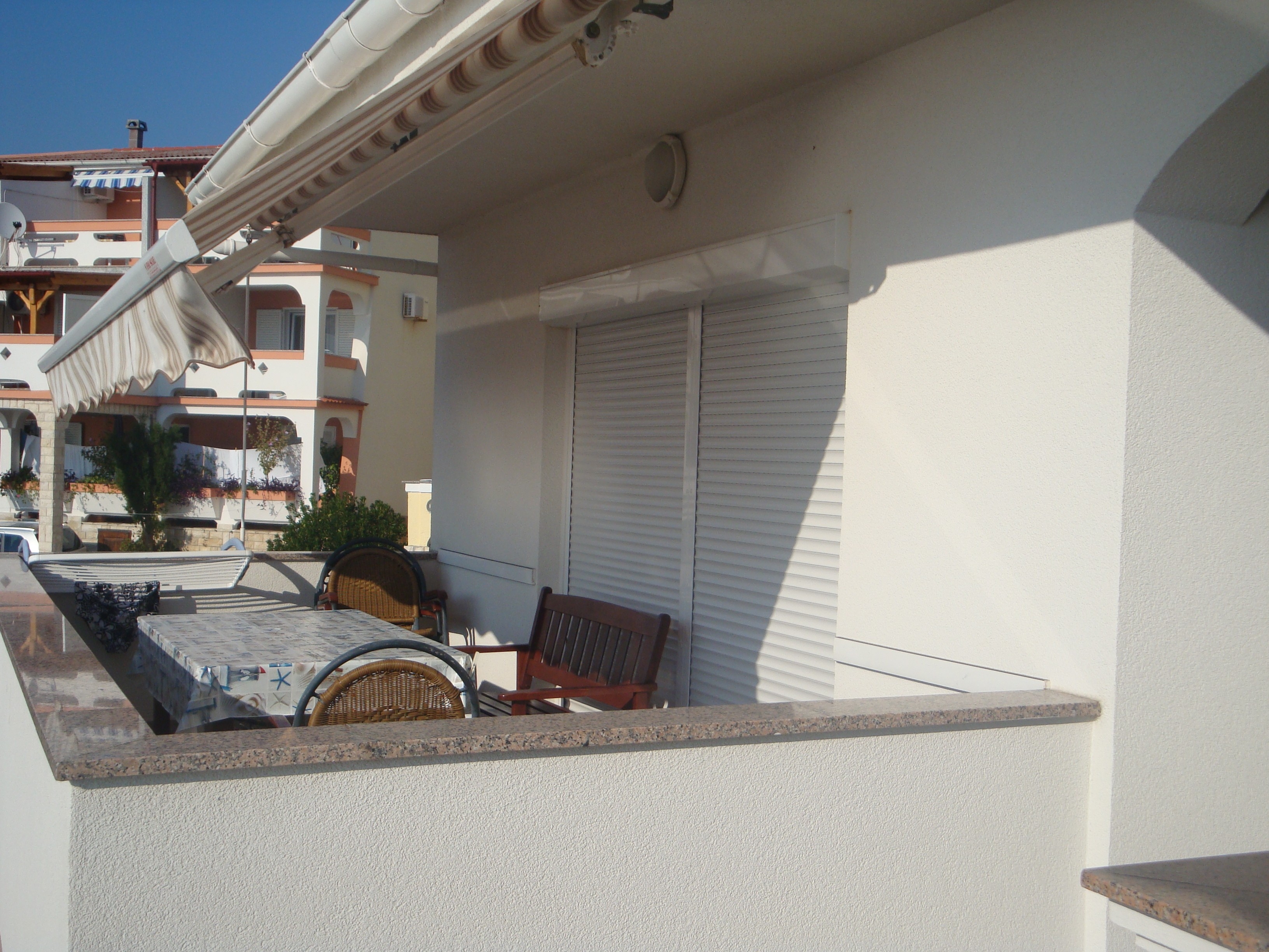 Apartment can accommodate 4 guests. Beds are situated in 1 sleeping rooms, but also in the living room, within 39m2. Guests can use a private terrace to enjoy the warm summer evenings. The apartment offers the sea view. Food can be prepared using barbecue which is shared with other guests too. INCLUDED IN THE PRICE: tourist tax, final cleaning, air-conditioning, parking, internet. OPTIONAL ADDITIONAL COSTS: additional bed (€10.00 per night). The availability of additional services for your chosen dates of stay, as well as their prices (if none are listed) must be checked ahead of time. Any additional services not shown in the price calculation are payable directly to the property owner and only if used by the visitor.