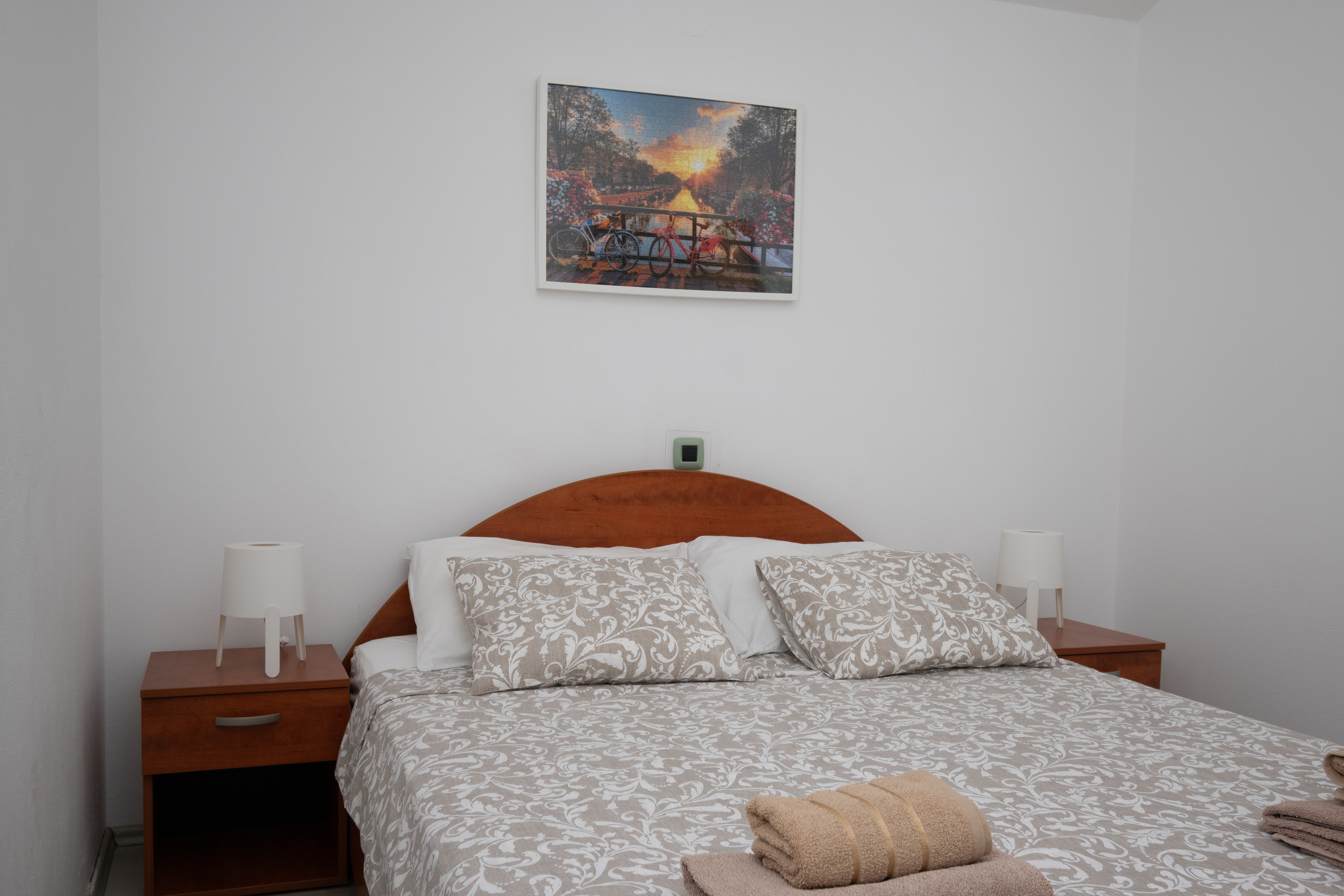 Apartment can accommodate 4 guests. Beds are situated in 2 sleeping rooms, within 34m2. Guests can use a private terrace to enjoy the warm summer evenings. Food can be prepared using barbecue which is shared with other guests too. This accommodation unit welcomes pets at no additional costs. INCLUDED IN THE PRICE: tourist tax, final cleaning, air-conditioning, parking, internet, pets. OBLIGATORY ADDITIONAL COSTS: short stay fee (surcharge depending on a number of booked nights: 30% - 1, 20% - 2, 10% - 3). The availability of additional services for your chosen dates of stay, as well as their prices (if none are listed) must be checked ahead of time. Any additional services not shown in the price calculation are payable directly to the property owner and only if used by the visitor.