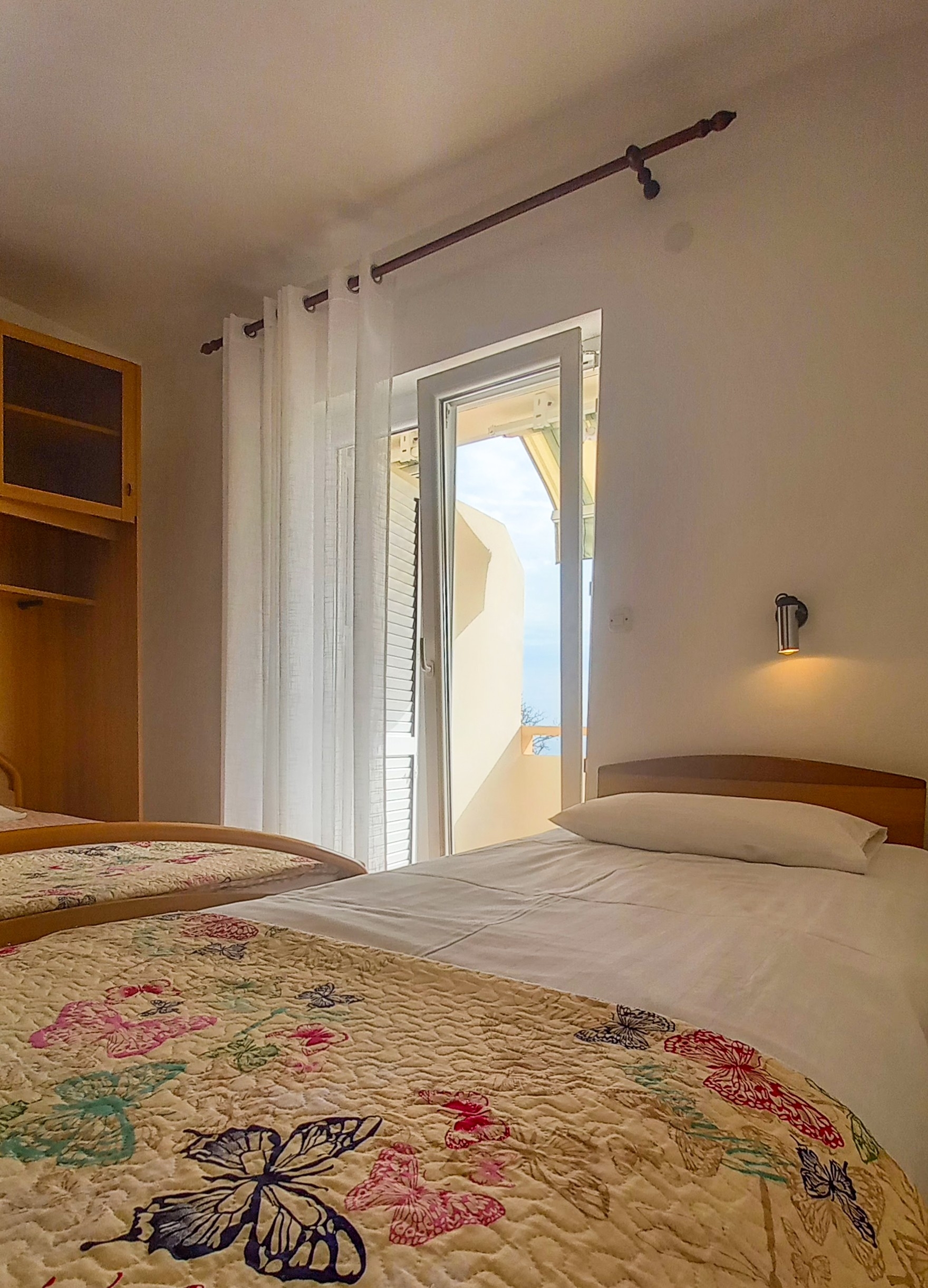 Apartment can accommodate 6 guests. Beds are situated in 2 sleeping rooms, within 53m2. Guests can use a private terrace to enjoy the warm summer evenings. The apartment offers the sea view. Food can be prepared using barbecue which is shared with other guests too. INCLUDED IN THE PRICE: tourist tax, final cleaning, air-conditioning, parking, internet, boat mooring. The availability of additional services for your chosen dates of stay, as well as their prices (if none are listed) must be checked ahead of time. Any additional services not shown in the price calculation are payable directly to the property owner and only if used by the visitor.