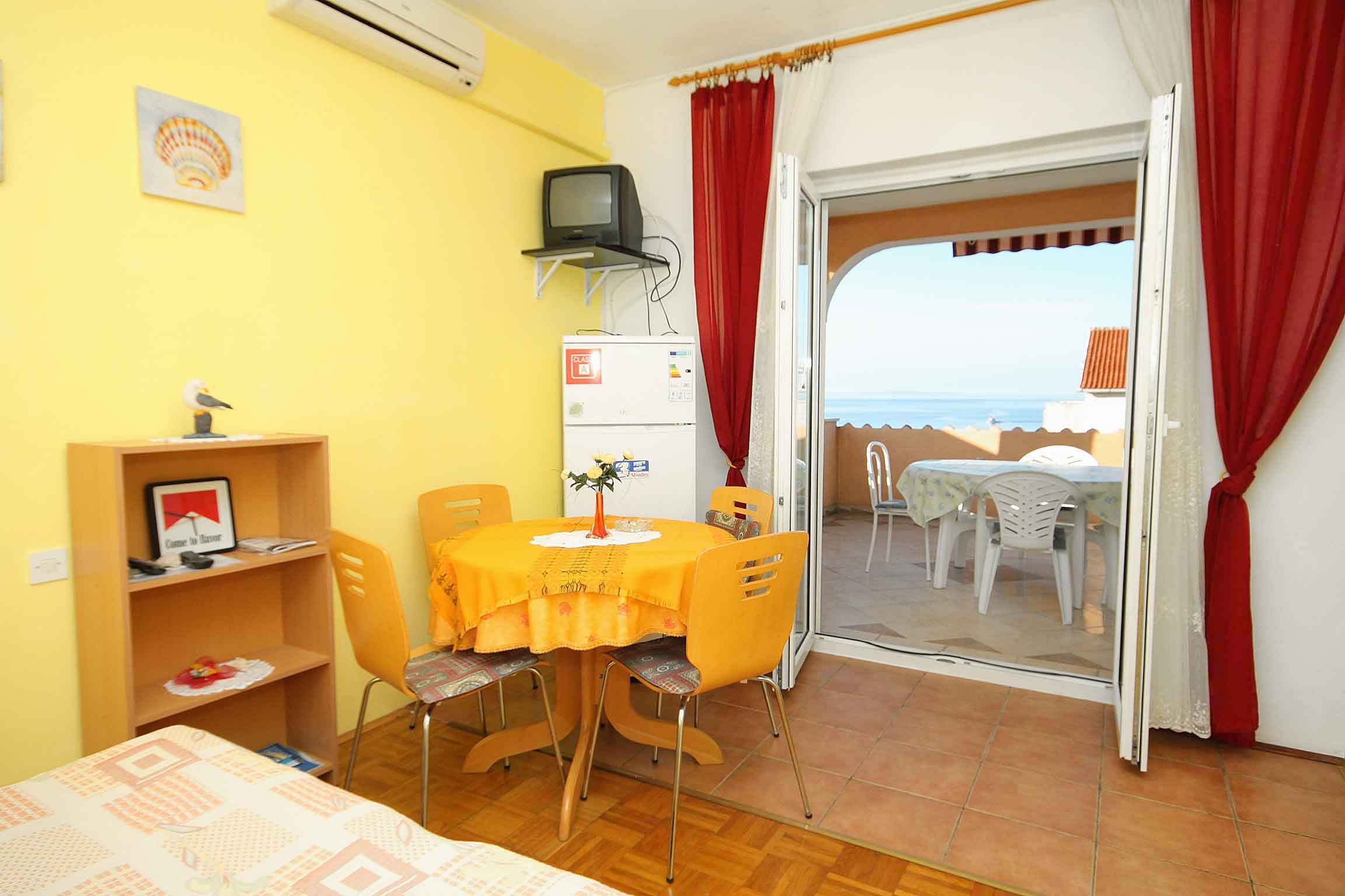 Apartment can accommodate 4 guests. Beds are situated in 1 sleeping rooms, but also in the dining room, within 33m2. Guests can use a private terrace to enjoy the warm summer evenings. The apartment offers the sea view. Food can be prepared using barbecue which is shared with other guests too. Shared pool is on disposal during stay. For the booked accommodation unit the deposit is paid directly to the owner upon check-in (deposit amount is displayed on the website) INCLUDED IN THE PRICE: tourist tax, final cleaning, pool, parking, internet, iron, ironing board, hairdryer, portable barbecue. OBLIGATORY ADDITIONAL COSTS: deposit (€200.00 one-time payment). OPTIONAL ADDITIONAL COSTS: breakfast (€10.00, a 50% discount for children aged 4 to 12 years, Children up to age 4 free of charge), air-conditioning (€7.00 per night), laundry (€10.00 washing). The availability of additional services for your chosen dates of stay, as well as their prices (if none are listed) must be checked ahead of time. Any additional services not shown in the price calculation are payable directly to the property owner and only if used by the visitor.