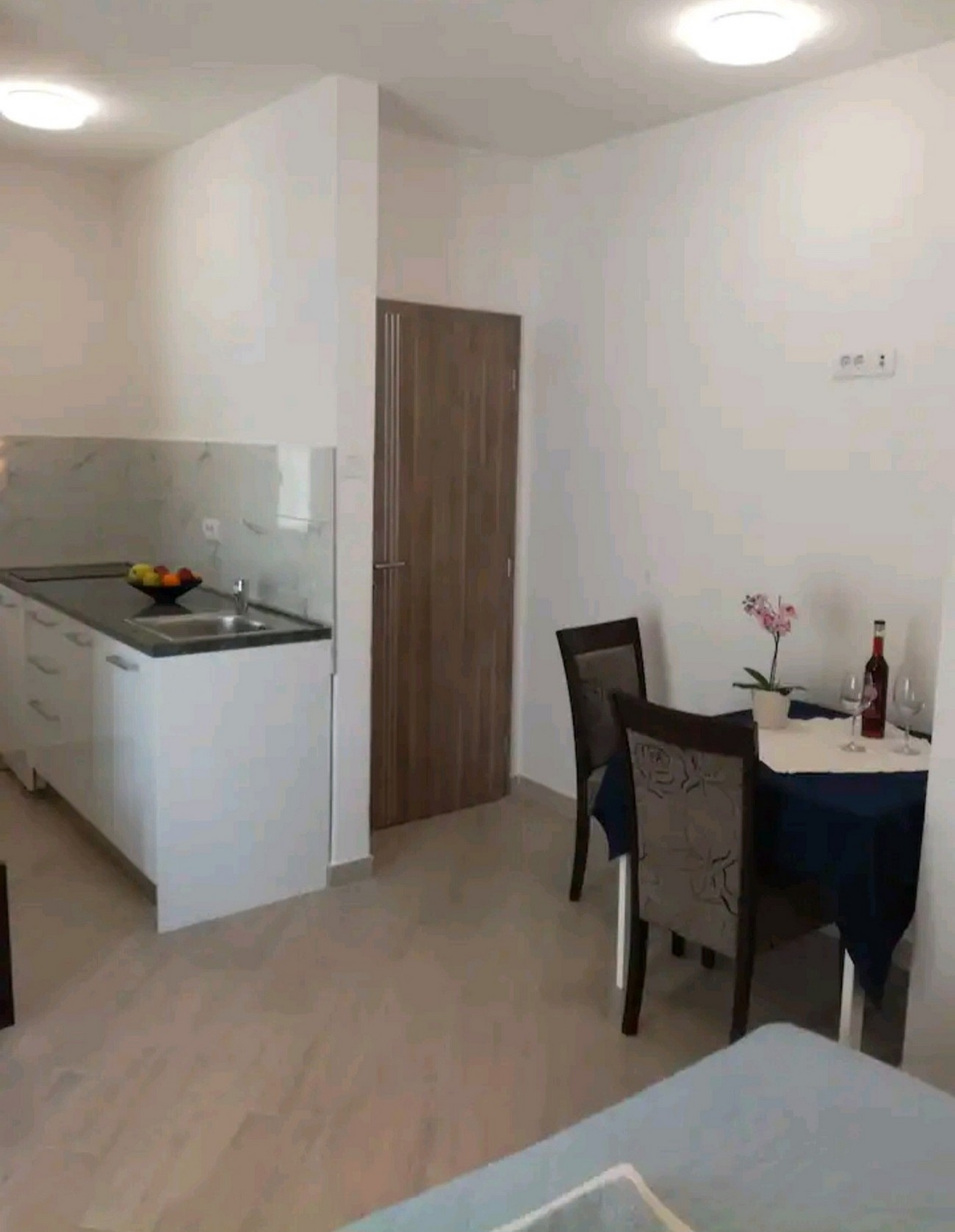 Studio flat can accommodate 2 guests. Beds are situated in 1 sleeping rooms, within 21m2. Food can be prepared using barbecue which is shared with other guests too. This accommodation unit welcomes pets at an additional charge. There is no balcony or terrace in the reserved accommodation unit. INCLUDED IN THE PRICE: tourist tax, final cleaning, air-conditioning, parking, internet, laundry, iron, ironing board, hairdryer, sunshade, sunchairs. OBLIGATORY ADDITIONAL COSTS: short stay fee (surcharge depending on a number of booked nights: 30% - 1, 20% - 2, 10% - 3). OPTIONAL ADDITIONAL COSTS: breakfast (€5.00, a 50% discount for children aged 4 to 12 years, Children up to age 4 free of charge), boat mooring (€5.00 per night), pets (€7.00 per night), bicycle (€5.00 daily (per piece)). The availability of additional services for your chosen dates of stay, as well as their prices (if none are listed) must be checked ahead of time. Any additional services not shown in the price calculation are payable directly to the property owner and only if used by the visitor.