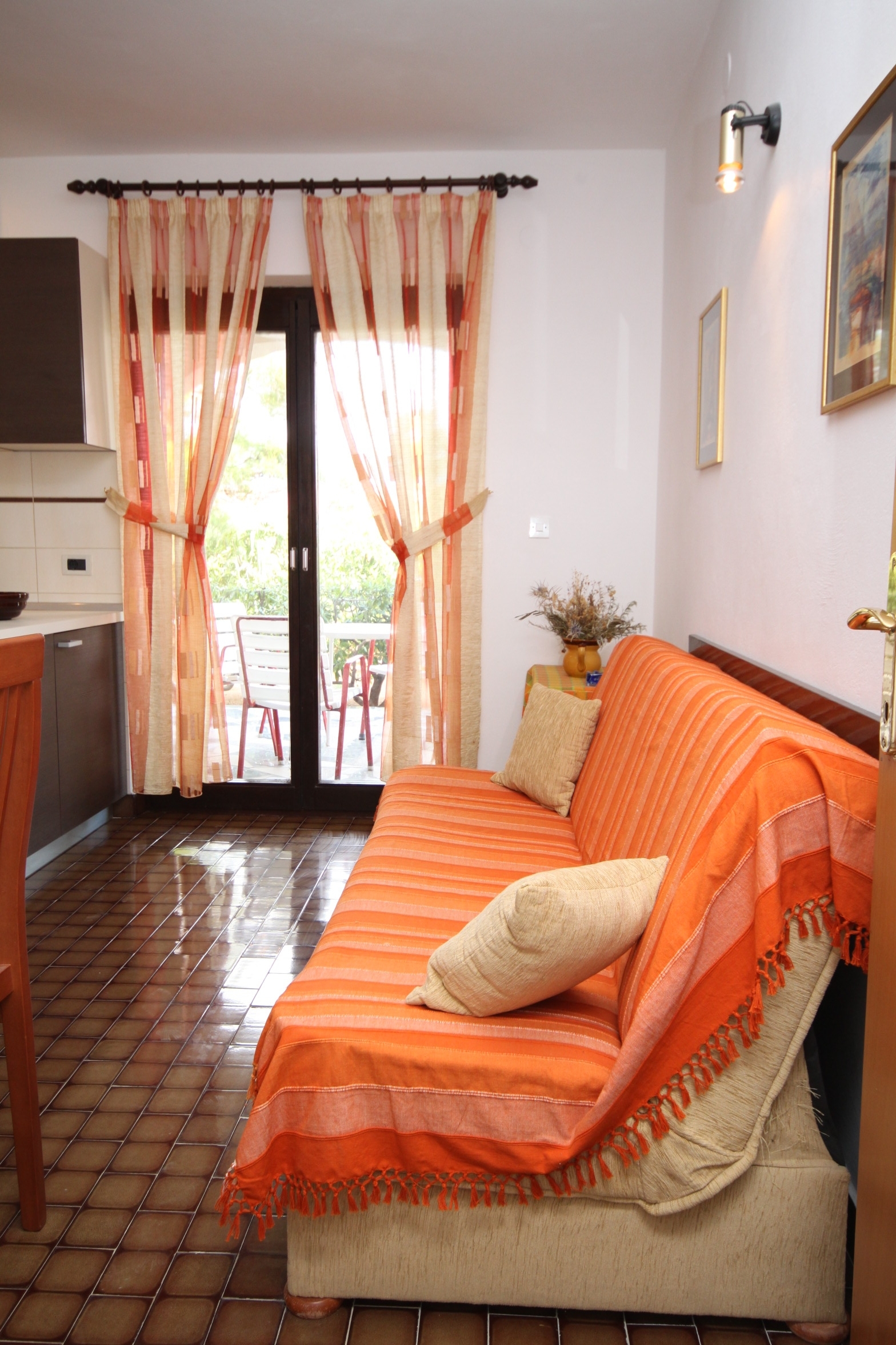Apartment can accommodate 5 guests. Beds are situated in 2 sleeping rooms, but also in the living room, within 45m2. Guests can use a private terrace to enjoy the warm summer evenings. The apartment offers the sea view. Food can be prepared using barbecue which is shared with other guests too. INCLUDED IN THE PRICE: tourist tax, final cleaning, air-conditioning, parking, internet, baby cot, iron, ironing board, hairdryer. OBLIGATORY ADDITIONAL COSTS: short stay fee (surcharge depending on a number of booked nights: 30% - 1, 20% - 2, 10% - 3). OPTIONAL ADDITIONAL COSTS: laundry (€6.00 washing), additional bed (€10.00 per night). The availability of additional services for your chosen dates of stay, as well as their prices (if none are listed) must be checked ahead of time. Any additional services not shown in the price calculation are payable directly to the property owner and only if used by the visitor.
