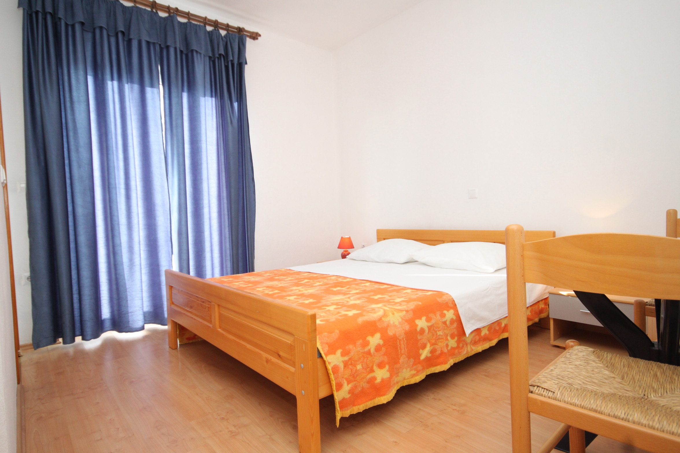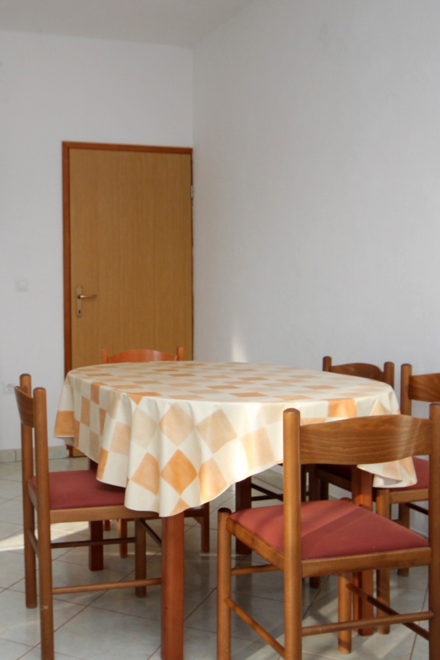 Apartment can accommodate 6 guests. Beds are situated in 2 sleeping rooms, but also in the living room, within 54m2. Guests can use a private terrace to enjoy the warm summer evenings. The apartment offers the sea view. Food can be prepared using barbecue which is shared with other guests too. INCLUDED IN THE PRICE: tourist tax, final cleaning, air-conditioning, parking, internet, iron, ironing board, hairdryer. OBLIGATORY ADDITIONAL COSTS: short stay fee (surcharge depending on a number of booked nights: 30% - 1, 20% - 2, 10% - 3). The availability of additional services for your chosen dates of stay, as well as their prices (if none are listed) must be checked ahead of time. Any additional services not shown in the price calculation are payable directly to the property owner and only if used by the visitor. Discounts to the base price: free day 14=13 (for reservations of 14 or more days you get one free day for the stay until 31122026).