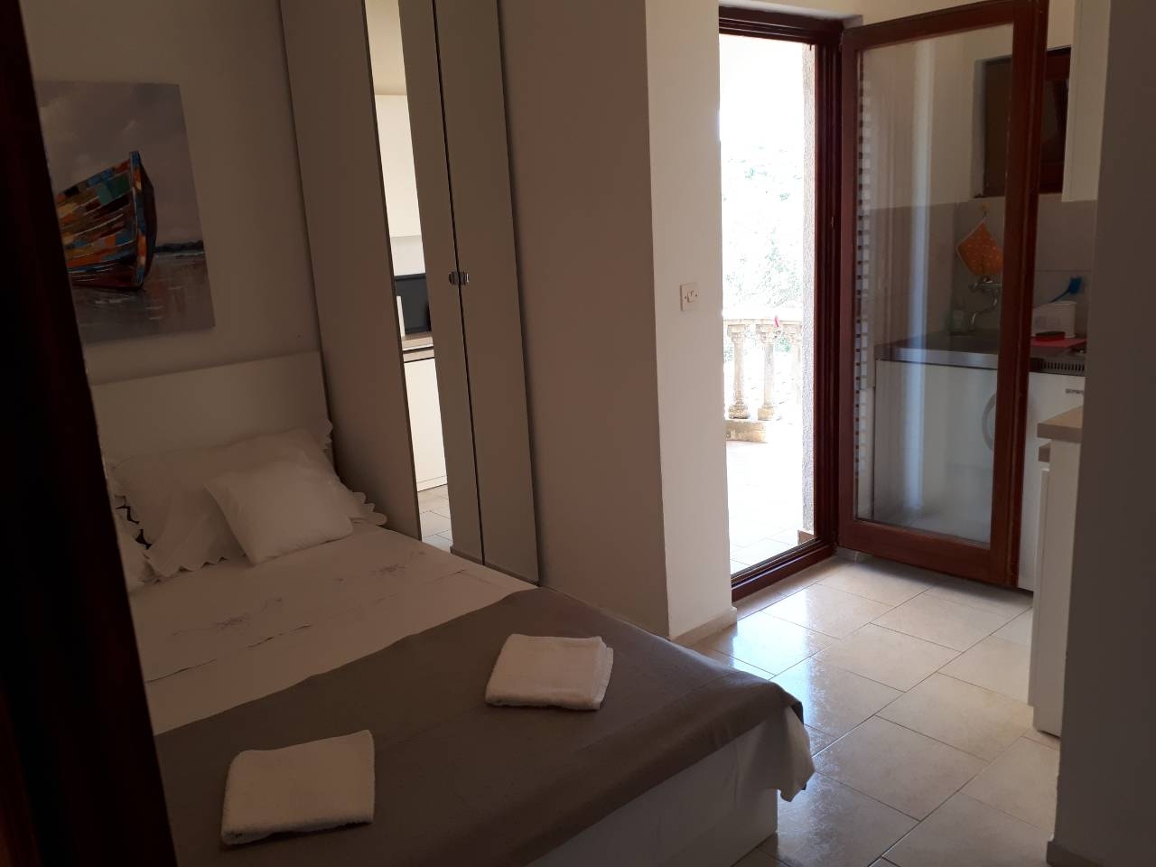 Studio flat can accommodate 2 guests. Beds are situated in 1 sleeping rooms, within 15m2. Guests can use a private balcony to enjoy the warm summer evenings. Food can be prepared using barbecue which is shared with other guests too. INCLUDED IN THE PRICE: tourist tax, final cleaning, air-conditioning, parking, internet, boat mooring, baby cot, iron, ironing board, hairdryer. The availability of additional services for your chosen dates of stay, as well as their prices (if none are listed) must be checked ahead of time. Any additional services not shown in the price calculation are payable directly to the property owner and only if used by the visitor.