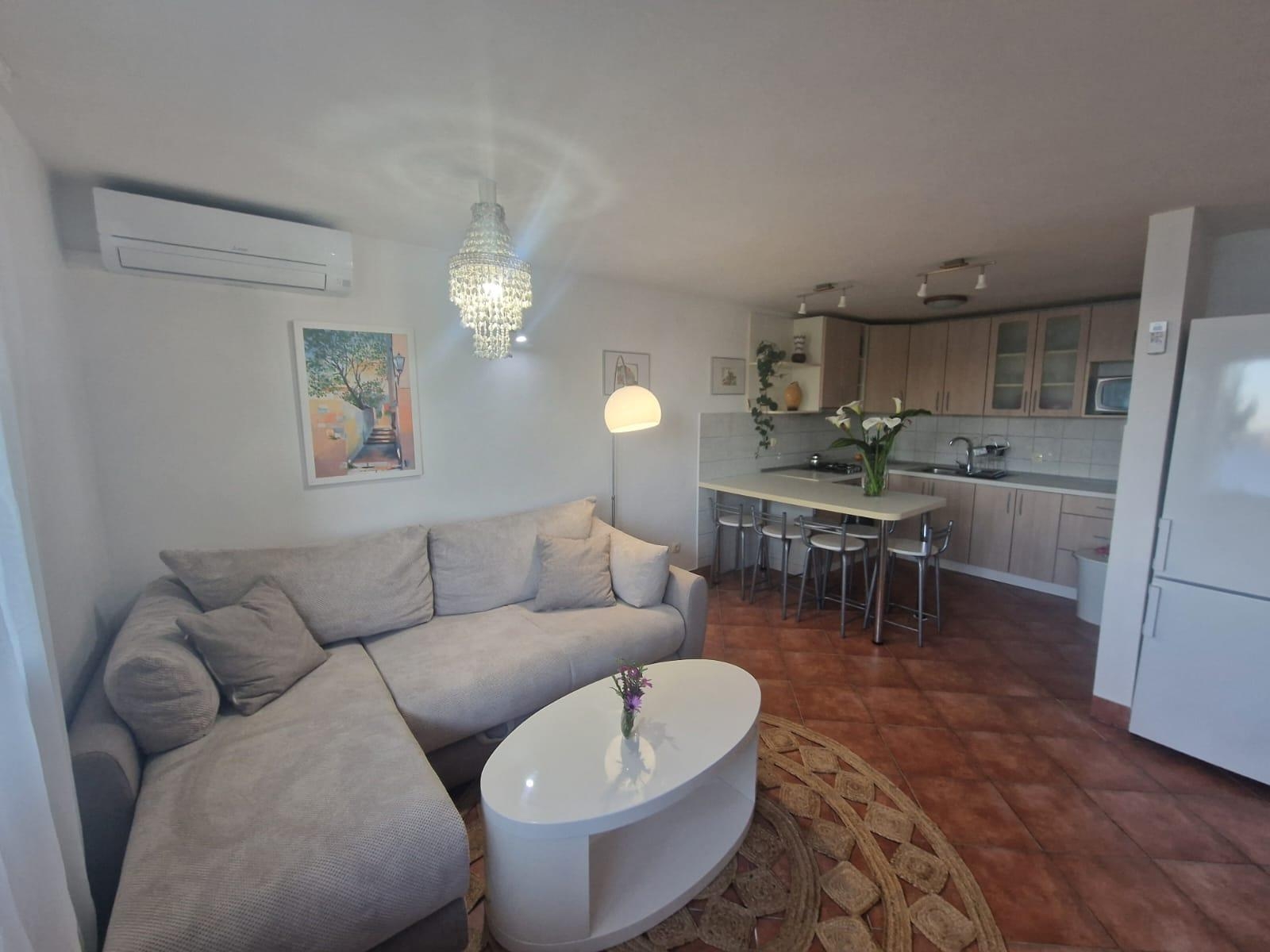 Apartment can accommodate 4 guests. Beds are situated in 3 sleeping rooms, within 75m2. Guests can use a private terrace to enjoy the warm summer evenings. The apartment offers the sea view. Food can be prepared using barbecue which is shared with other guests too. This accommodation unit welcomes pets at an additional charge. INCLUDED IN THE PRICE: tourist tax, final cleaning, air-conditioning, parking, internet, boat mooring, iron, ironing board, hairdryer, sunshade, sunchairs. OBLIGATORY ADDITIONAL COSTS: short stay fee (surcharge depending on a number of booked nights: 30% - 1, 20% - 2, 10% - 3). OPTIONAL ADDITIONAL COSTS: laundry (€5.00 washing), pets (€3.00 per night), 2 beds for children (€10.00 personnight). The availability of additional services for your chosen dates of stay, as well as their prices (if none are listed) must be checked ahead of time. Any additional services not shown in the price calculation are payable directly to the property owner and only if used by the visitor. Discounts to the base price: free day 14=13 (for reservations of 14 or more days you get one free day for the stay until 31122026).