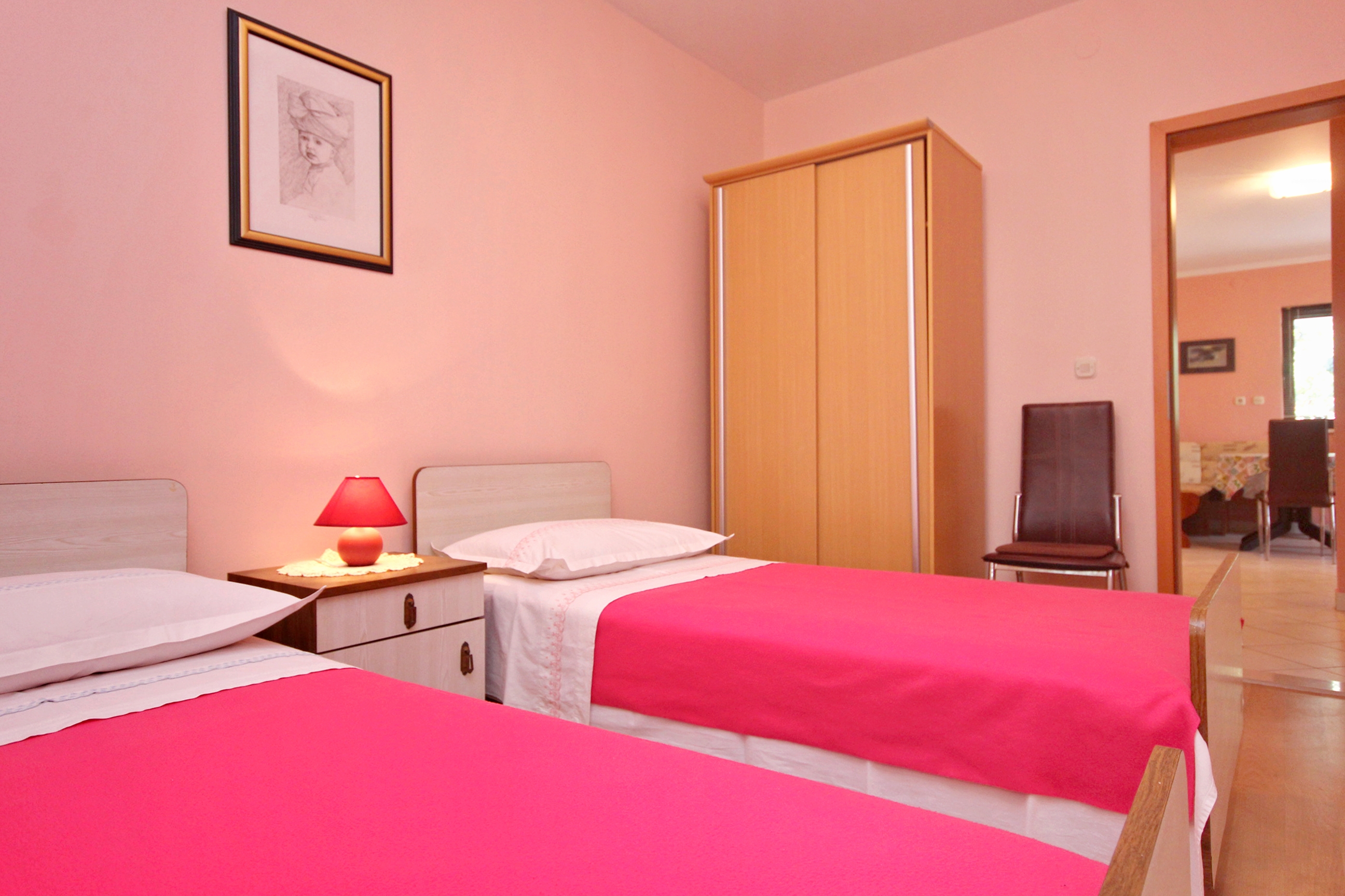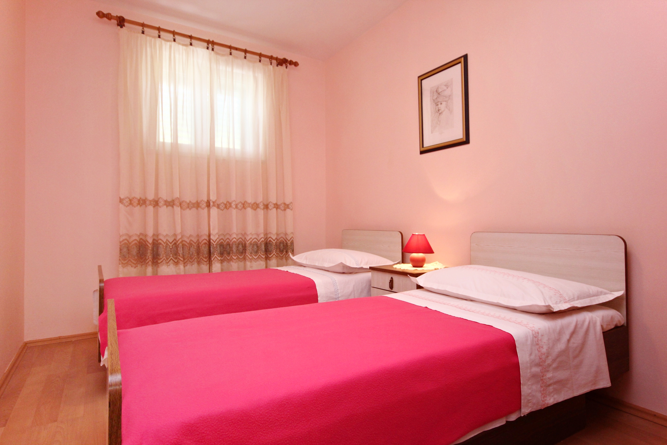 Apartment can accommodate 4 guests. Beds are situated in 2 sleeping rooms, within 45m2. Guests can use a private terrace to enjoy the warm summer evenings. For full enjoyment and relaxation there is a private barbecue for this accommodation guests only. INCLUDED IN THE PRICE: tourist tax, final cleaning, air-conditioning, parking, internet, iron, ironing board. OBLIGATORY ADDITIONAL COSTS: short stay fee (surcharge depending on a number of booked nights: 30% - 1, 20% - 2, 10% - 3). The availability of additional services for your chosen dates of stay, as well as their prices (if none are listed) must be checked ahead of time. Any additional services not shown in the price calculation are payable directly to the property owner and only if used by the visitor.