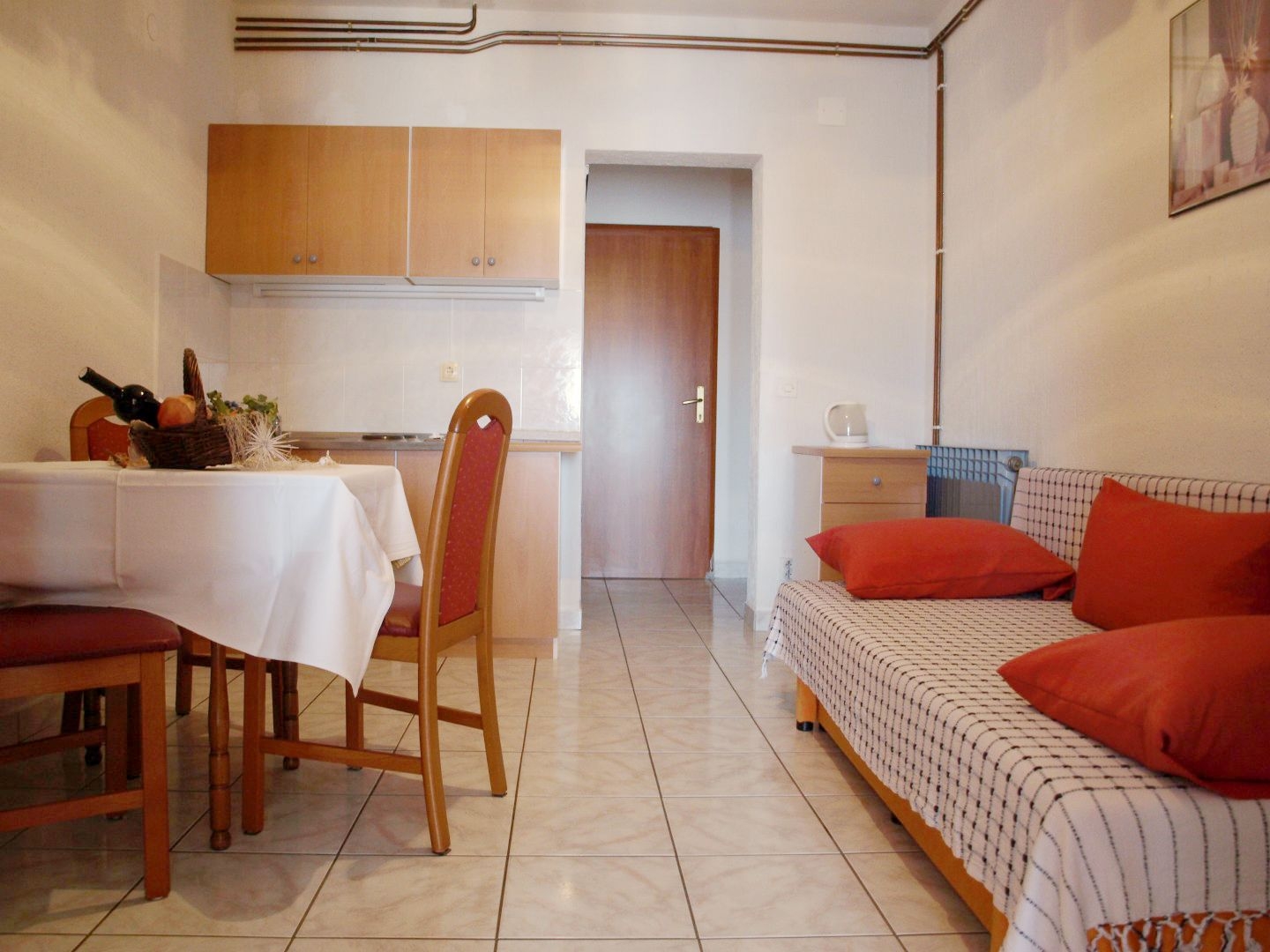 Apartment can accommodate 4 guests. Beds are situated in 1 sleeping rooms, but also in the dining room, within 31m2. Guests can use a private terrace to enjoy the warm summer evenings. The apartment offers the sea view. Food can be prepared using barbecue which is shared with other guests too. INCLUDED IN THE PRICE: tourist tax, final cleaning, air-conditioning, parking, internet, baby cot, iron, ironing board, hairdryer. OBLIGATORY ADDITIONAL COSTS: short stay fee (surcharge depending on a number of booked nights: 30% - 1, 20% - 2, 10% - 3). The availability of additional services for your chosen dates of stay, as well as their prices (if none are listed) must be checked ahead of time. Any additional services not shown in the price calculation are payable directly to the property owner and only if used by the visitor.