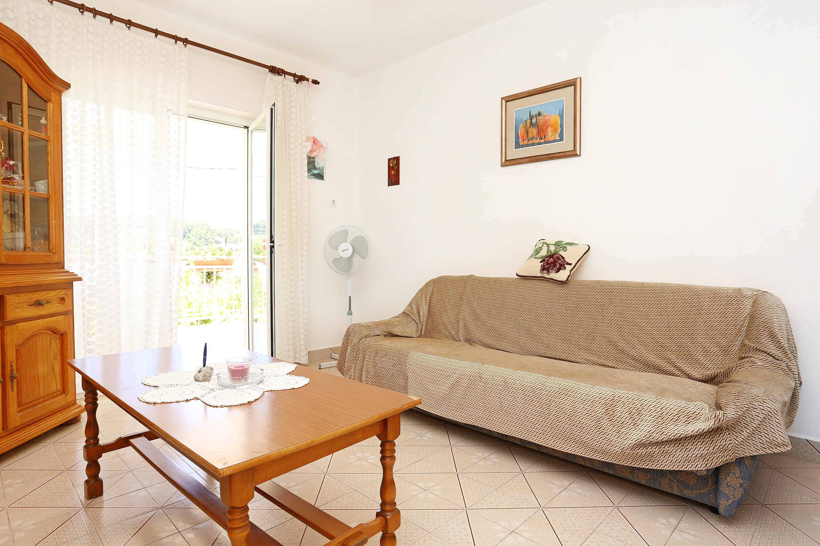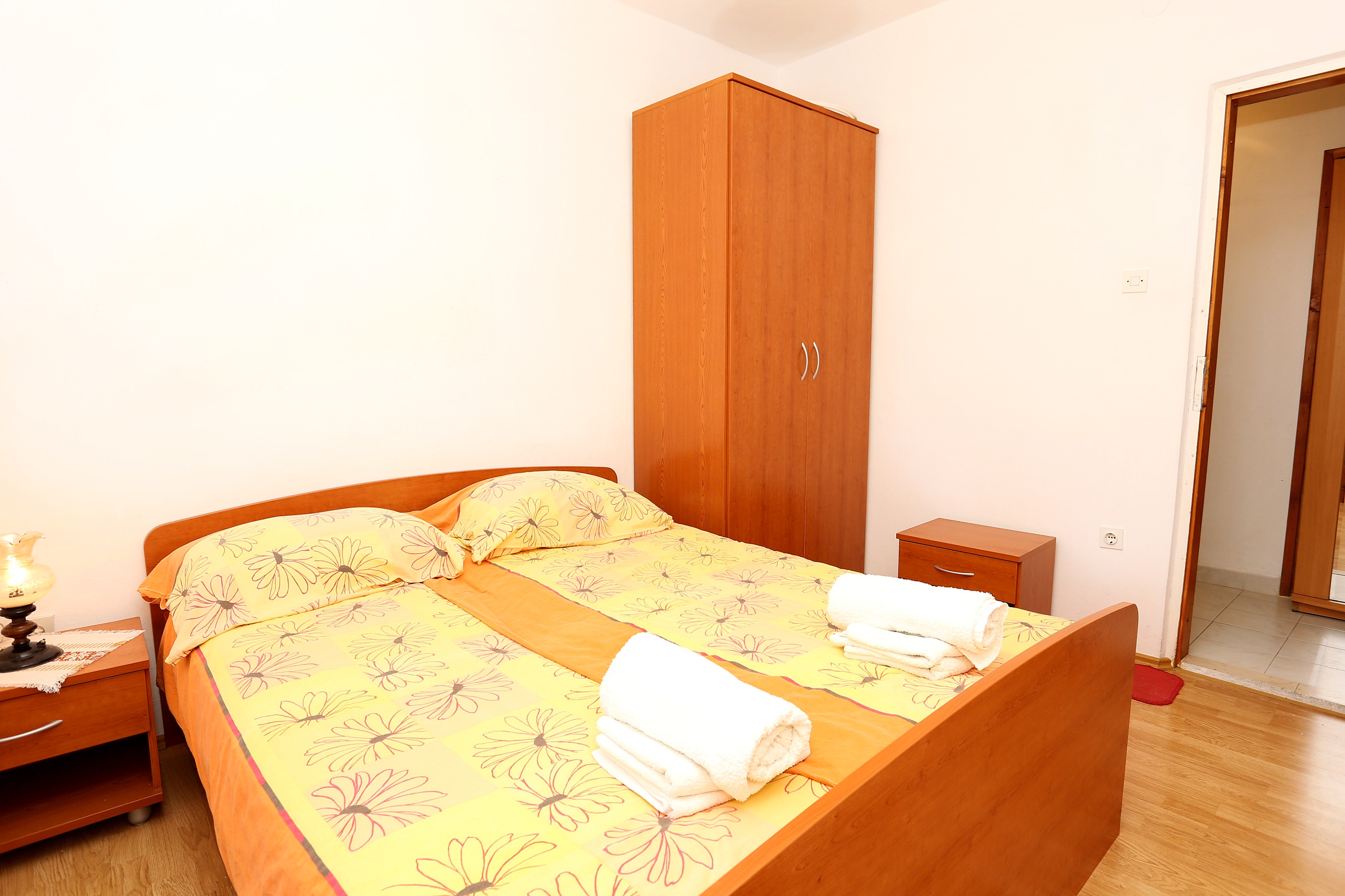 Apartment can accommodate 6 guests. Beds are situated in 2 sleeping rooms, but also in the living room, within 57m2. Guests can use a private terrace to enjoy the warm summer evenings. The apartment offers the sea view. Food can be prepared using barbecue which is shared with other guests too. INCLUDED IN THE PRICE: tourist tax, final cleaning, parking, internet, iron, hairdryer. OBLIGATORY ADDITIONAL COSTS: short stay fee (surcharge depending on a number of booked nights: 30% - 1, 20% - 2, 10% - 3). OPTIONAL ADDITIONAL COSTS: air-conditioning (€5.00 per night), laundry (€4.00 washing), additional bed (€12.00 per night). The availability of additional services for your chosen dates of stay, as well as their prices (if none are listed) must be checked ahead of time. Any additional services not shown in the price calculation are payable directly to the property owner and only if used by the visitor.
