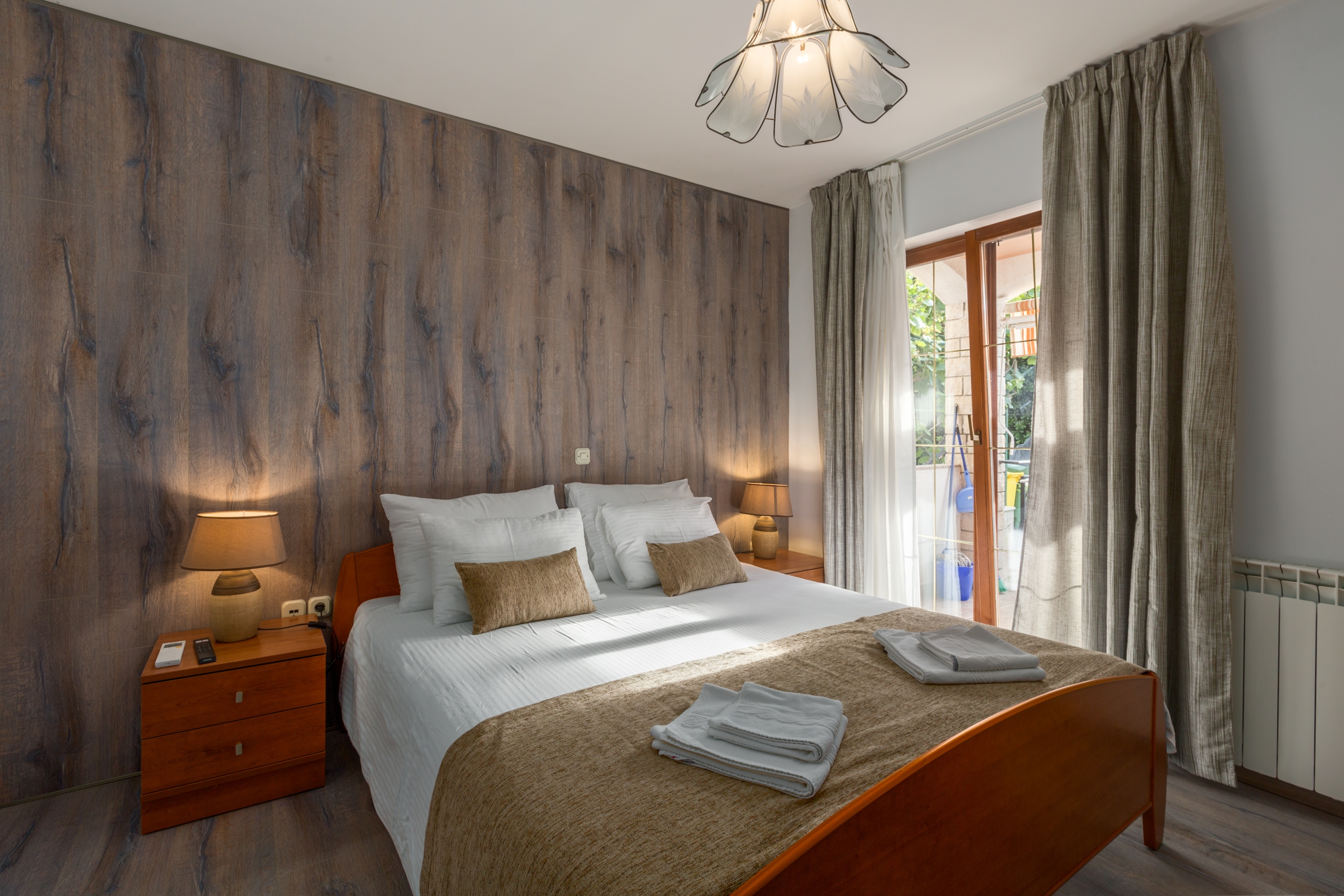Apartment can accommodate 6 guests. Beds are situated in 2 sleeping rooms, but also in the living room, within 55m2. Guests can use a private terrace to enjoy the warm summer evenings. INCLUDED IN THE PRICE: tourist tax, final cleaning, air-conditioning, internet. OBLIGATORY ADDITIONAL COSTS: short stay fee (surcharge depending on a number of booked nights: 30% - 1, 20% - 2, 10% - 3). The availability of additional services for your chosen dates of stay, as well as their prices (if none are listed) must be checked ahead of time. Any additional services not shown in the price calculation are payable directly to the property owner and only if used by the visitor. Discounts to the base price: free day 21=19 (for reservations of 21 or more days you get 2 free days for the stay until 31122026).