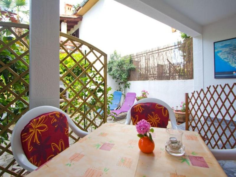 The apartment comes with 1 bedroom, 1 bathroom, bed linen, towels, a flat-screen TV with satellite channels, a dining area, a fully equipped kitchen, and a terrace with garden views. The property has an outdoor dining area.